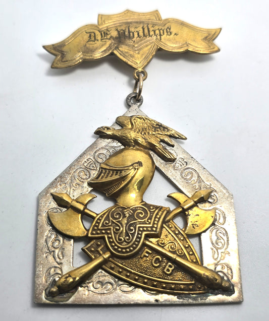 Knights Of Pythias F.C.B. Silver Pin Medal D E Phillips Davies SC 1912