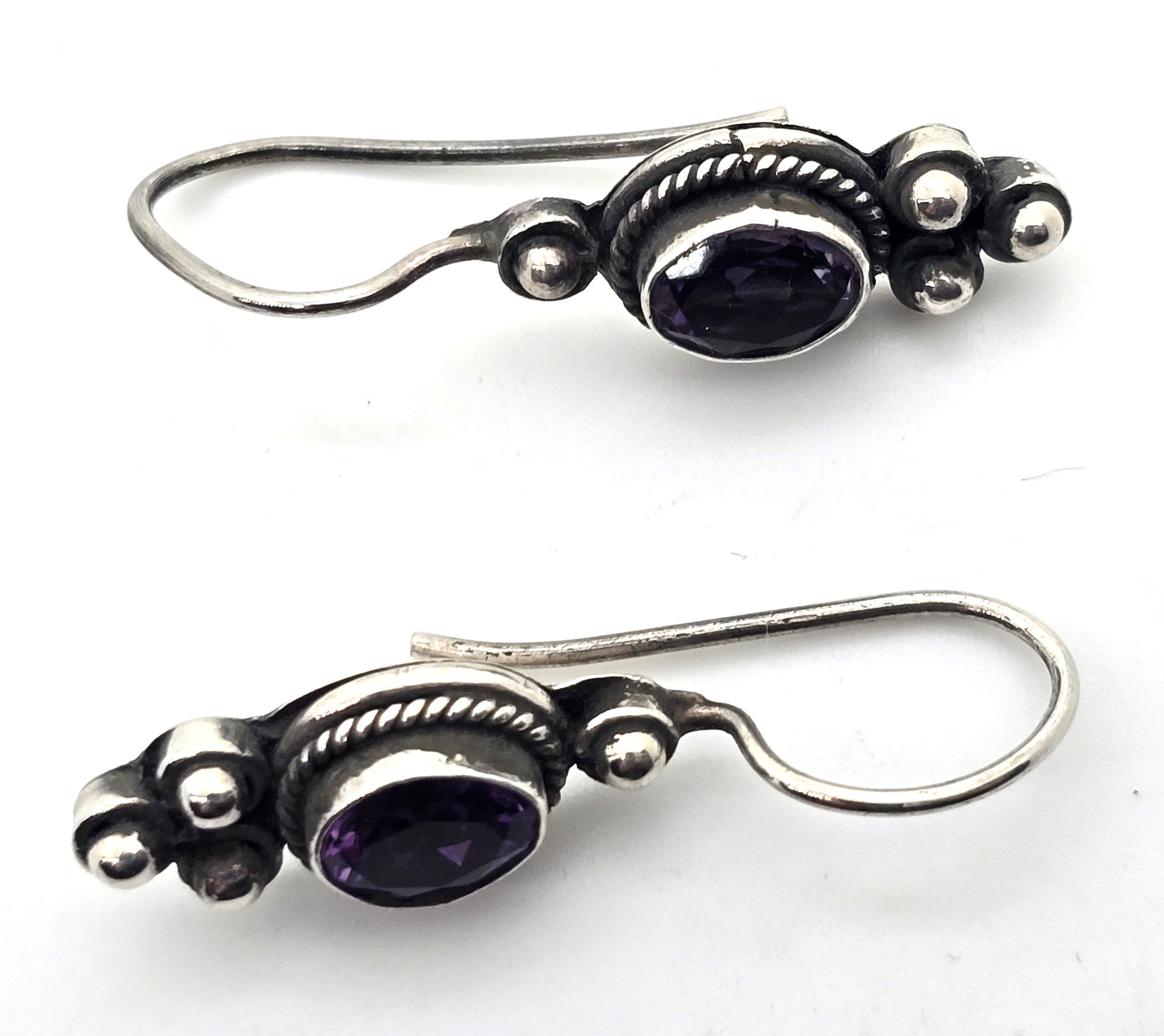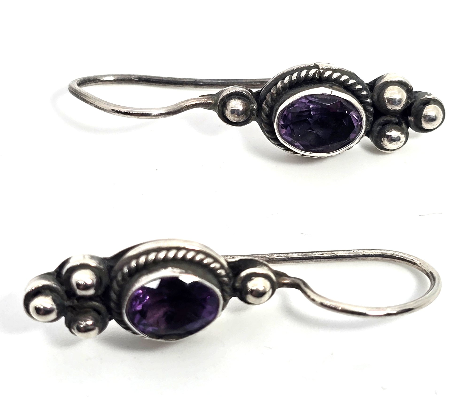 Amethyst purple gemstone tribal Bali vintage sterling silver drop earrings . Good vintage condition with little to no signs of normal wear. Good used condition with little to no signs of normal wear. Stamp 925 on the back of the earrings.