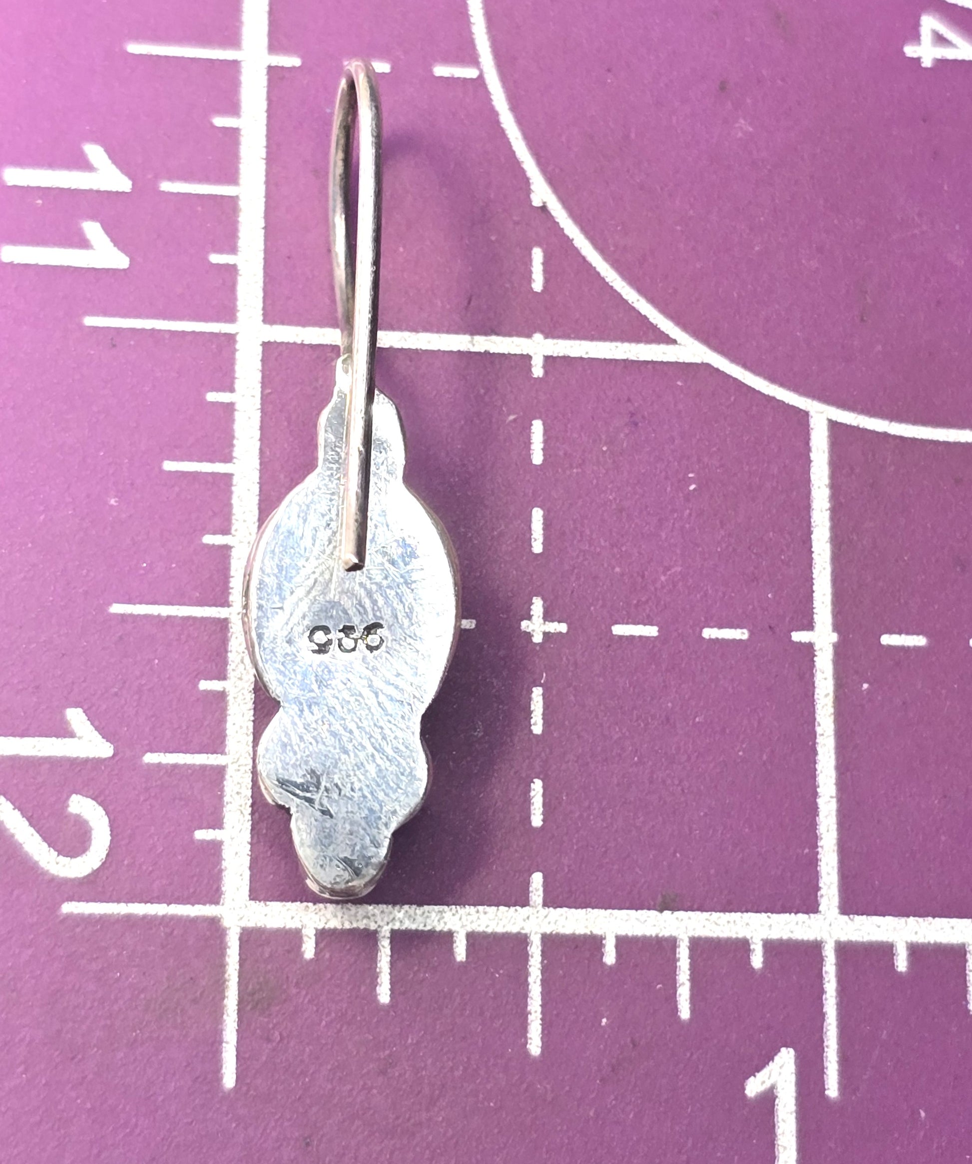 Earrings measure 1 and 1/2 inches tall and 3/8ths of an inch wide.