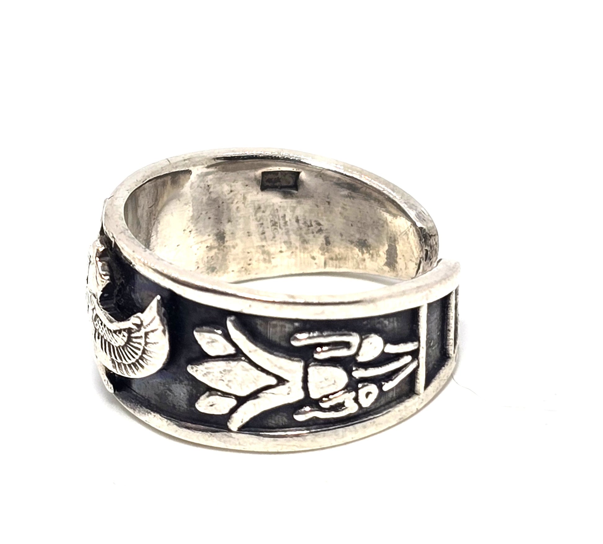Isis Egyptian Revival vintage solid sterling silver open back ring size 10