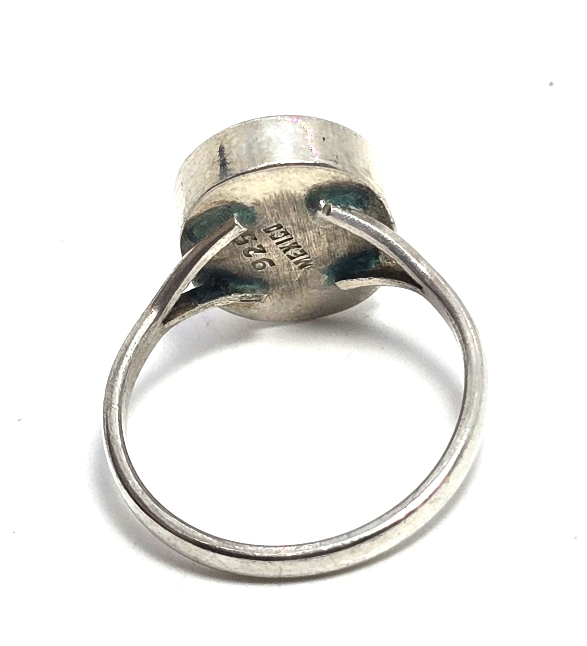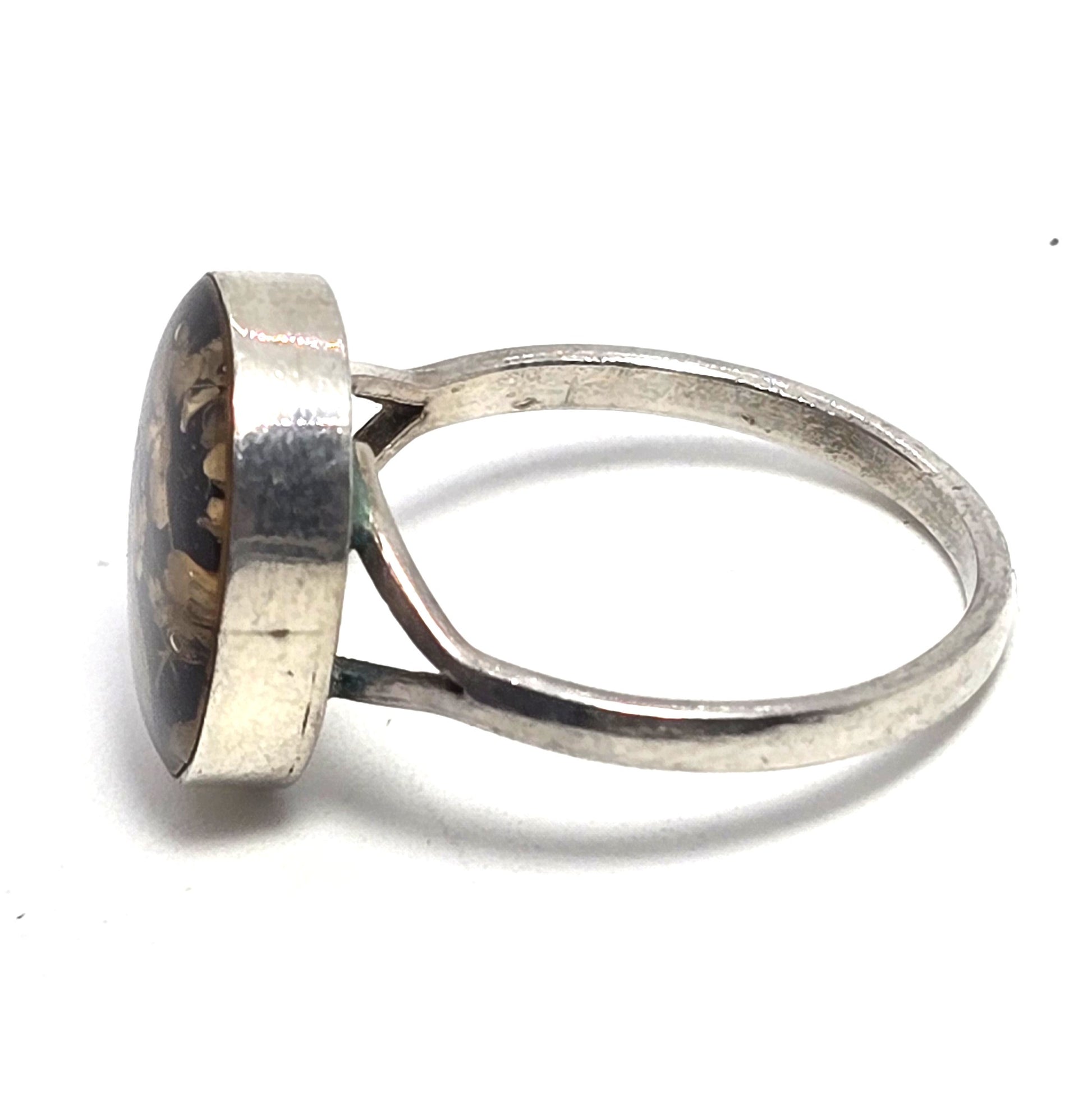 Dried flowers acrylic signed sterling silver Mexico vintage ring size 7.5