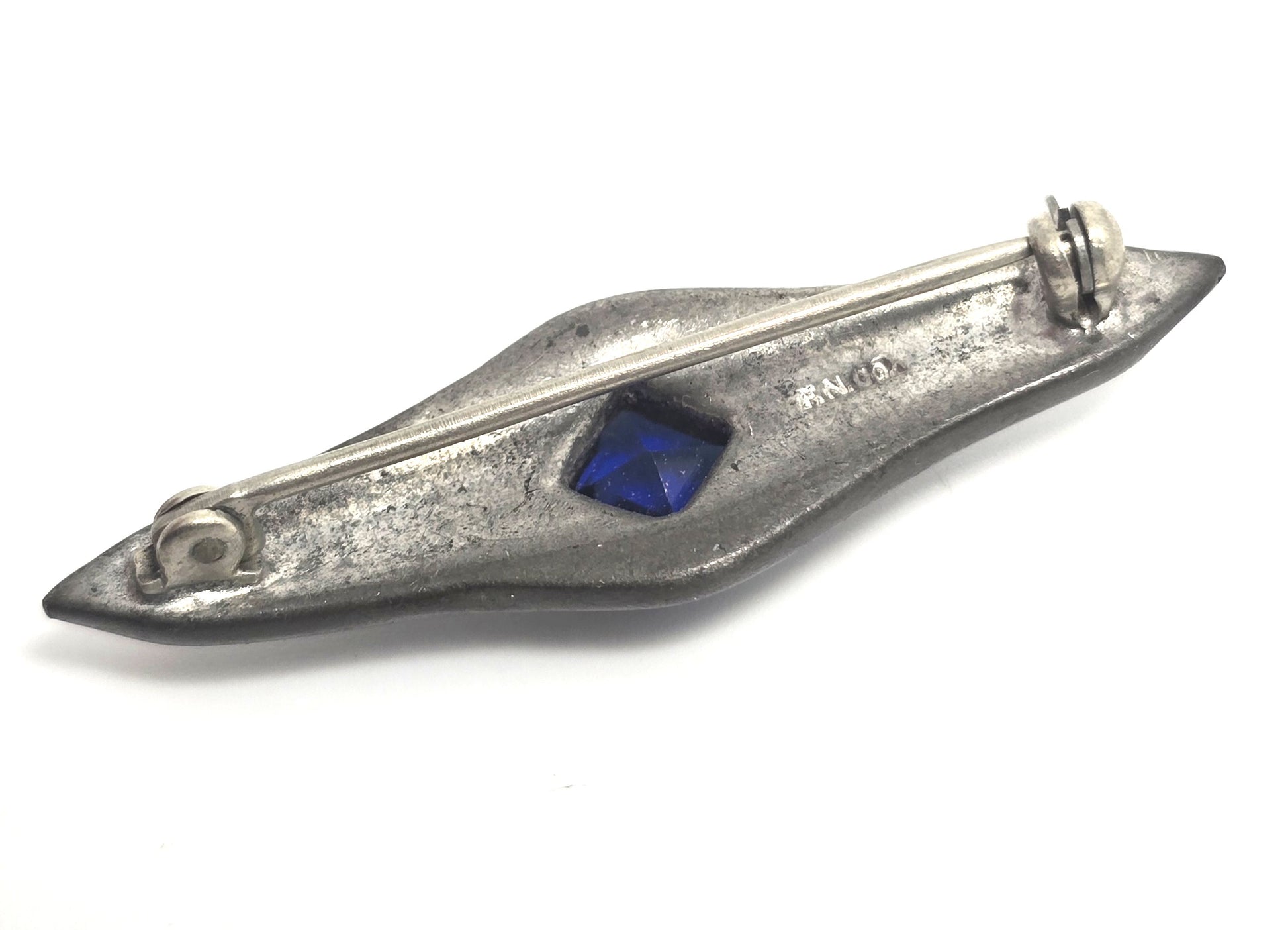 FISHEL, NESSLER & CO FNCO Antique Art Deco blue paste antique bar pin brooch. Good used condition with little to no signs of normal wear. Great antique patina. No missing stones. Stamped FN Co on the back of the brooch. Made out of pot metal.