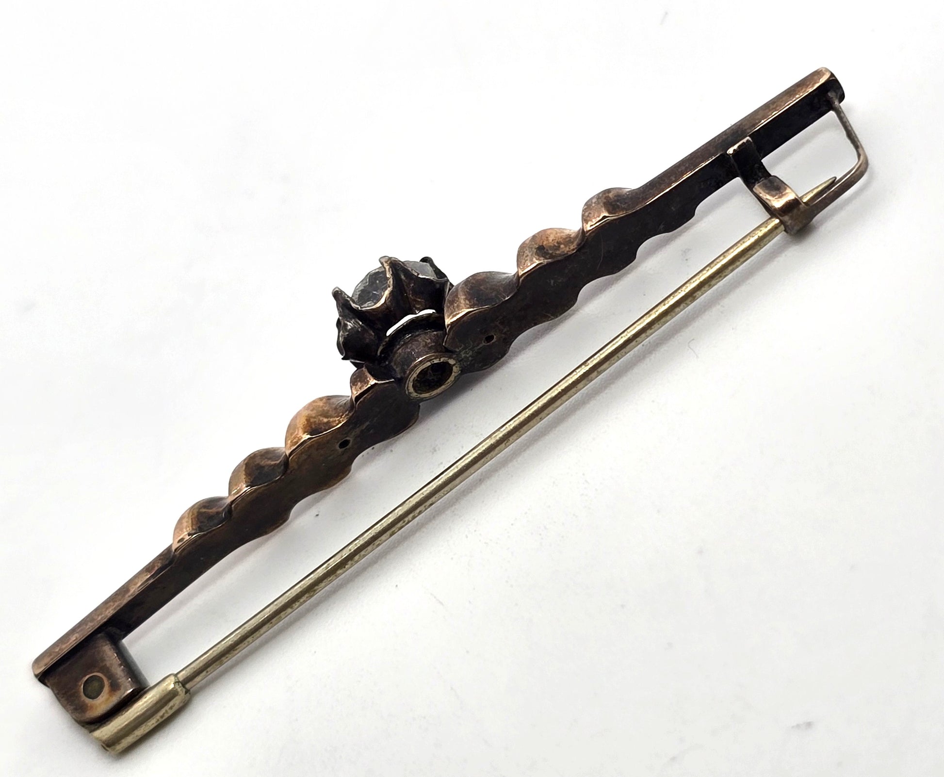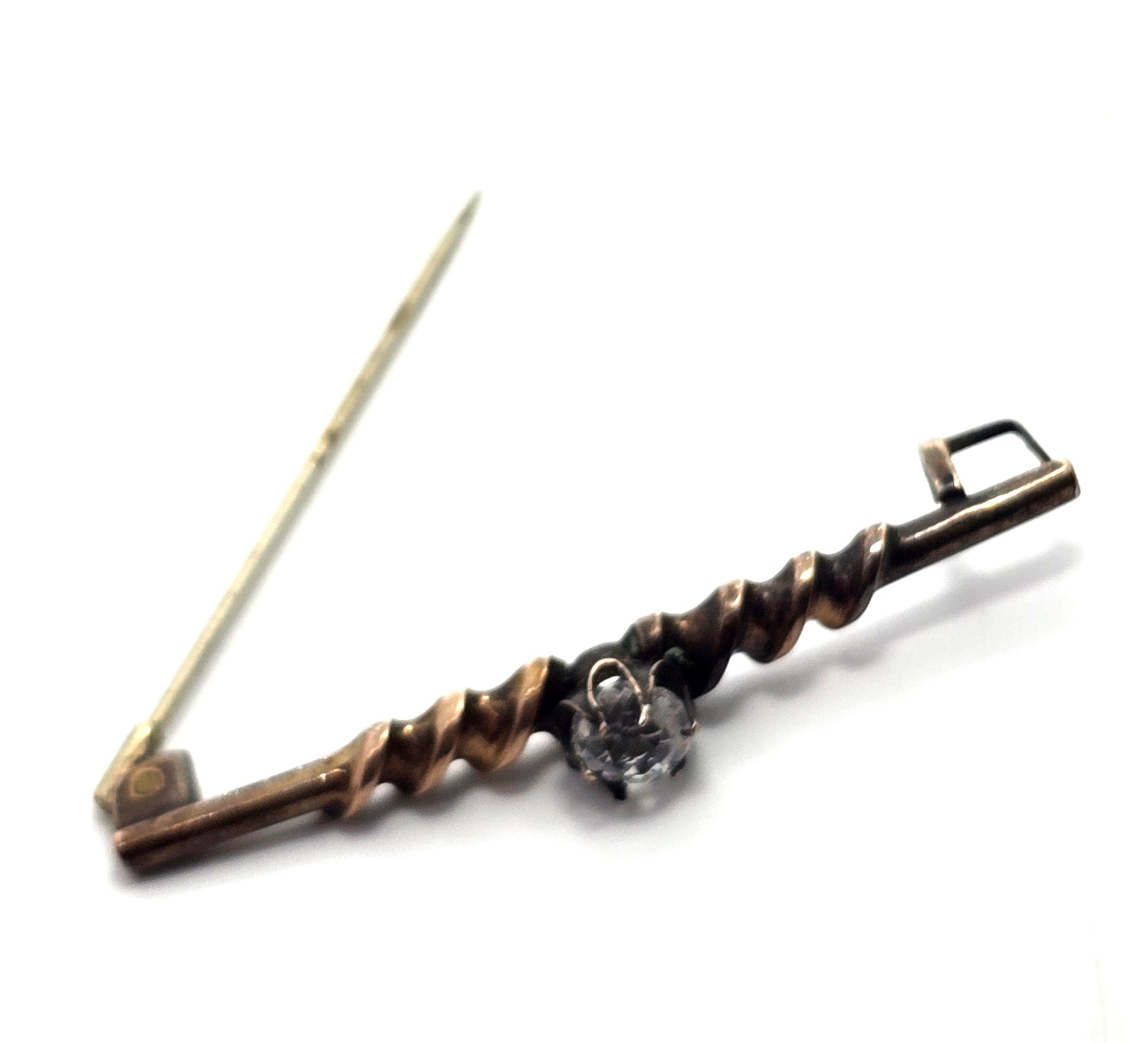 Antique Etruscan yellow rolled gold twisted paste glass Brooch bar pin 1800's