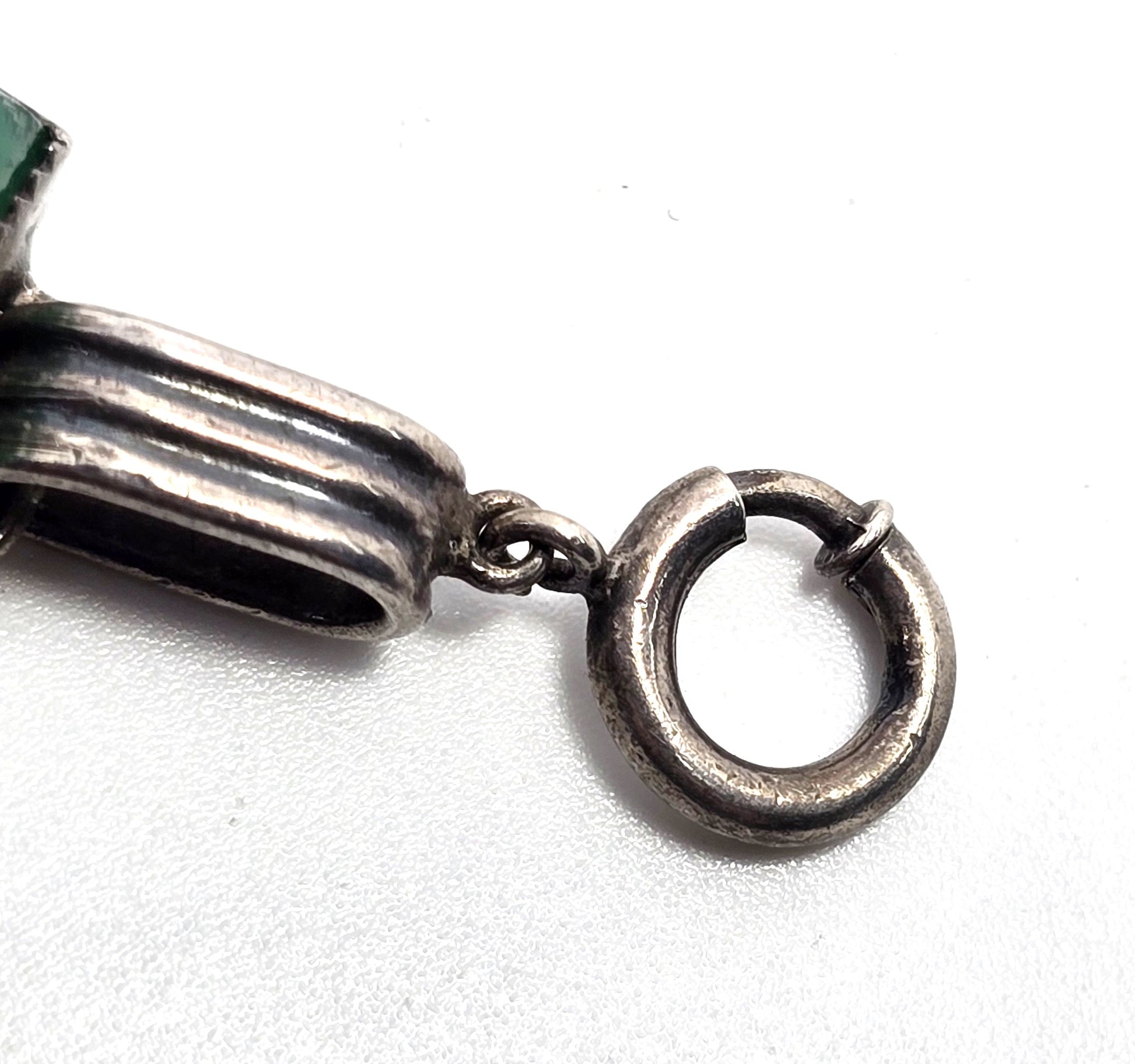 Antique Green onyx Art Deco embossed link sterling silver 6.5 inch bracelet