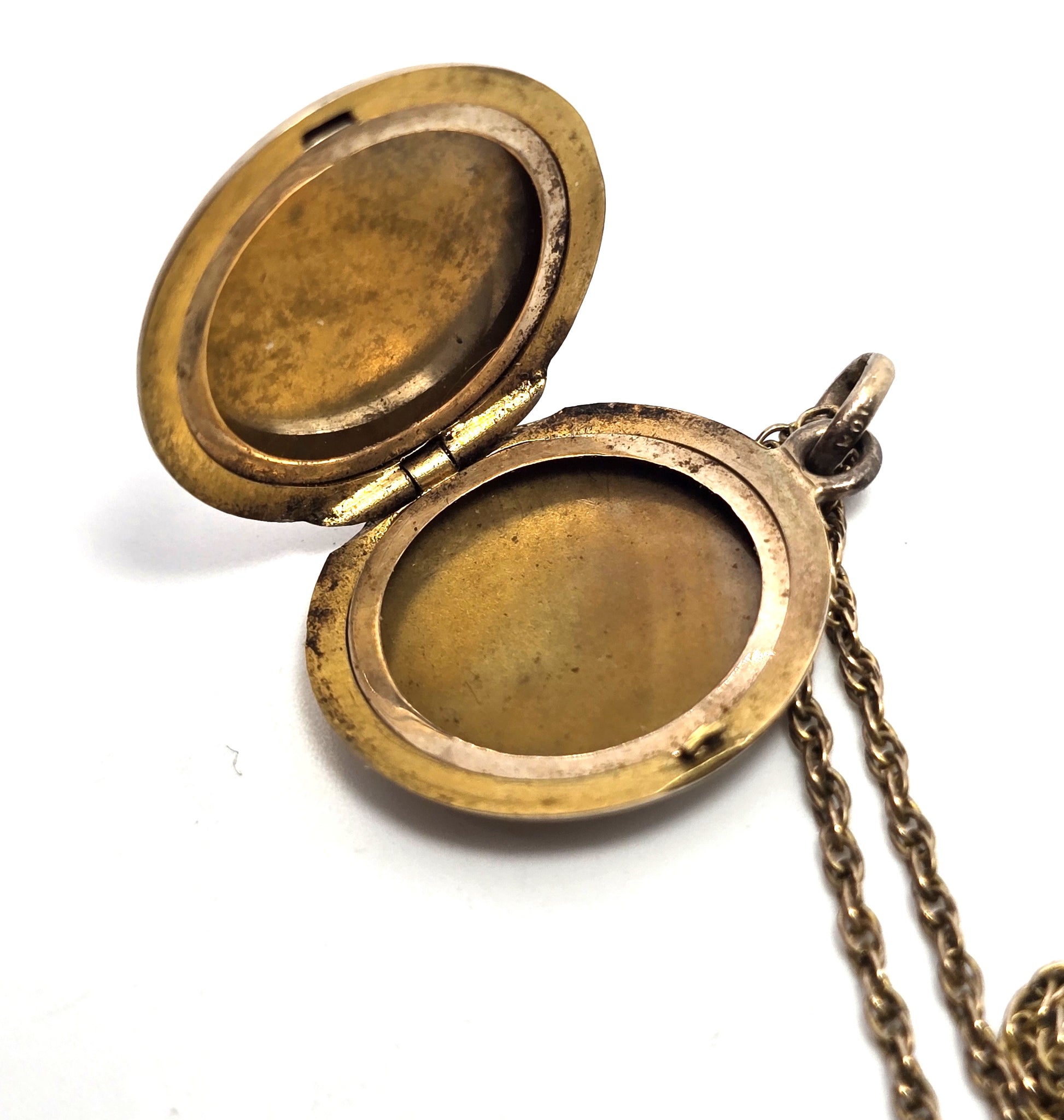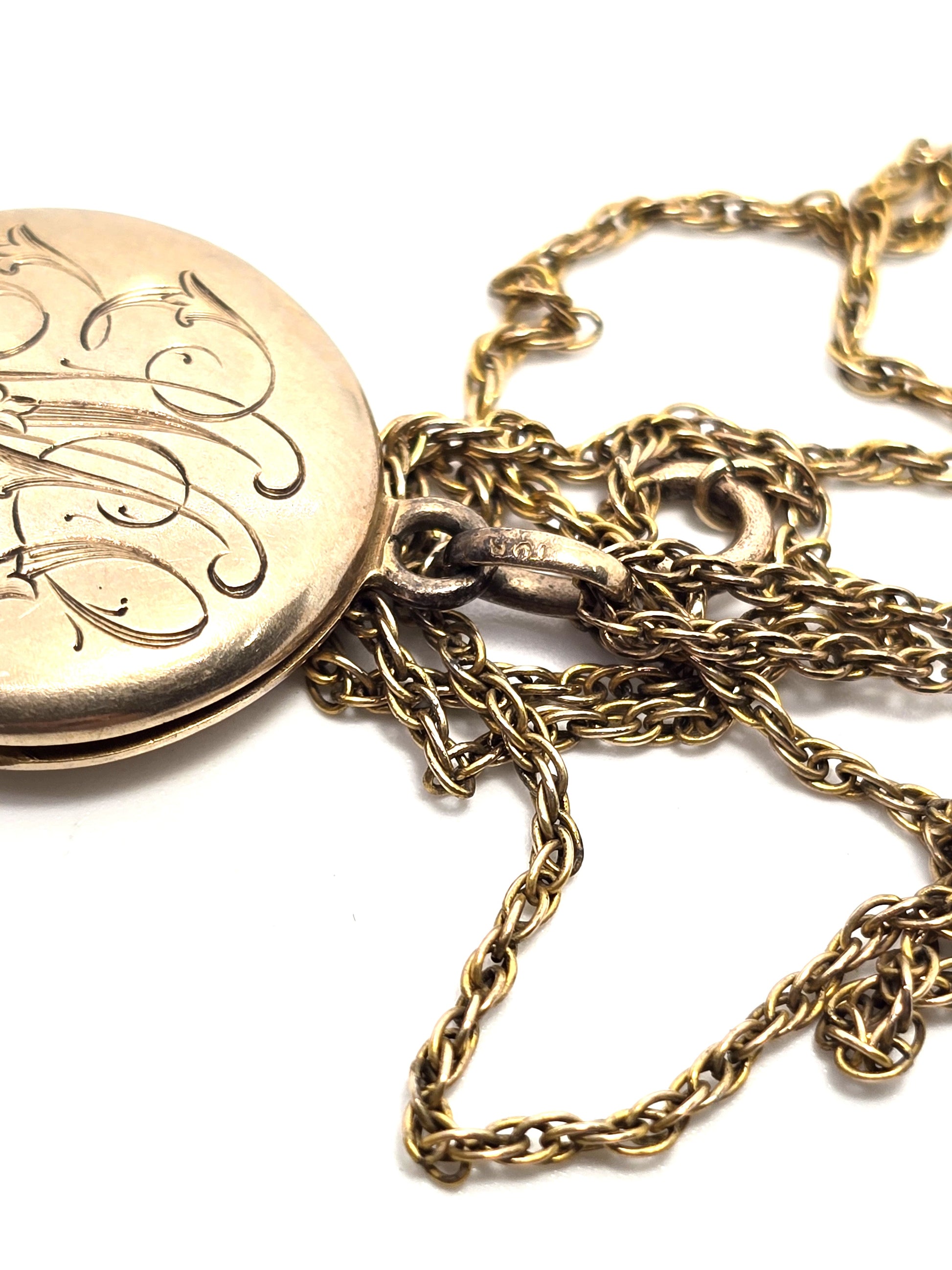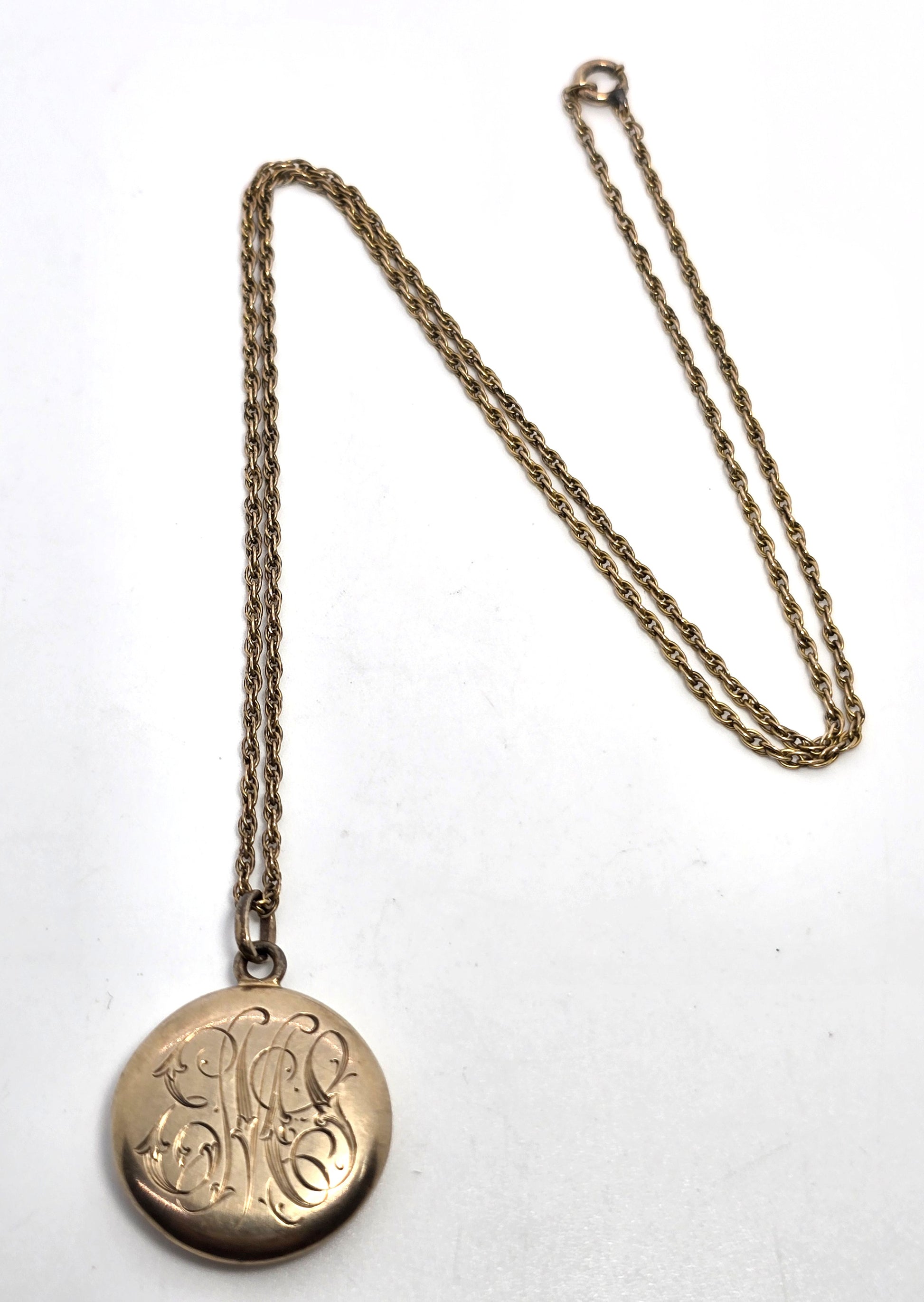 Antique 10k Yellow Gold Victorian EMS monogram etched locket necklace