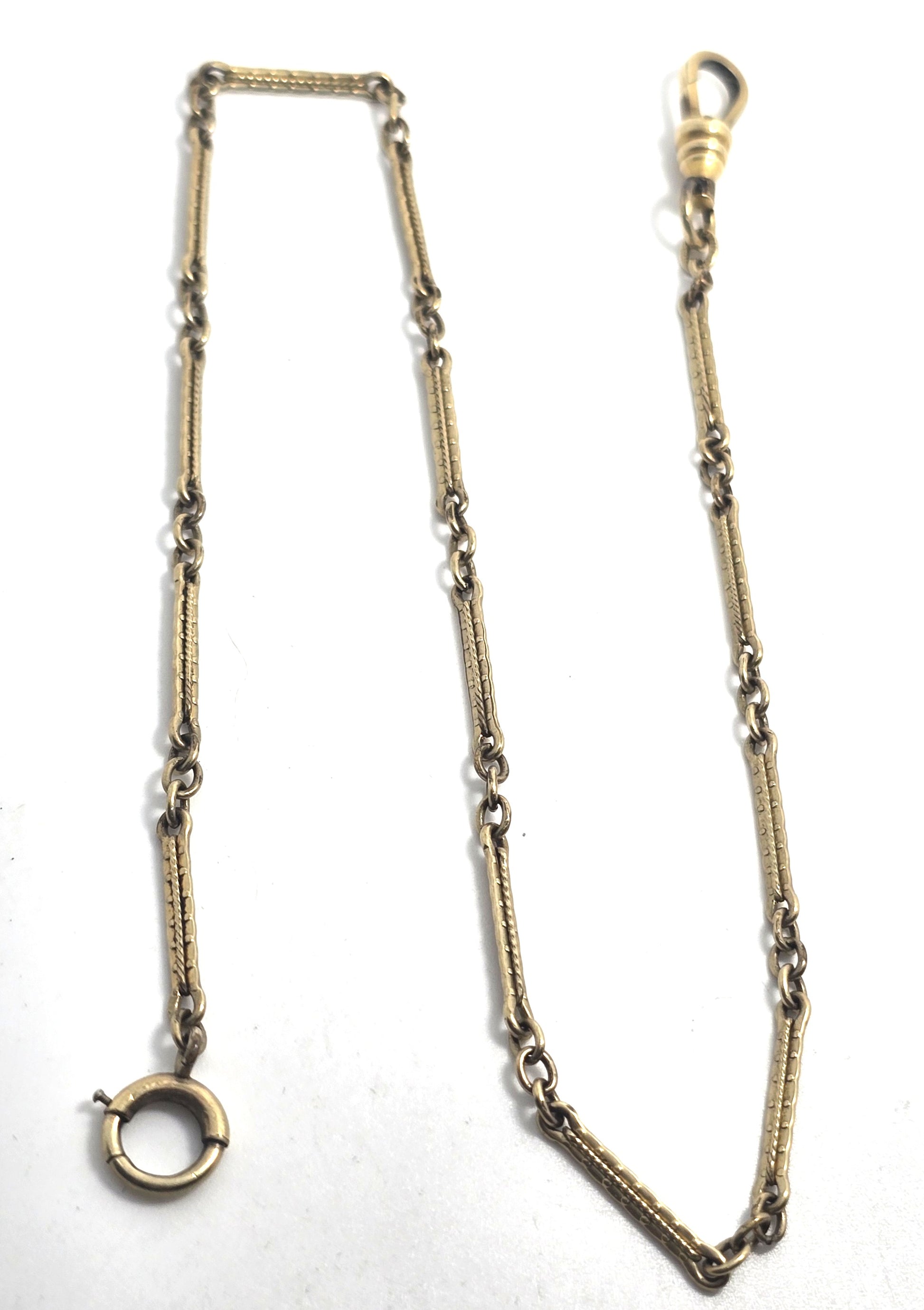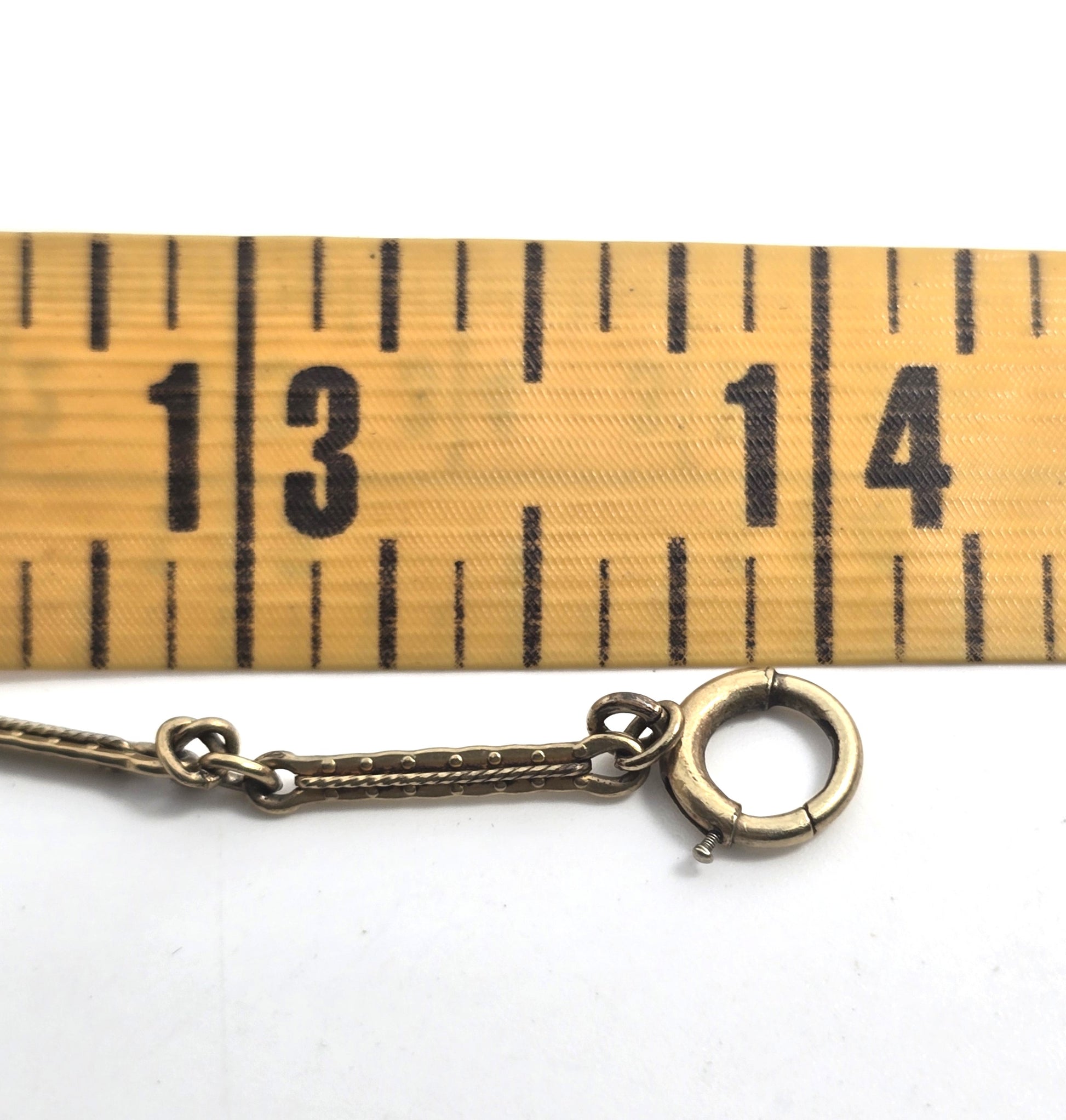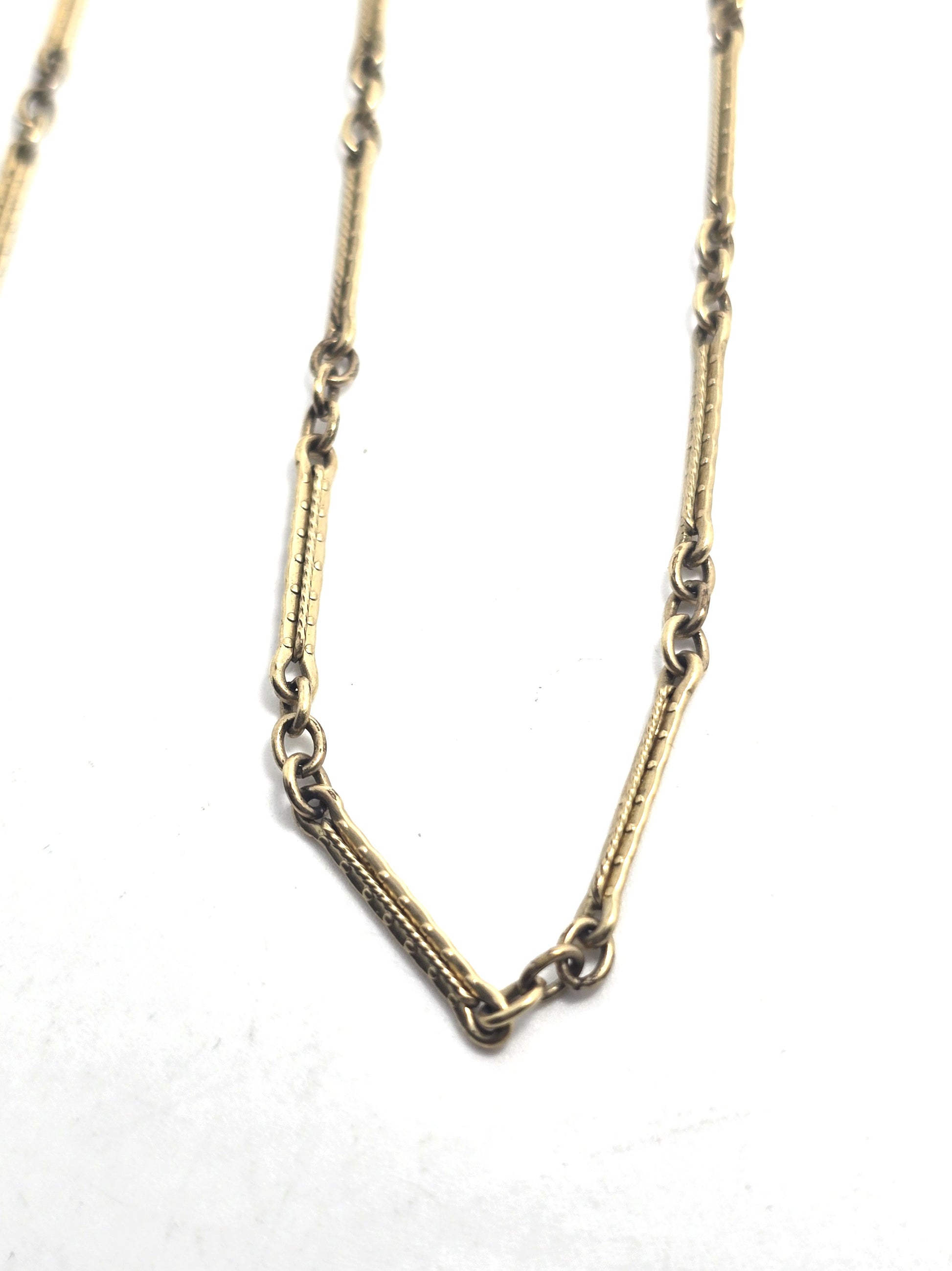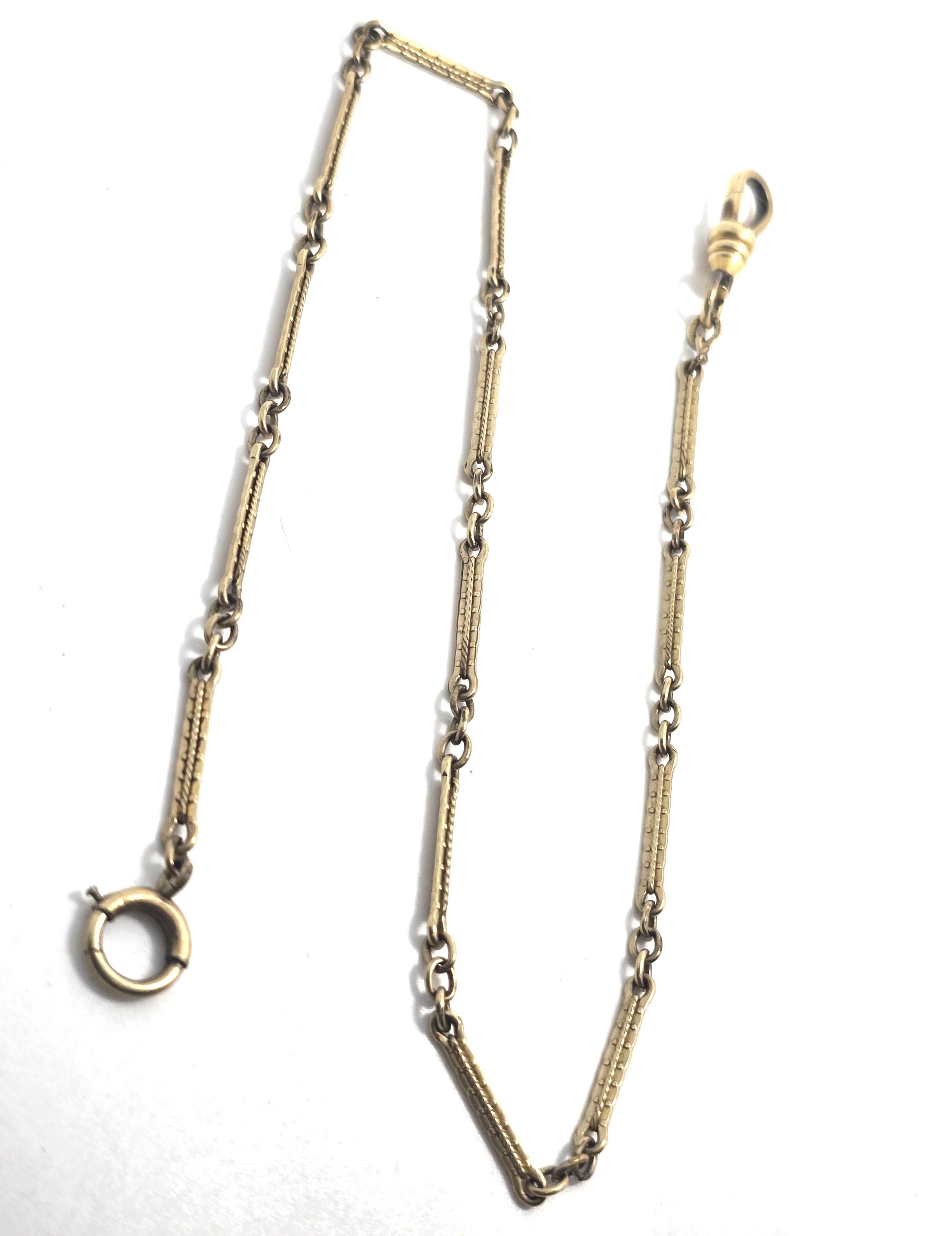 CKO Art Deco antique yellow gold filled embossed bar link 14 inch long watch fob chain