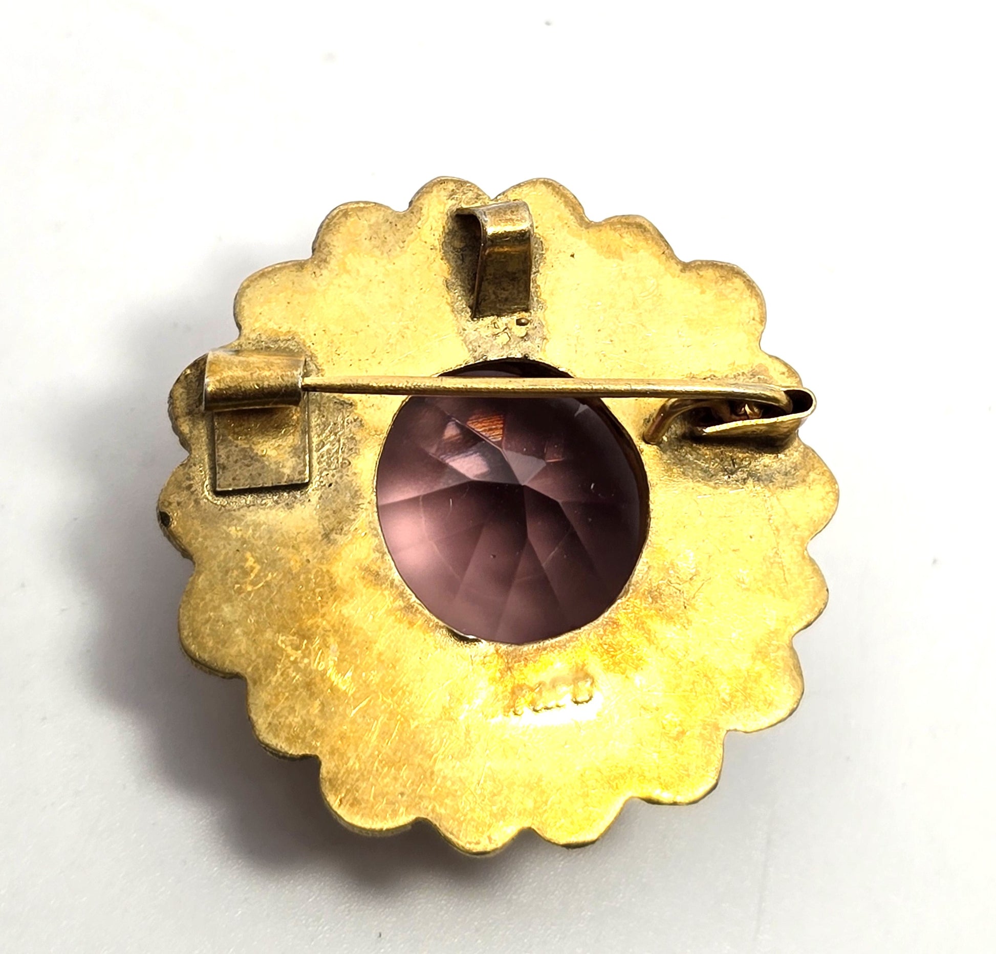 Art Deco Large Purple amethyst glass paste brass framed antique brooch