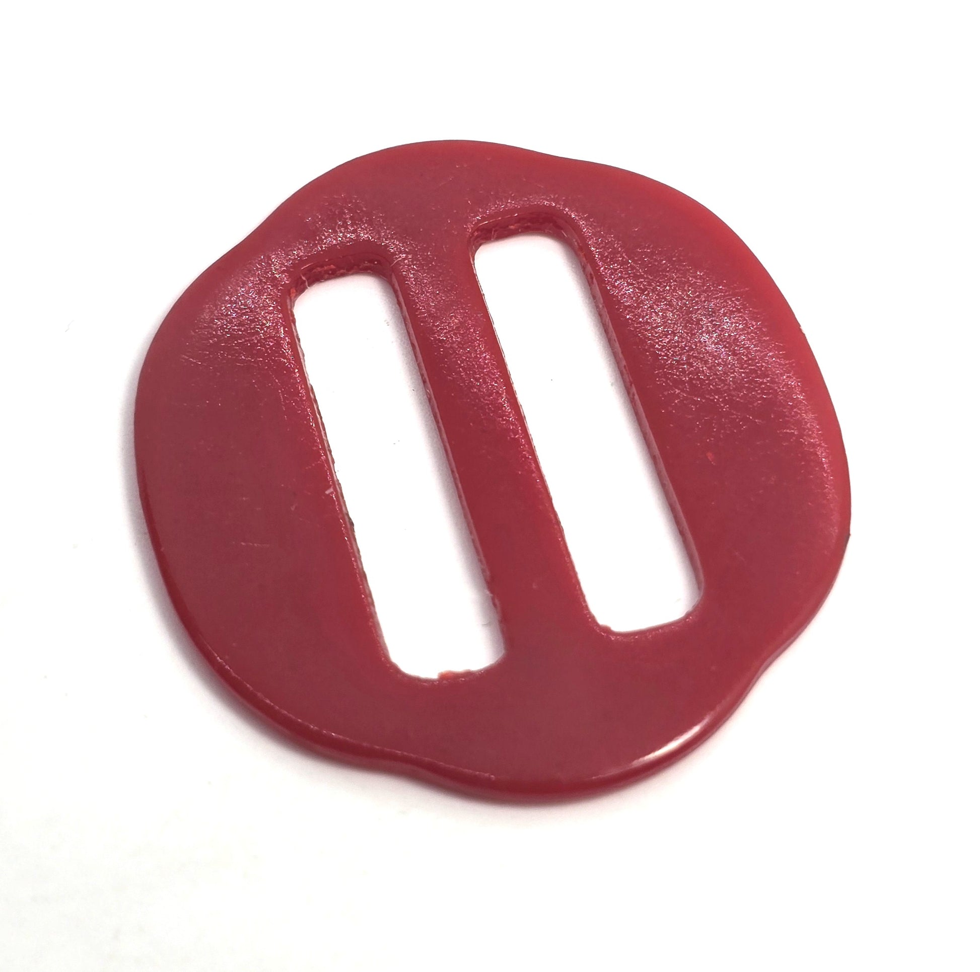 Art Deco Red Bakelite vintage small round scalloped sash belt buckle