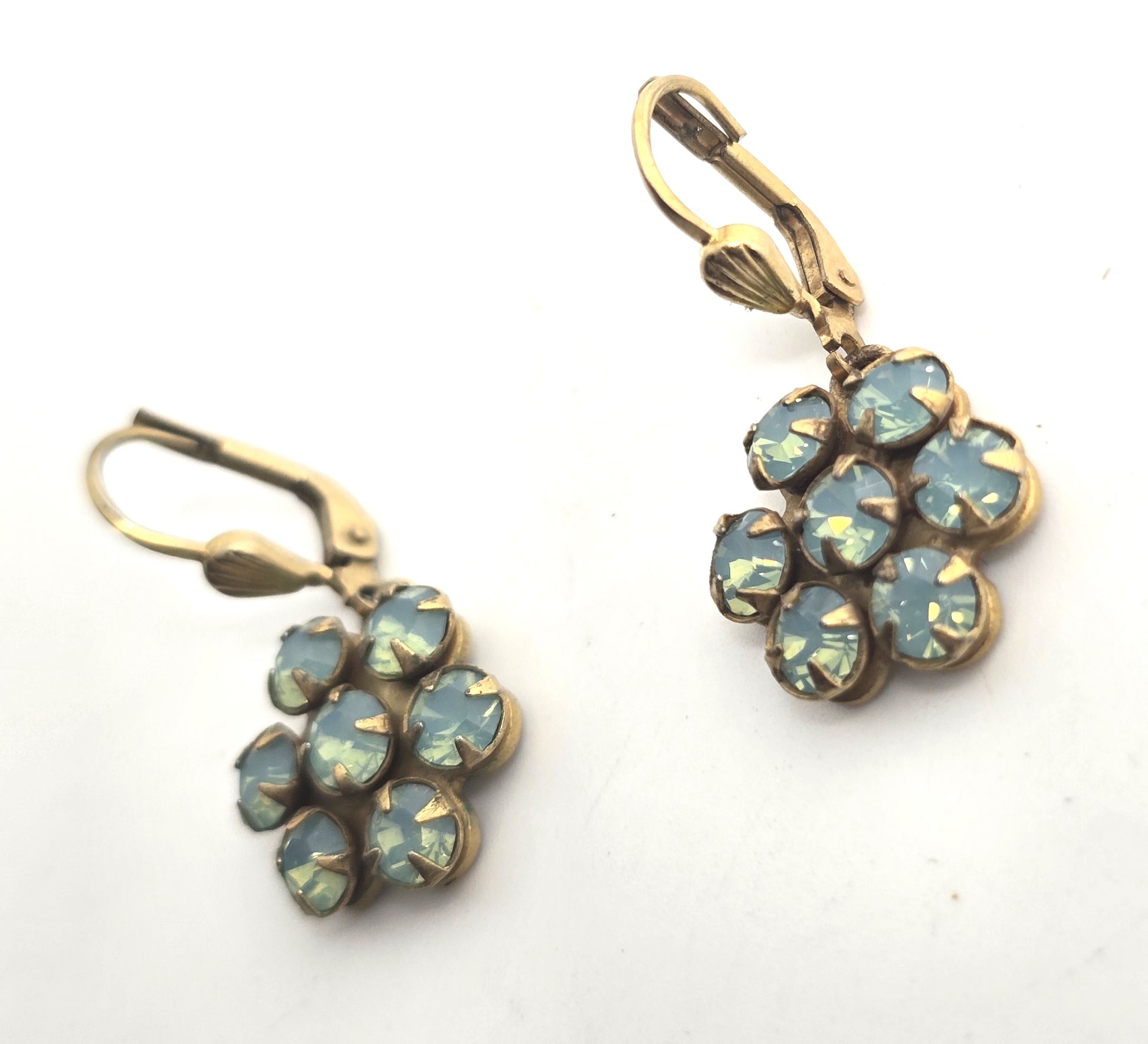 Aqua blue vintage rhinestone flower lever back earrings mid century