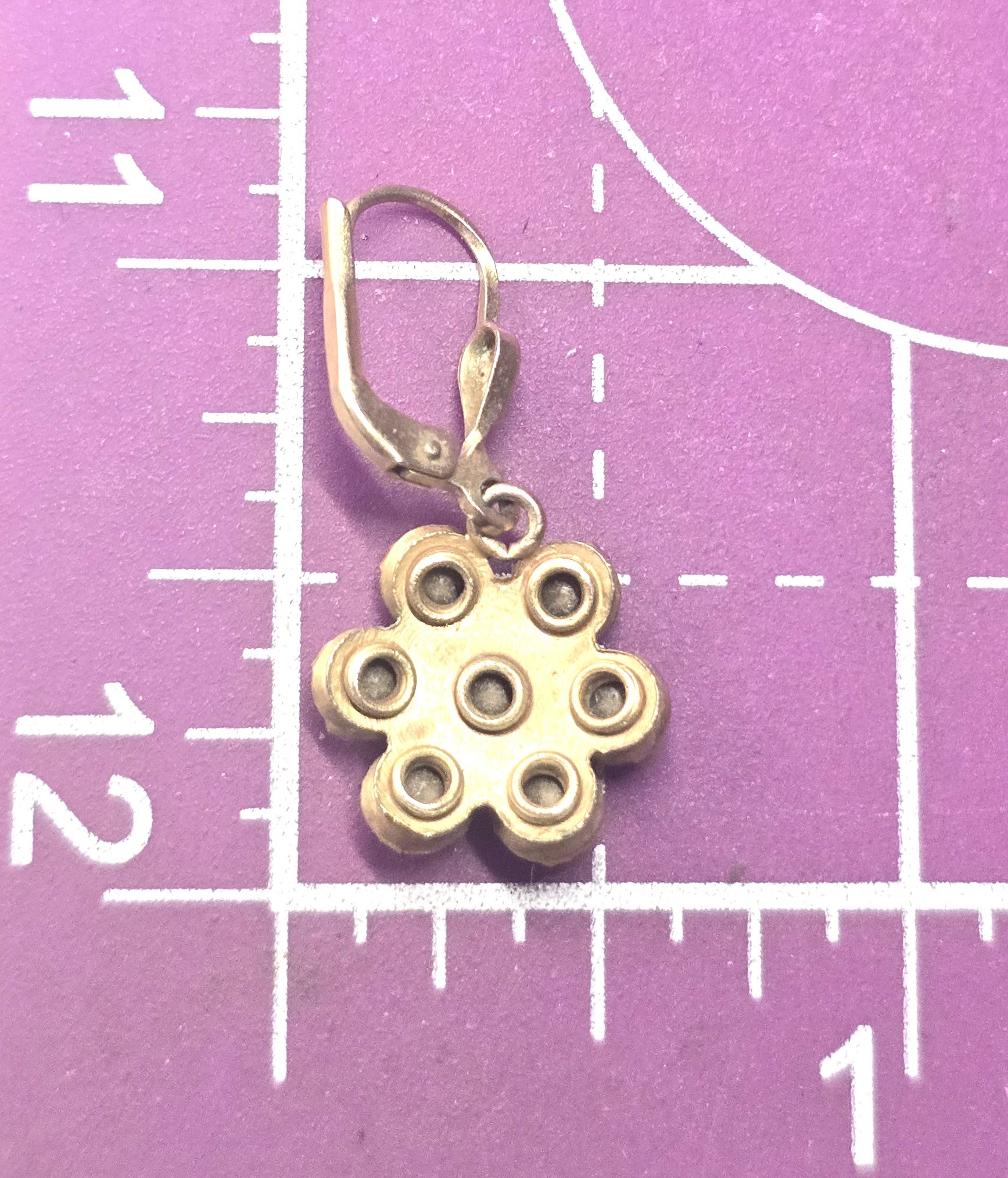 Earrings measure 1 and 1/8th of an inch tall and 5/8ths of an inch wide.