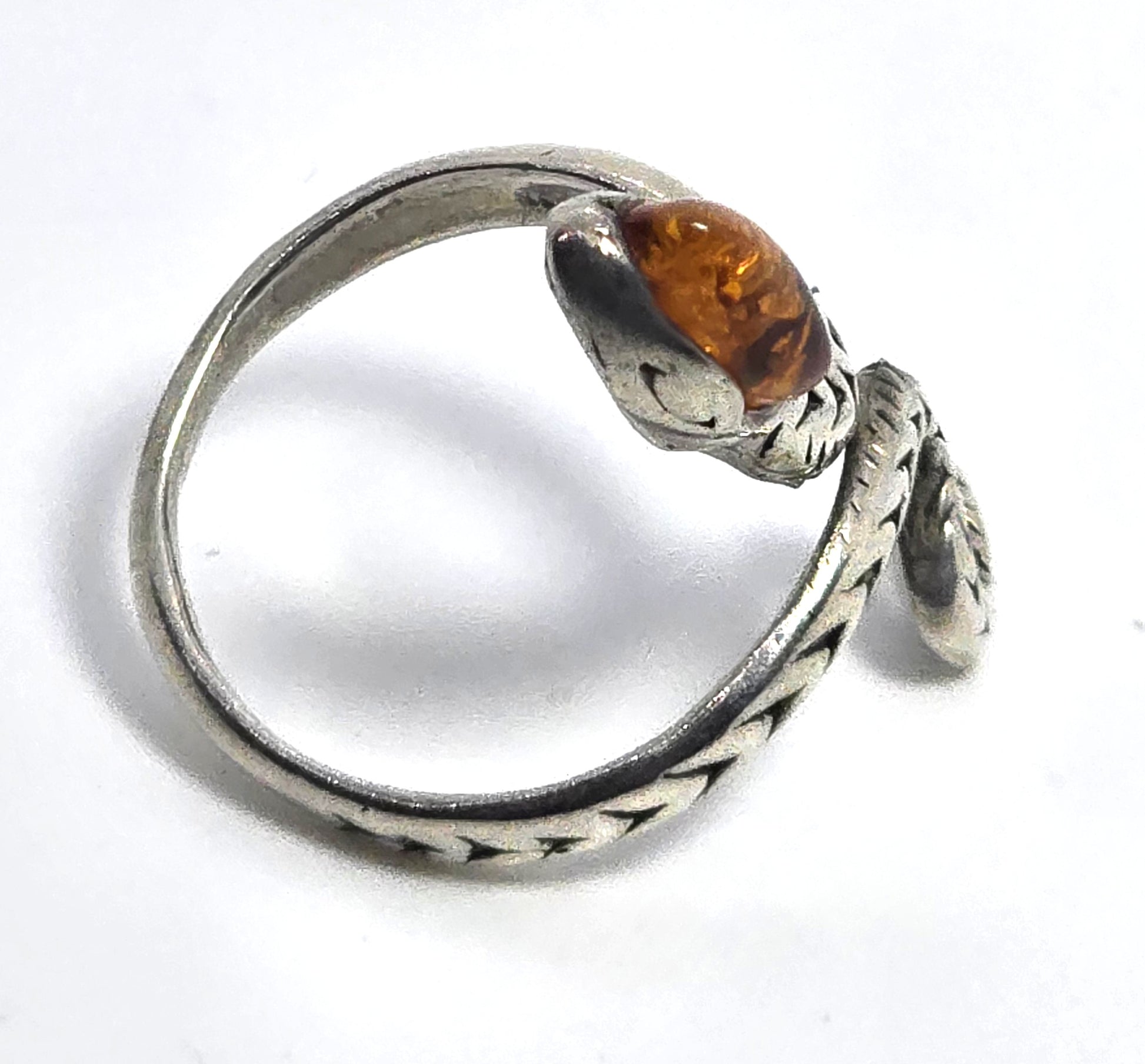Baltic Amber Large etched sterling silver snake wrap statement ring size 7. Good vintage condition with little signs of normal vintage wear. Great patina present. Stamped KL 925 on the inside of the band.