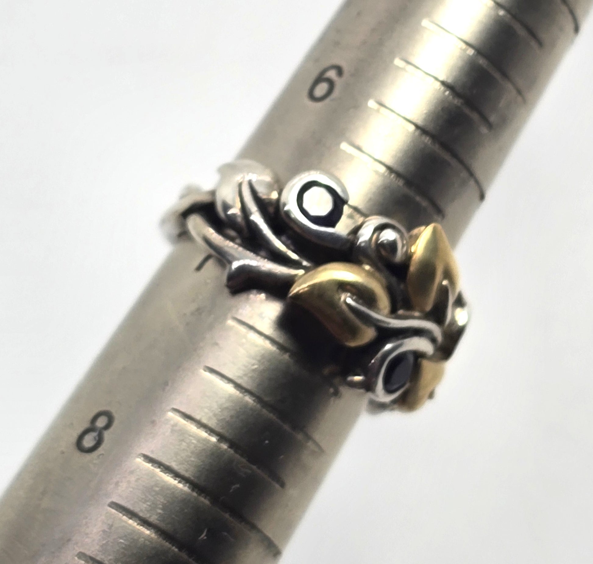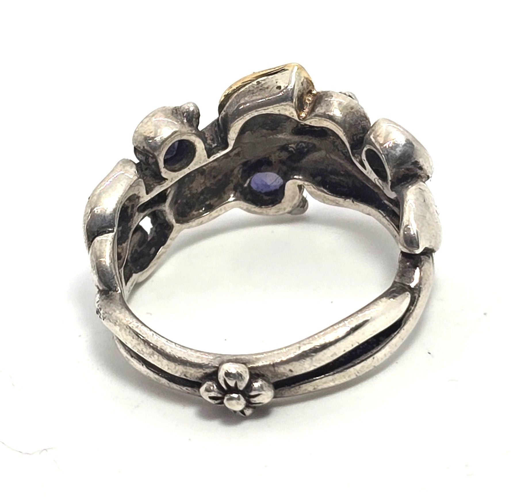 Barbara Bixby Sterling Silver & 18K Gold Iolite Ivy leaf band Ring Size 7