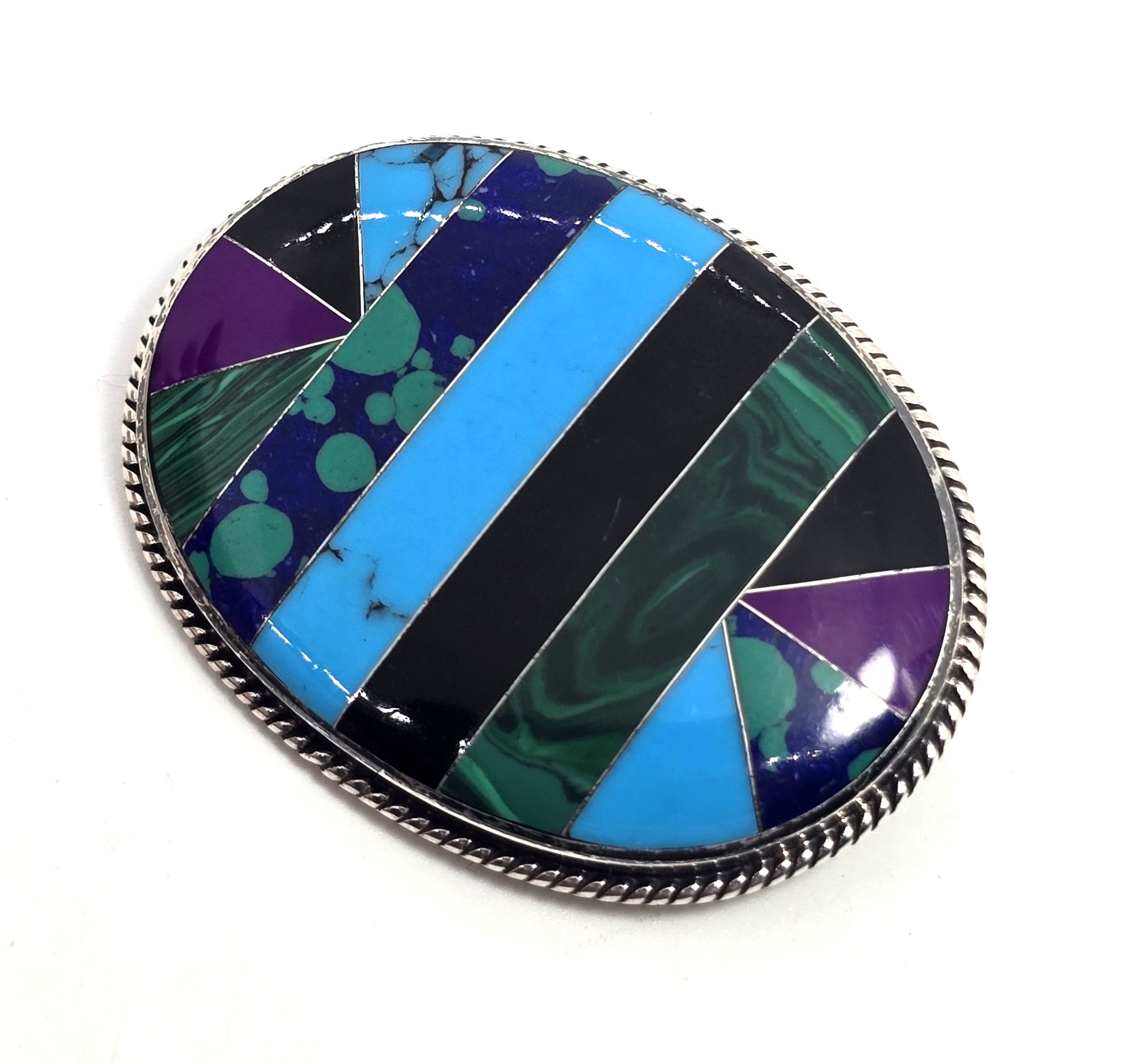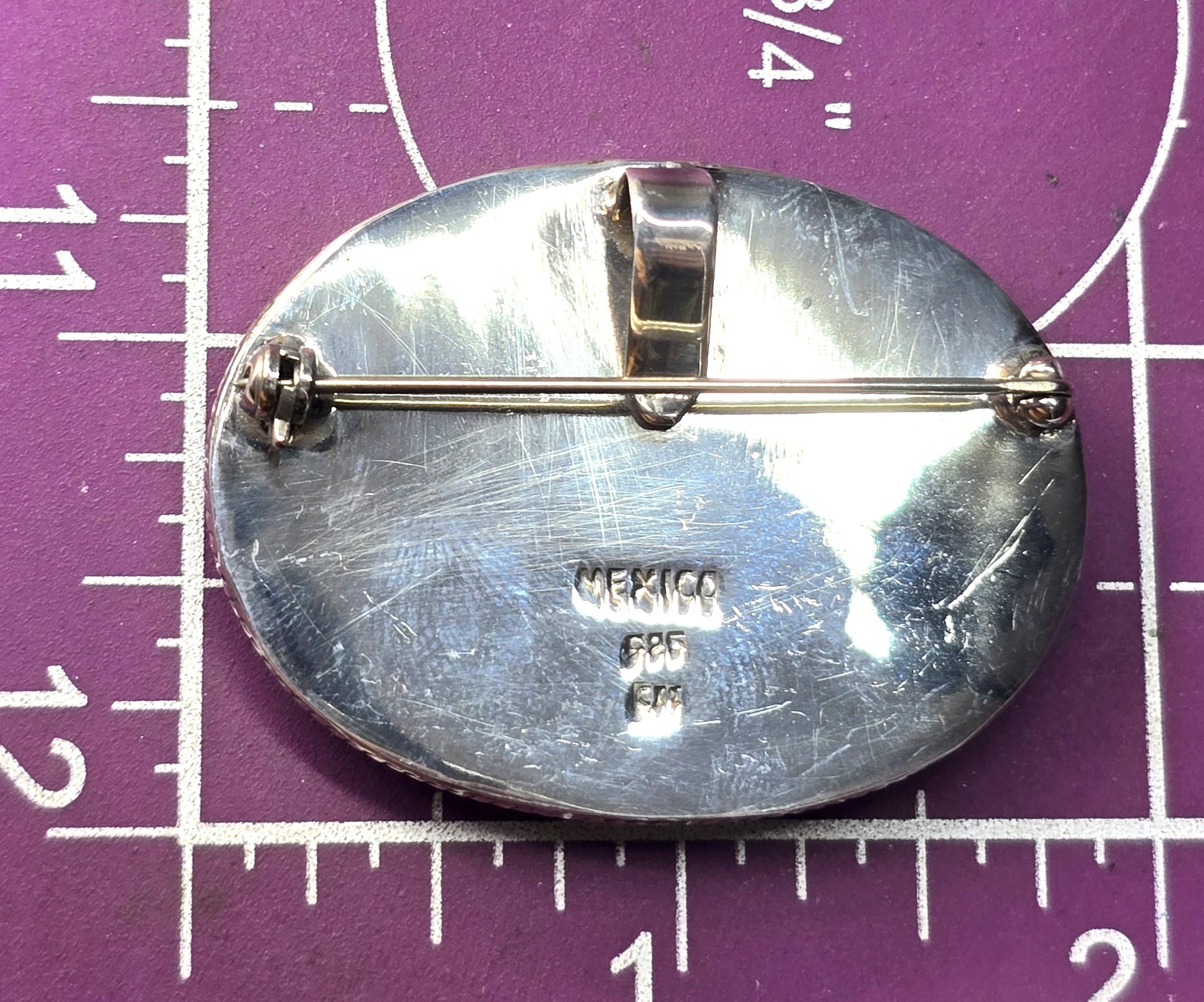 CII Taxco 925 Sterling Silver Malachite Onyx Turquoise Inlay Oval Pendant Brooch