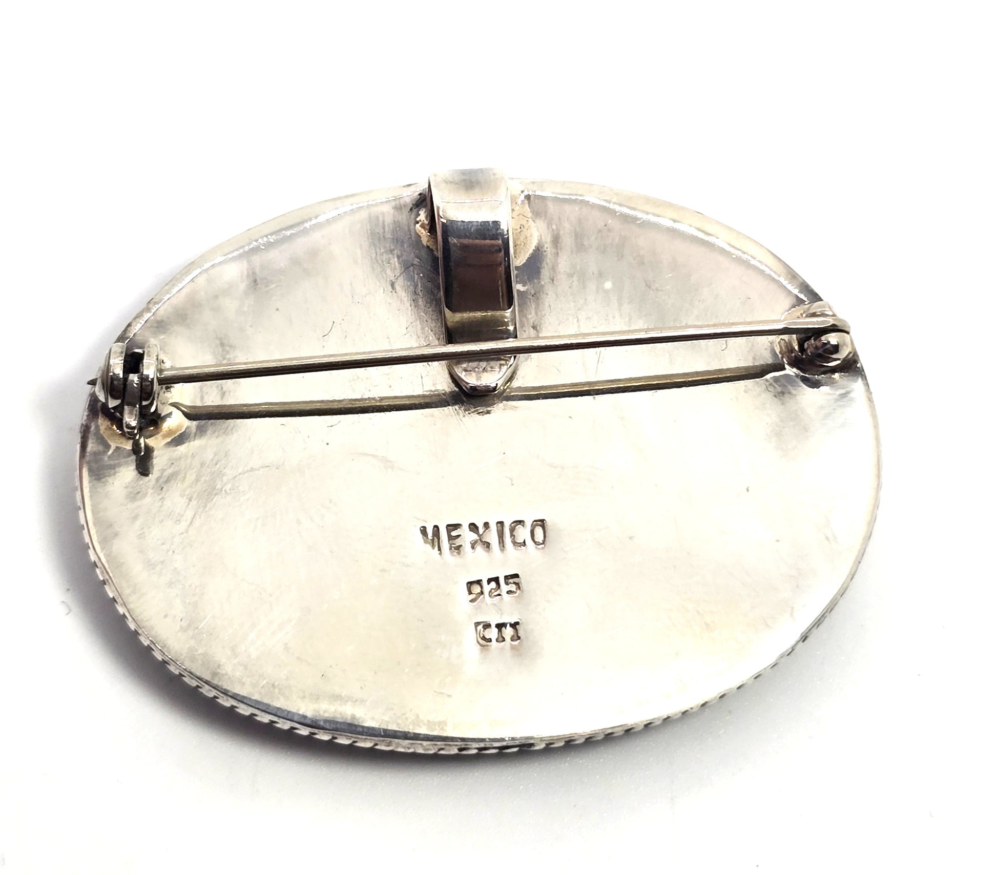CII Taxco 925 Sterling Silver Malachite Onyx Turquoise Inlay Oval Pendant Brooch. Good vintage condition with little to no signs of normal vintage wear. Stamped 925 Mexico CII on the back.