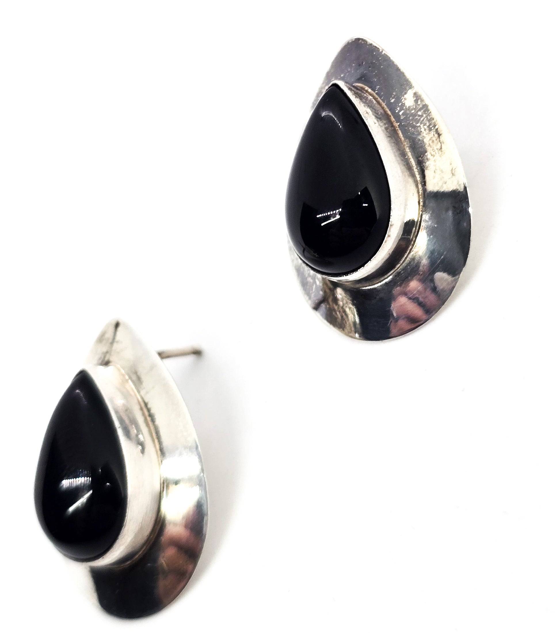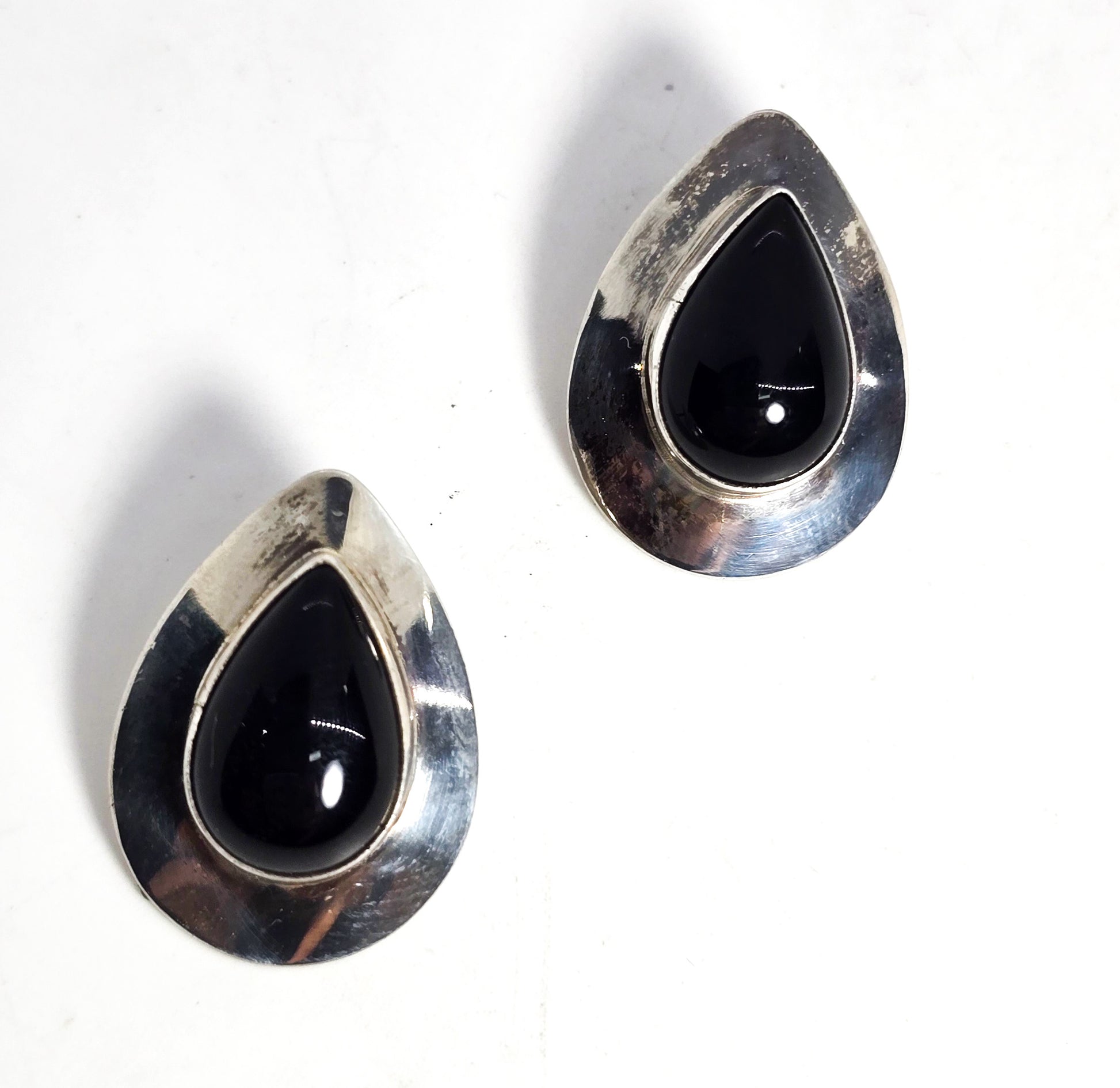 RWJ Black Onyx sterling silver Native American tear drop vintage earrings