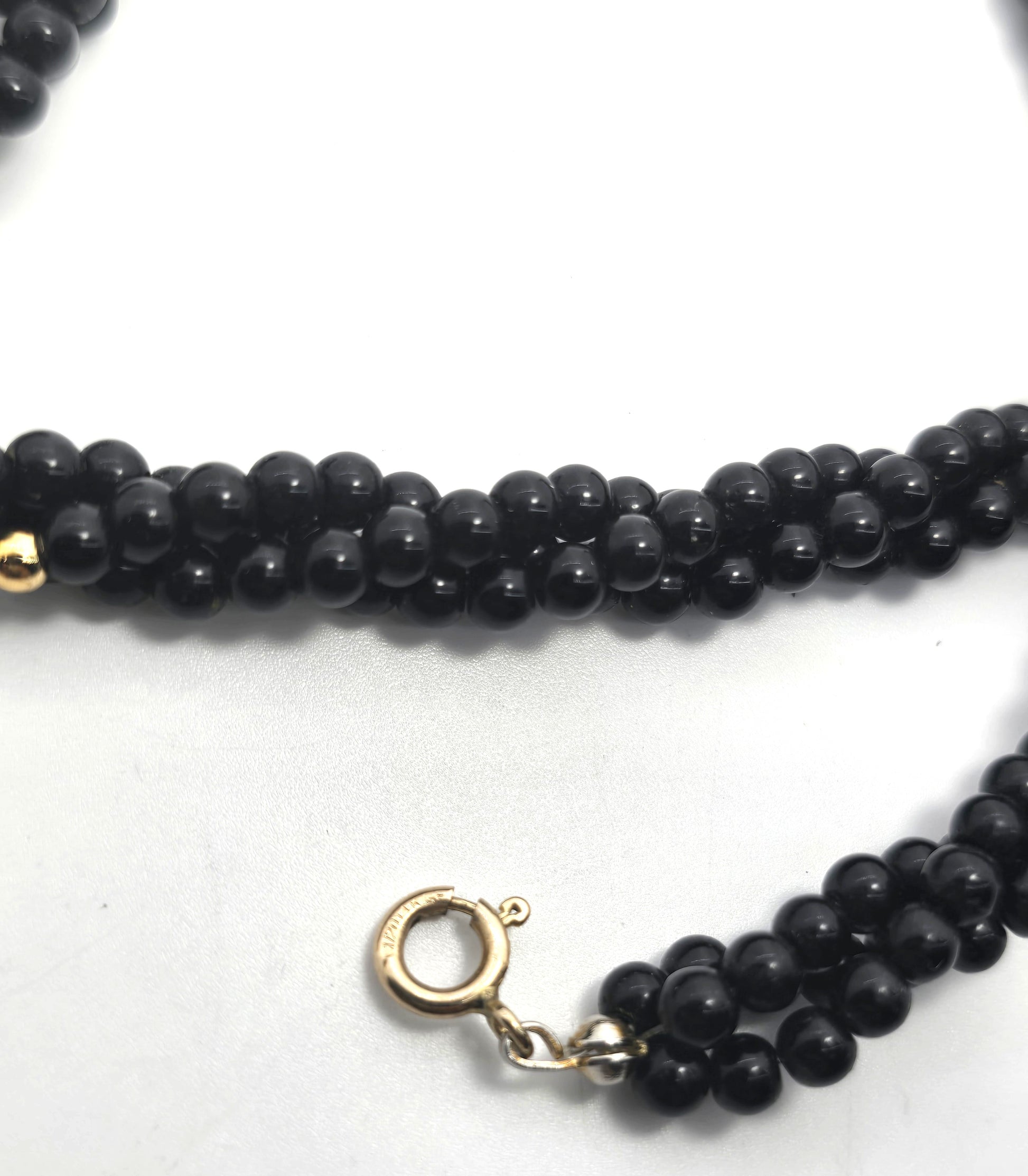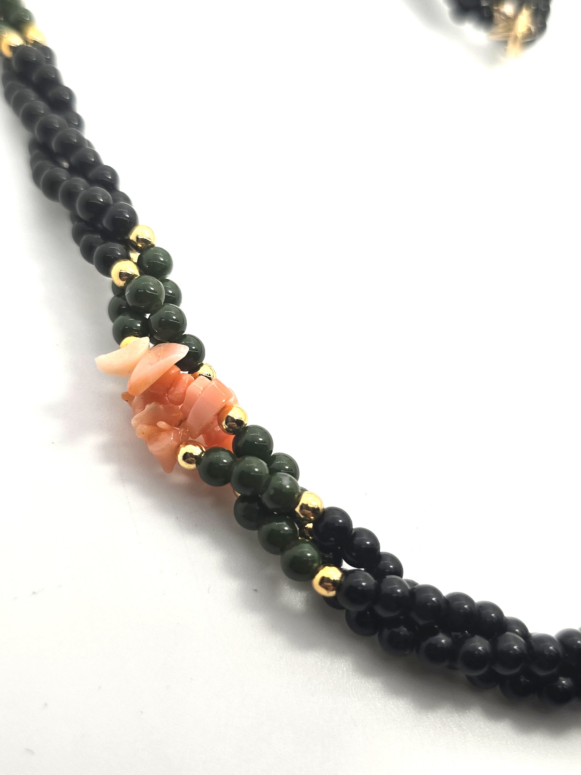 Black onyx green jade and coral 14k yellow gold filled beaded vintage necklace