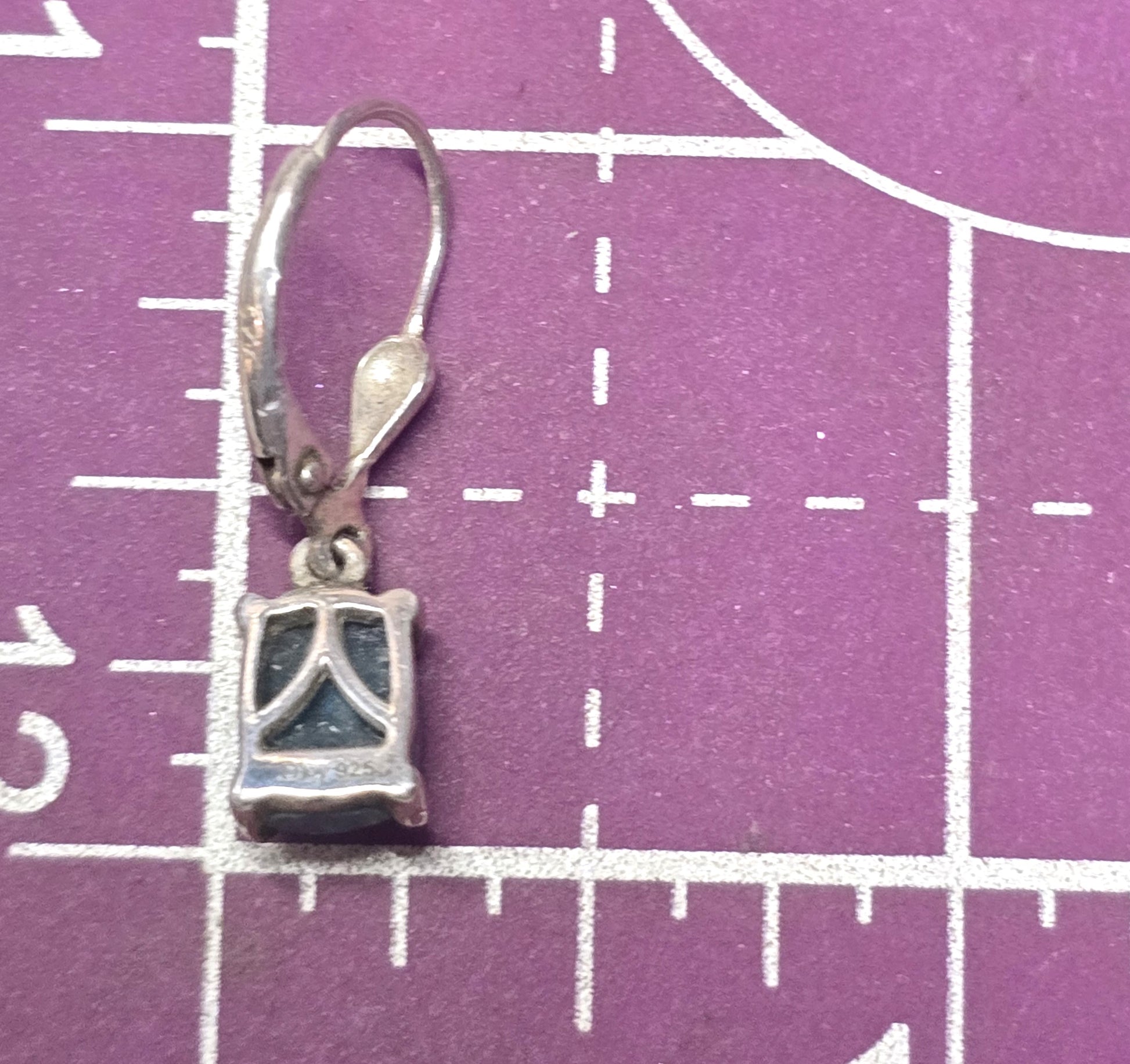 Earrings measure 1 inch tall and 1/4 of an inch wide.