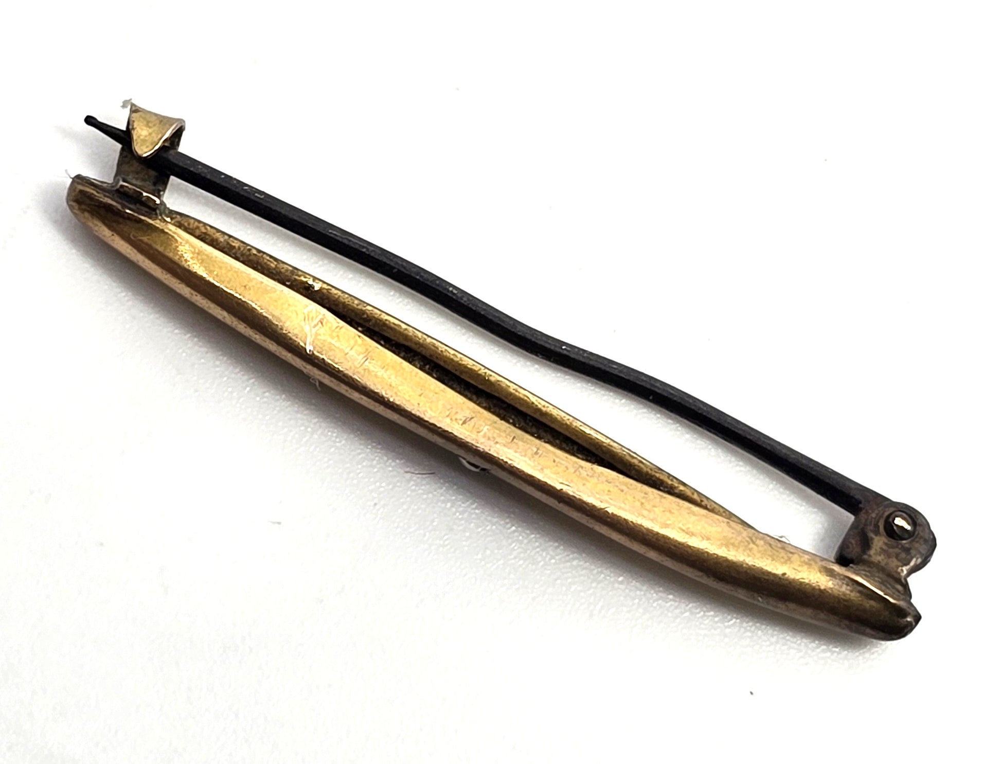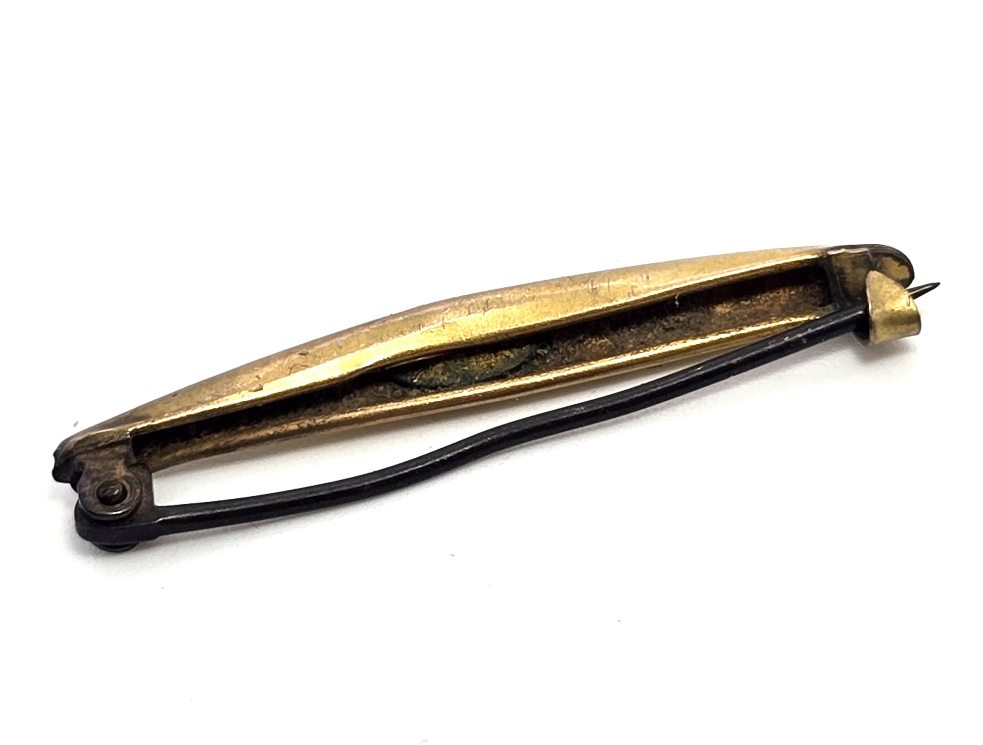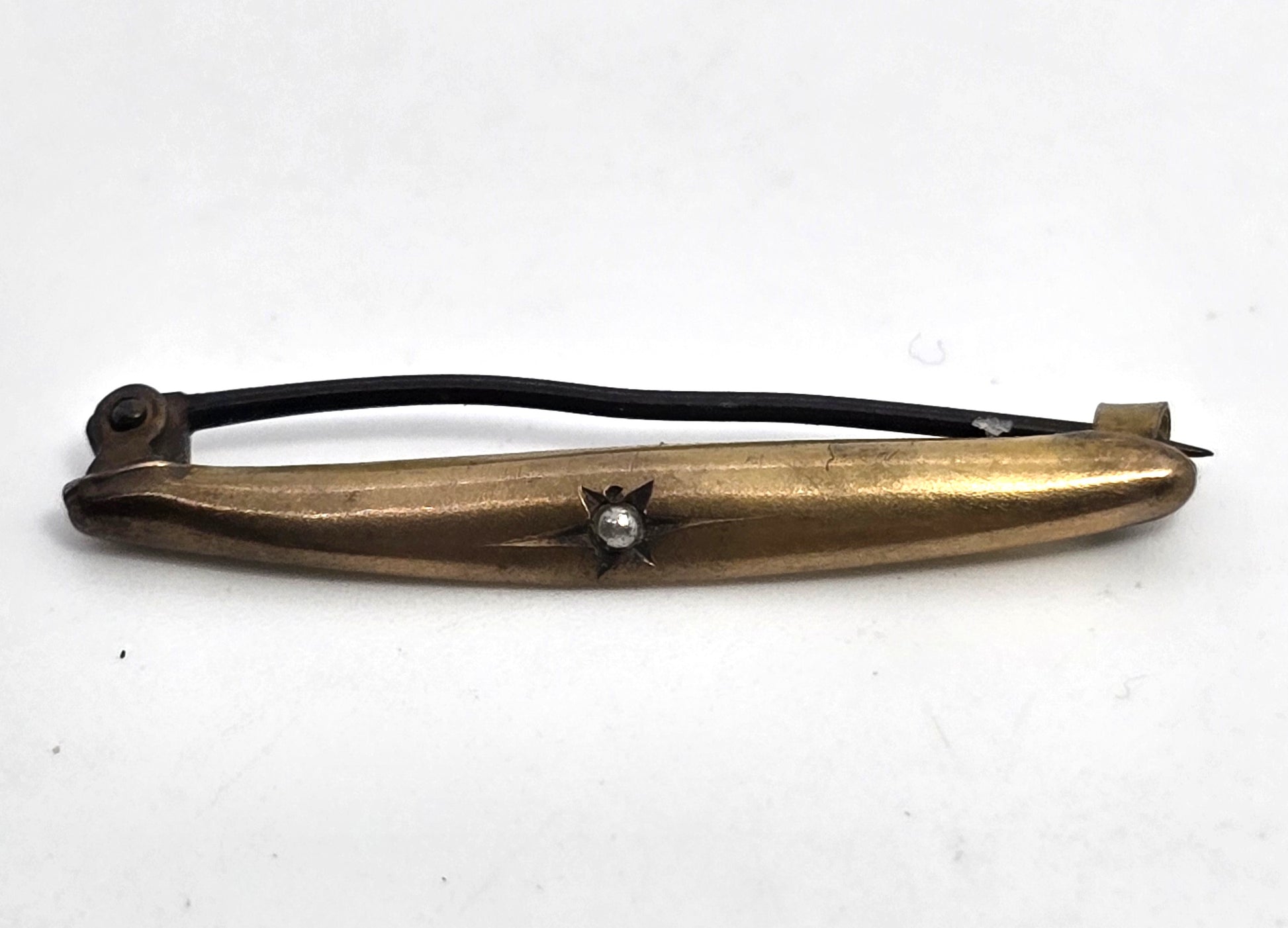 Seed pear yellow gold filled bar pin antique Victorian brooch lingerie pin. Fair used condition with little signs of normal wear. Brooch fastening has C clasp. Beautiful seed pear set into a gypsy star. Brooch has some damage and slightly bent.