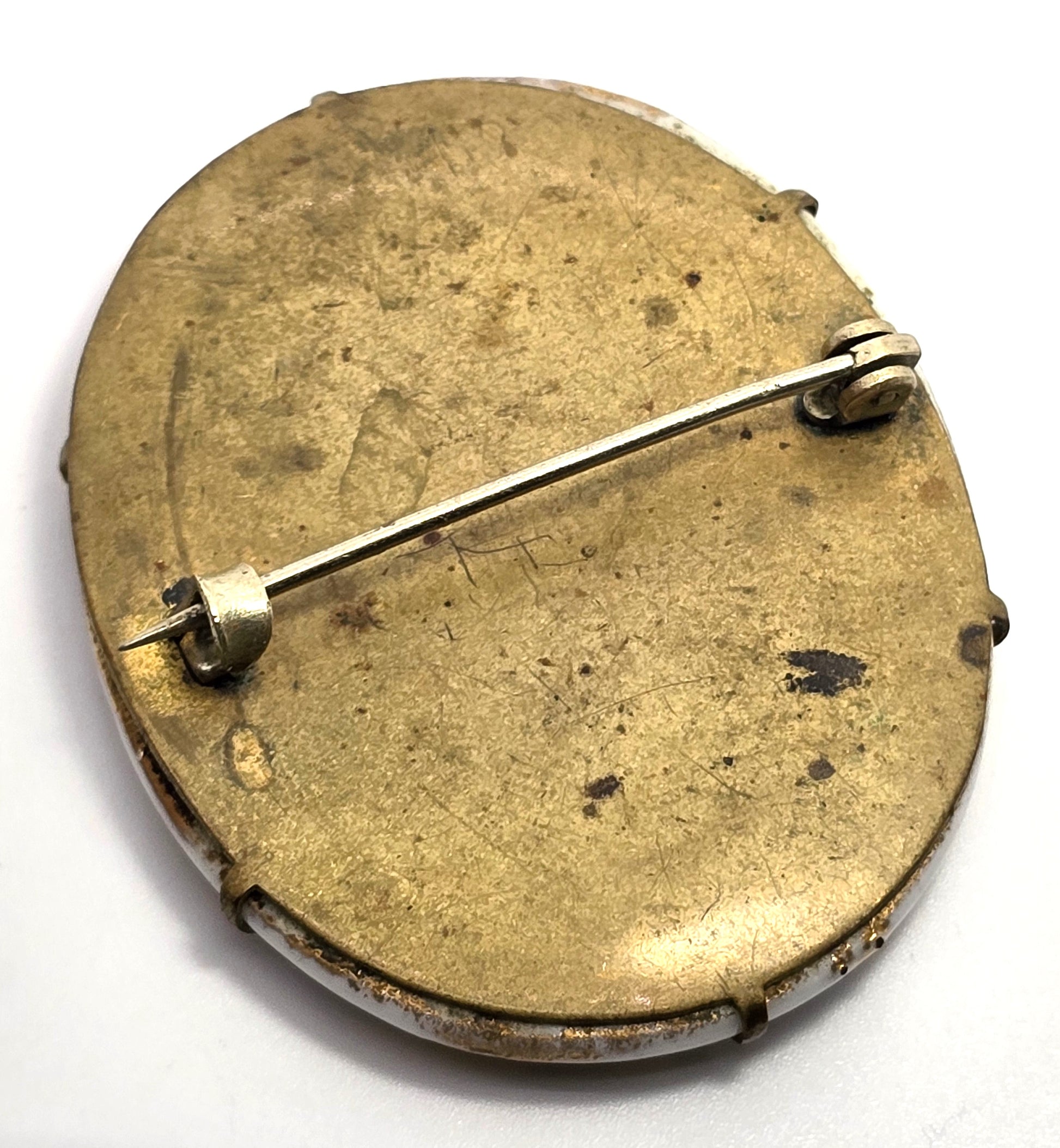 Pink Roses Painted Porcelain gold rimmed antique Victorian brooch 1900's