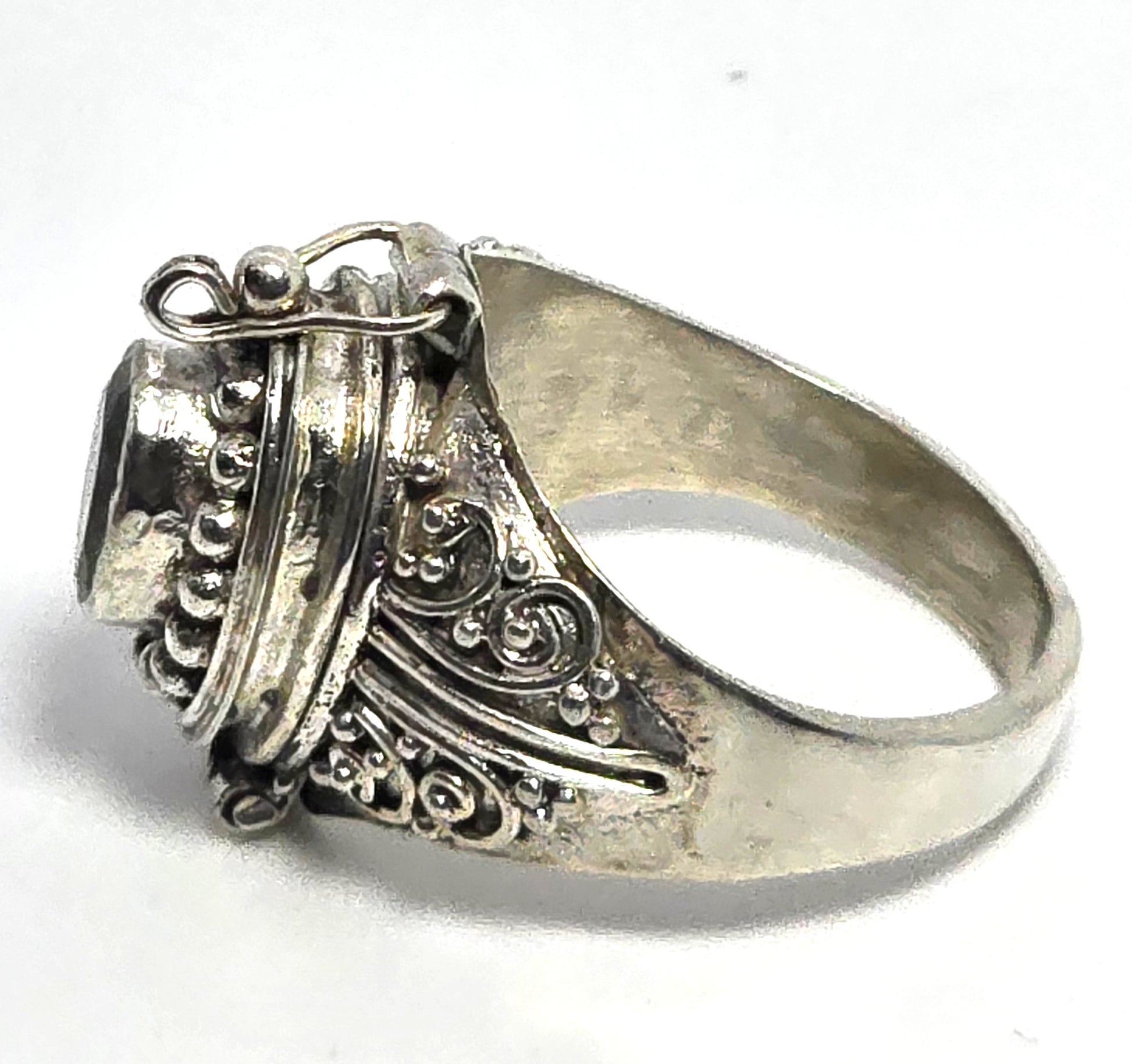 Blue topaz large Bali Balinese sterling silver vintage Poison ring size 6