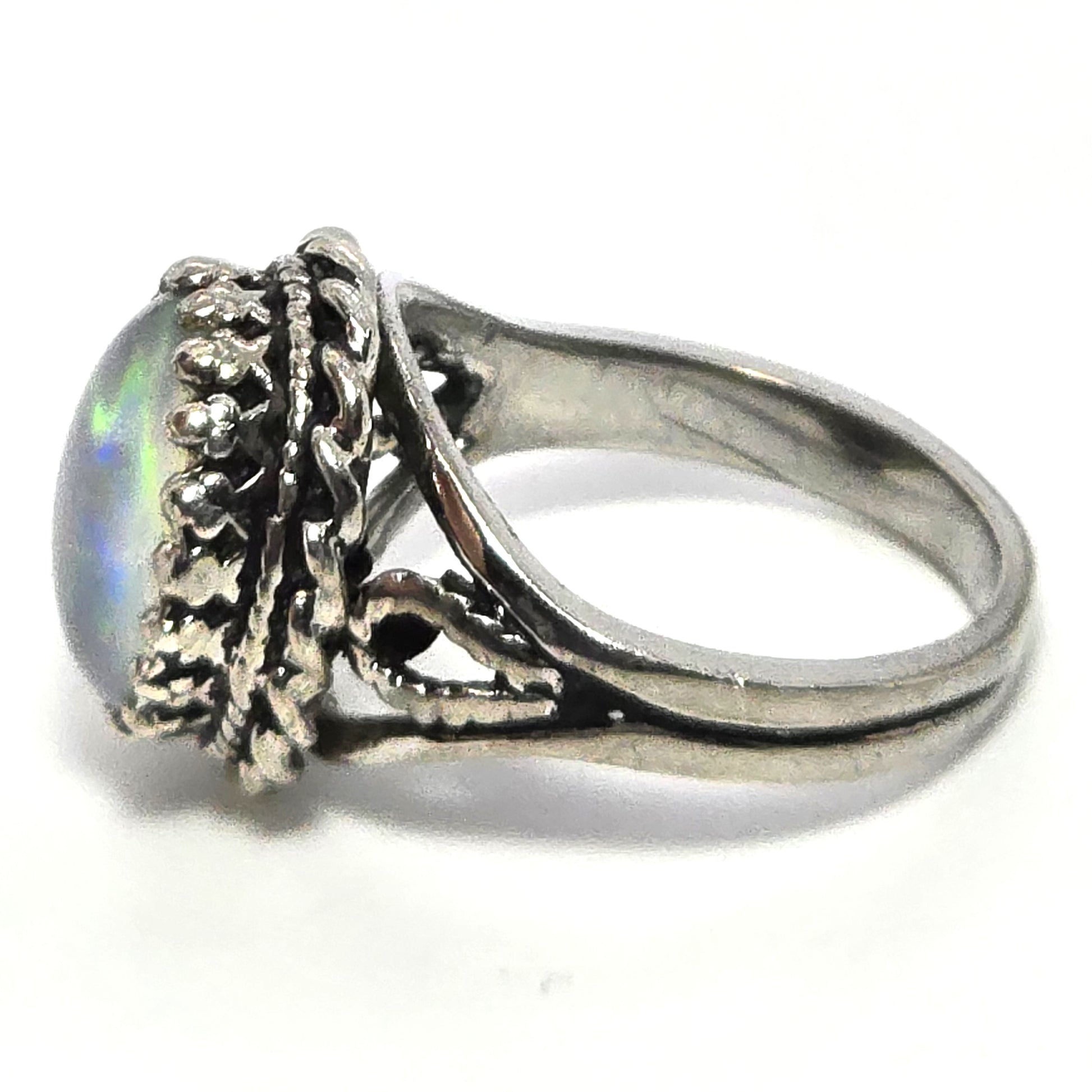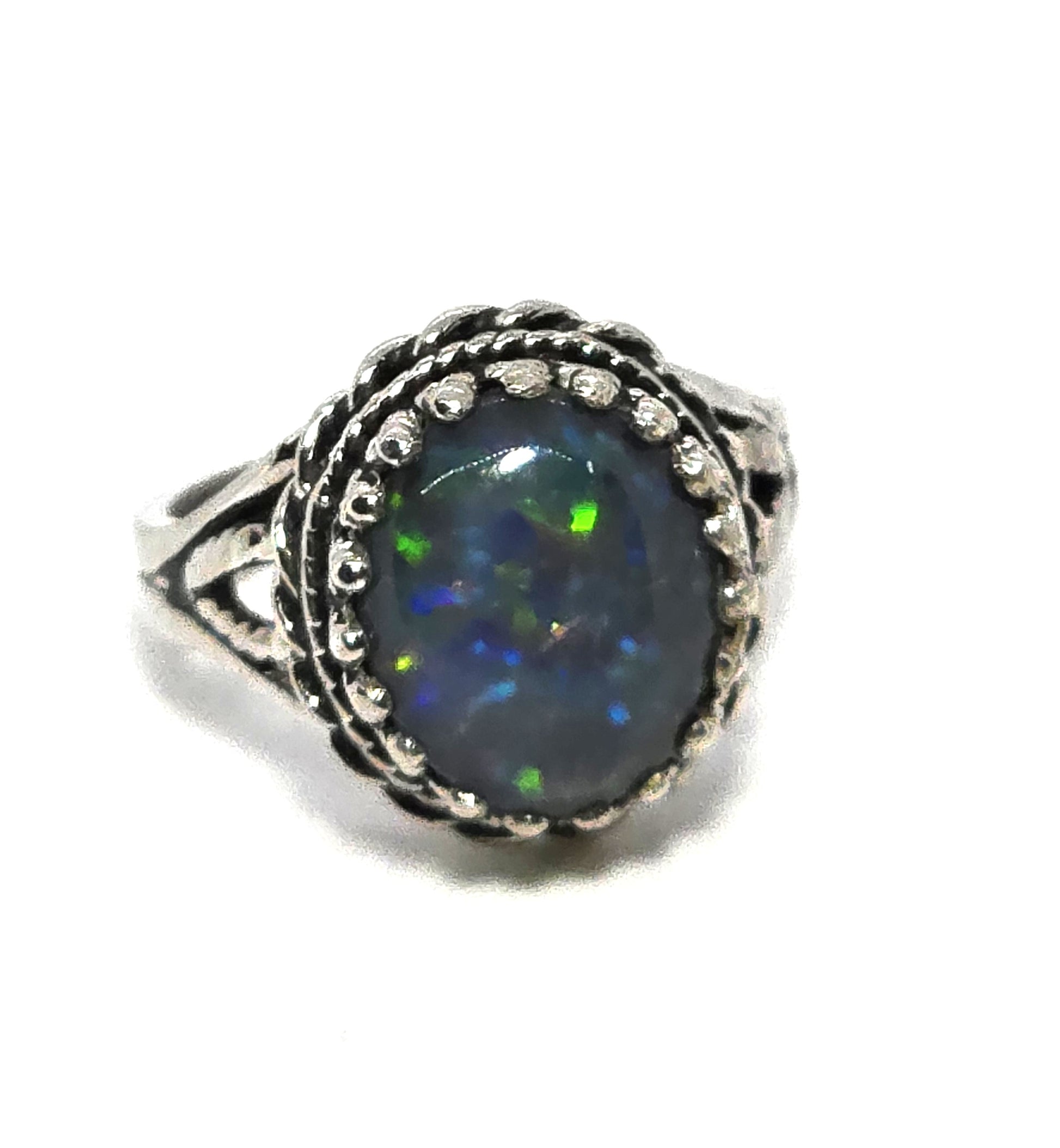 PC Black opal twisted halo signed vintage sterling silver ring size 7