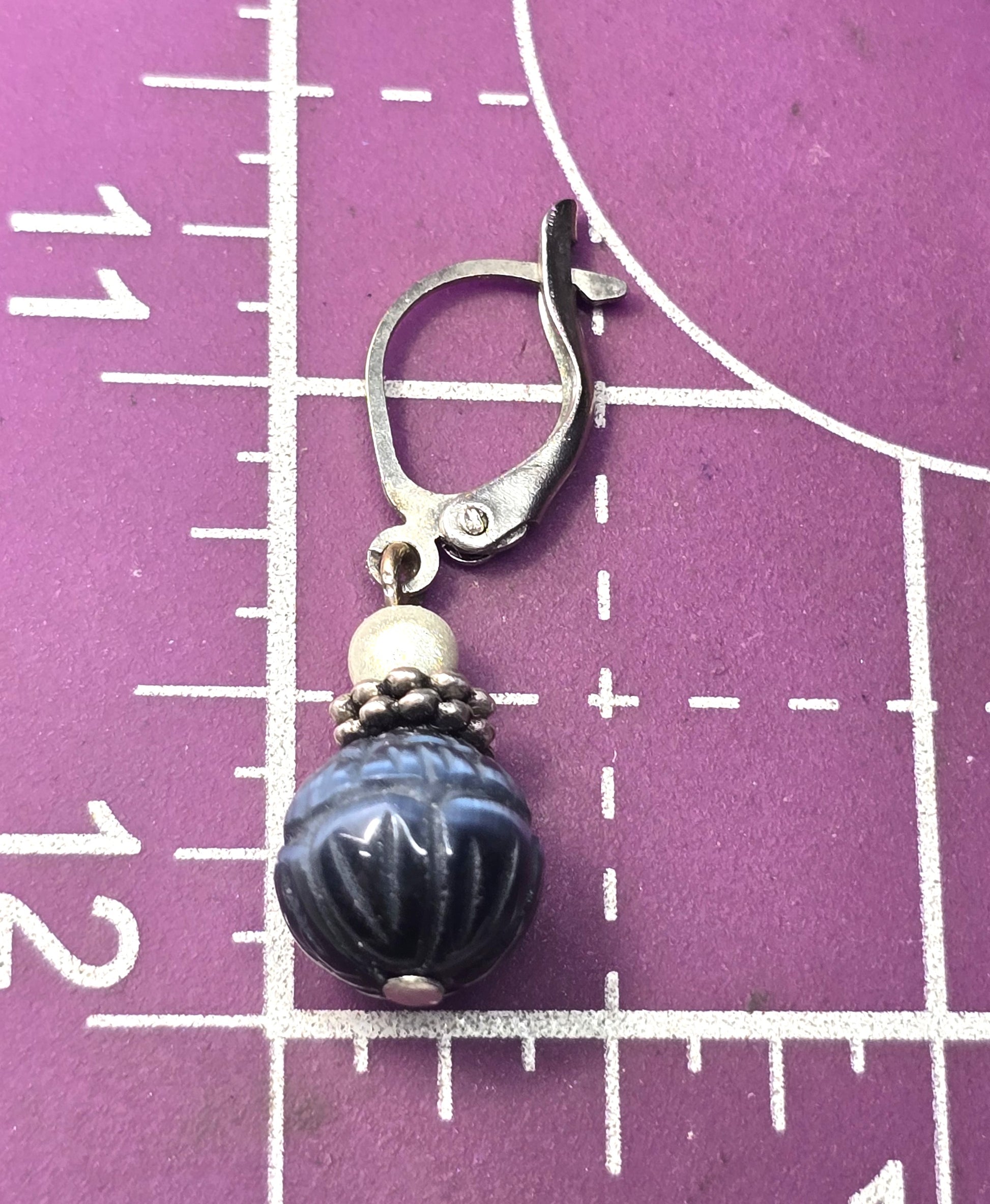 Blue tiger's eye carved beaded silver plated gemstone vintage earrings. Good used condition with little to no signs of normal wear. Beautiful solid stones has very little patterns carved around the stone.
