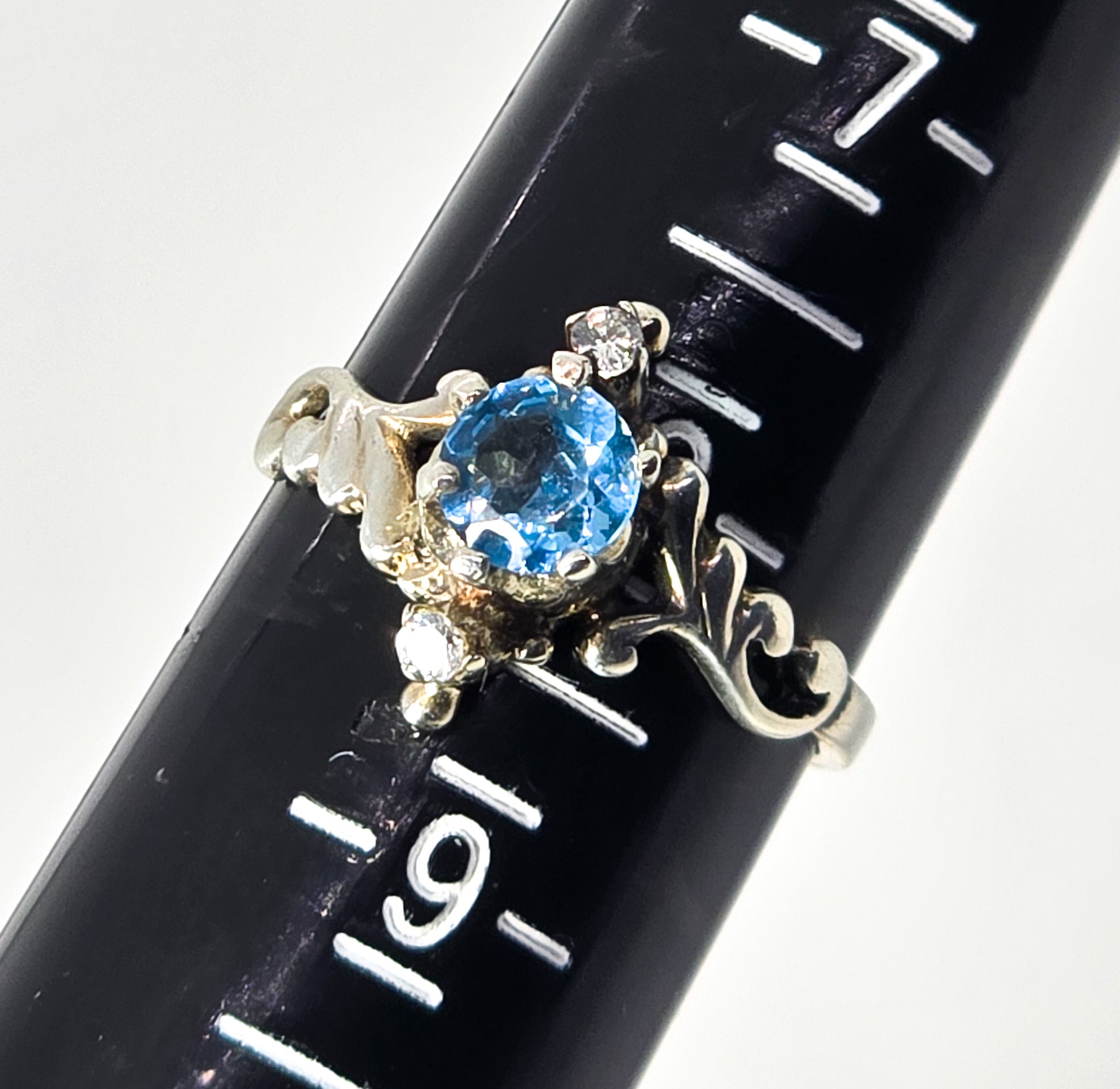 Blue Topaz gemstone Retro vintage filigree scroll sterling silver ring size 8