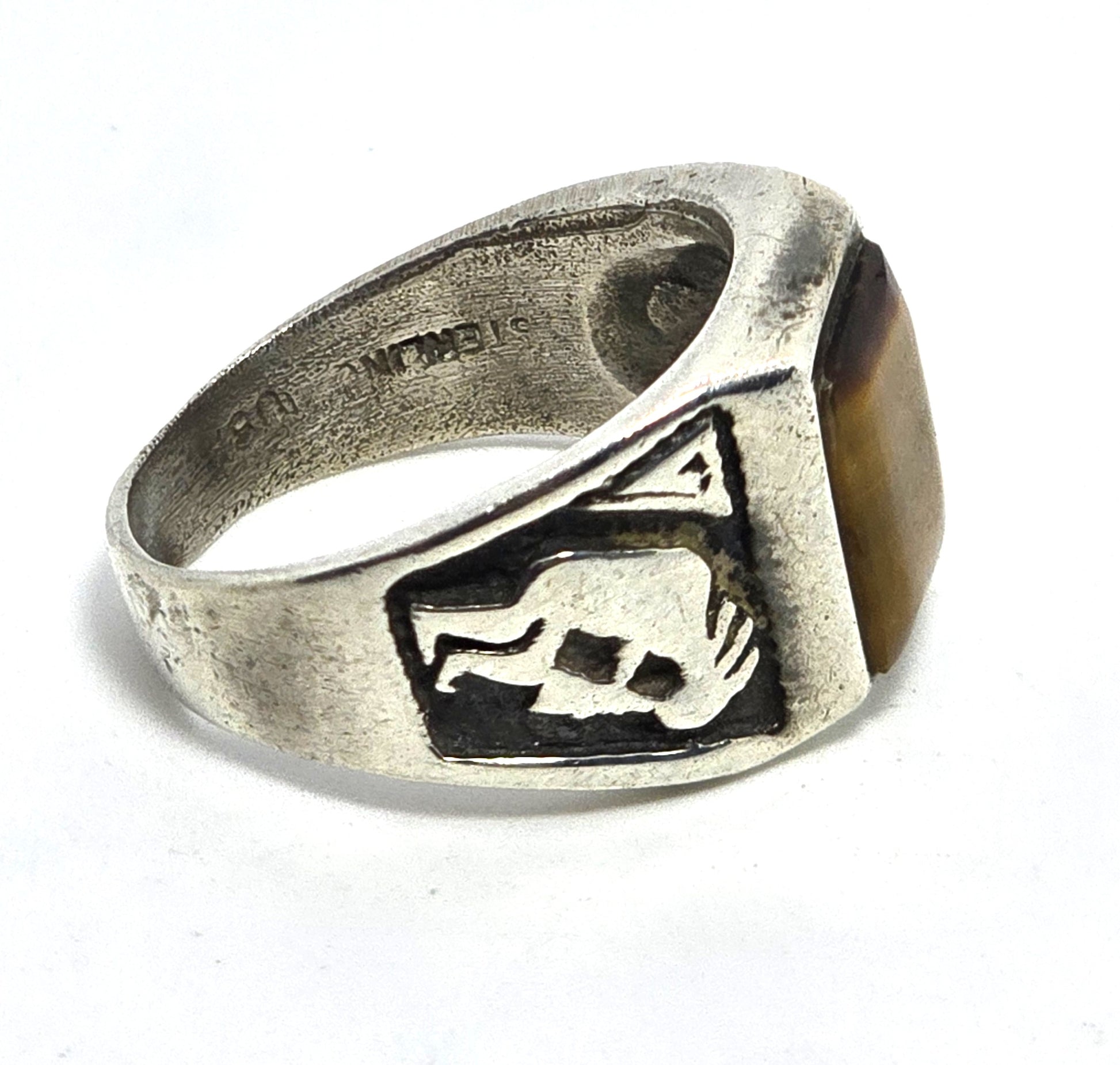 Brown Tiger's eye Kokopelli Native American sterling silver ring band size 7