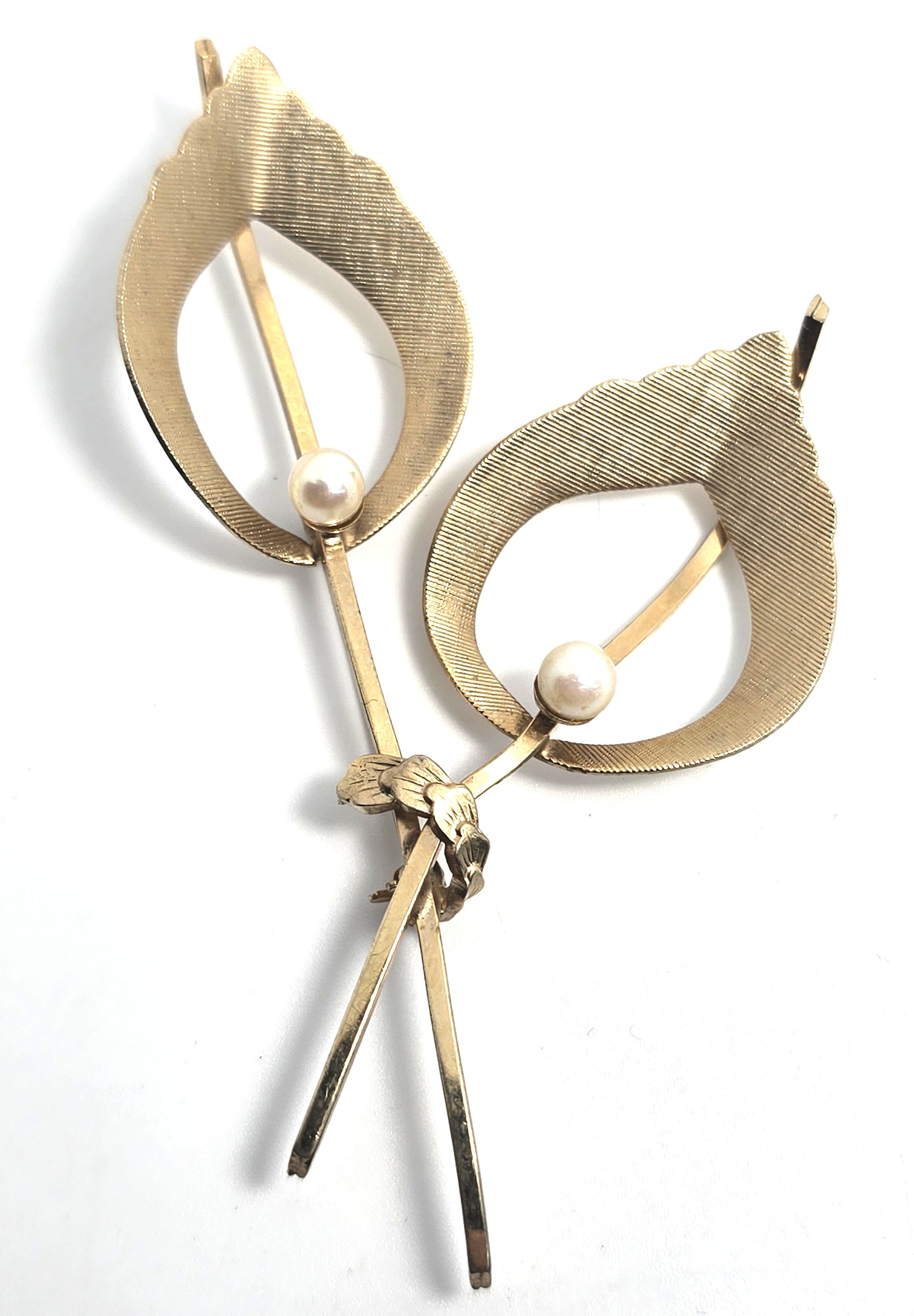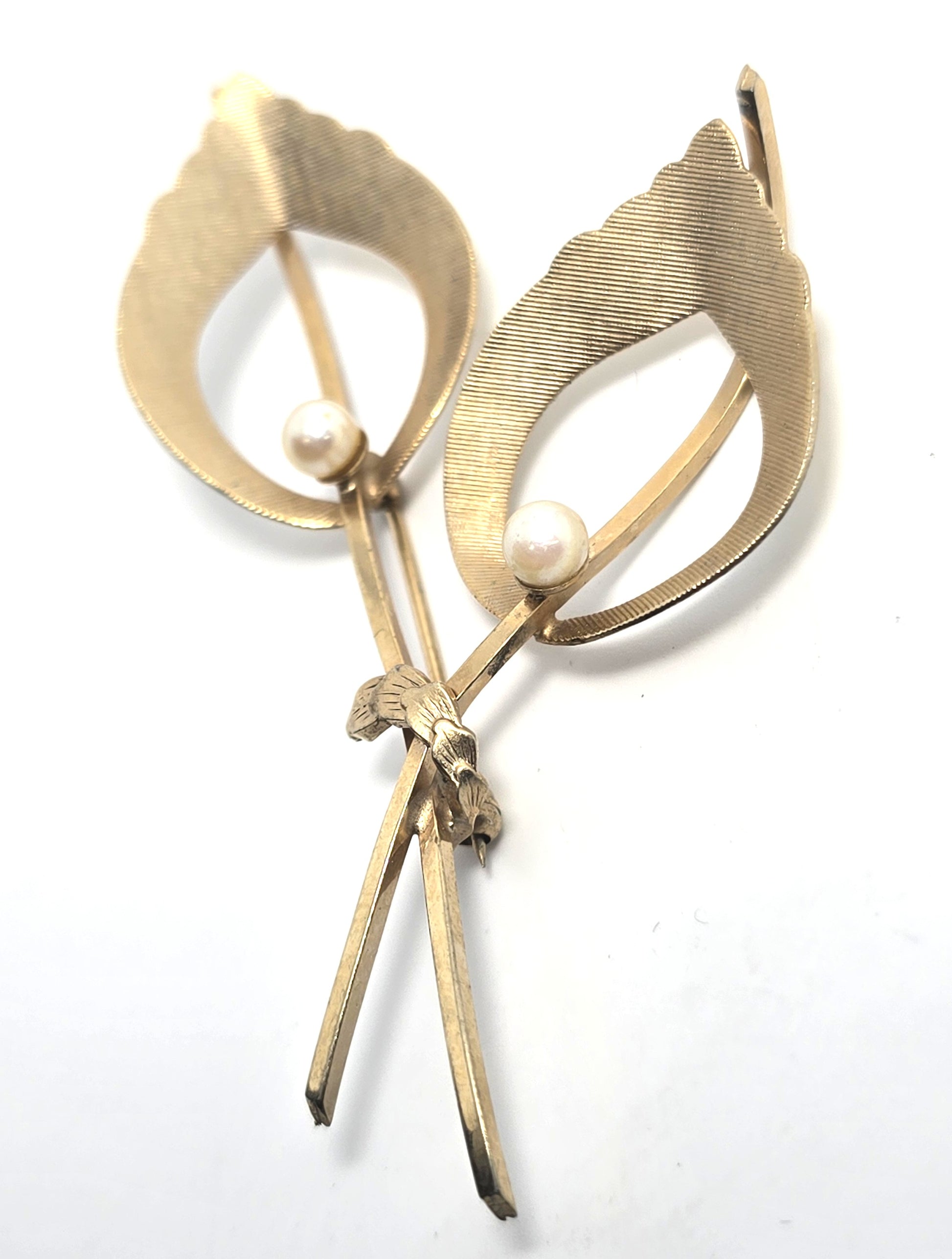 W Genuine pearl Calla lily 12k gold filled vintage signed flower brooch