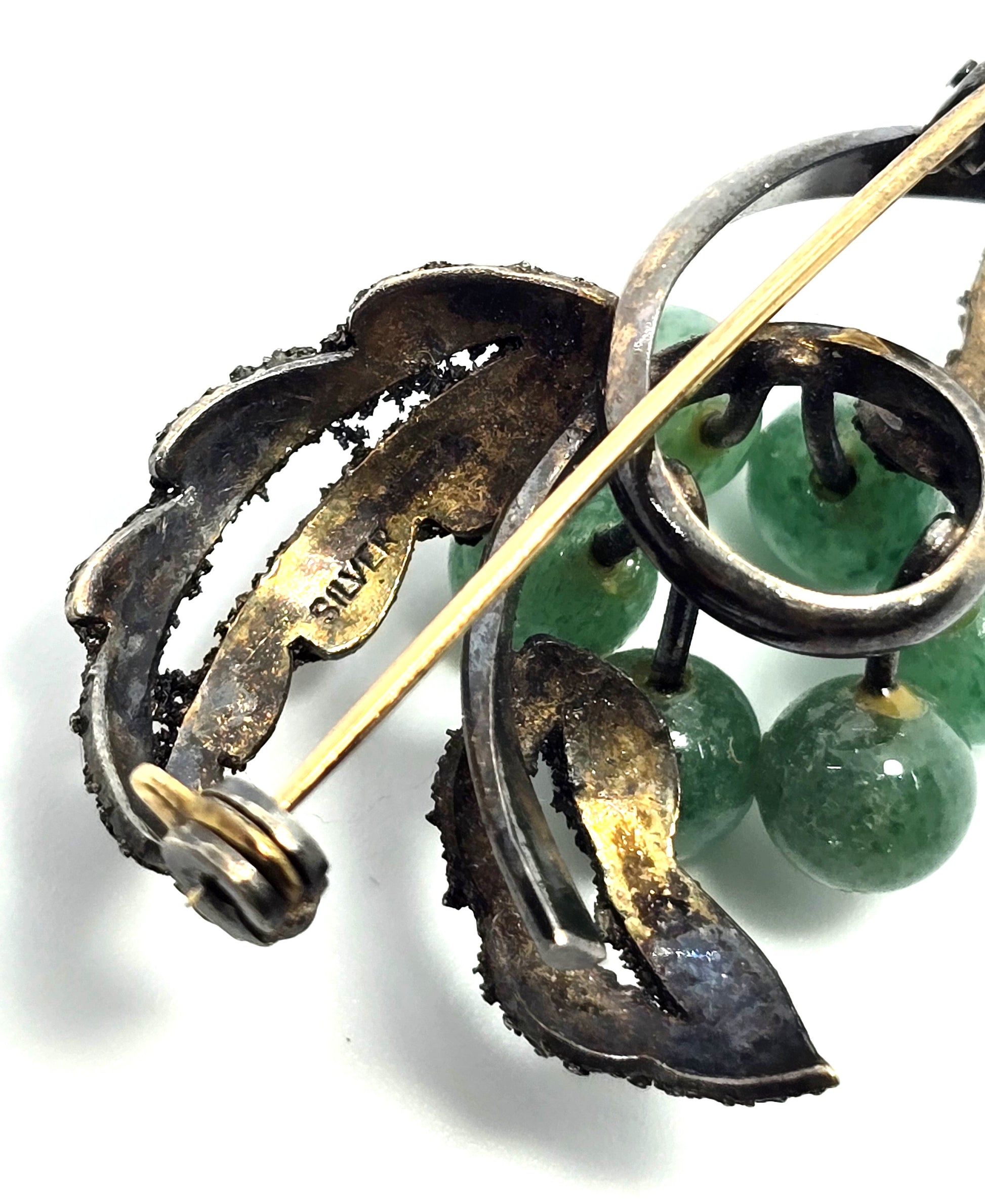 Nephrite Jade beaded flower Chinese Export antique sterling silver brooch
