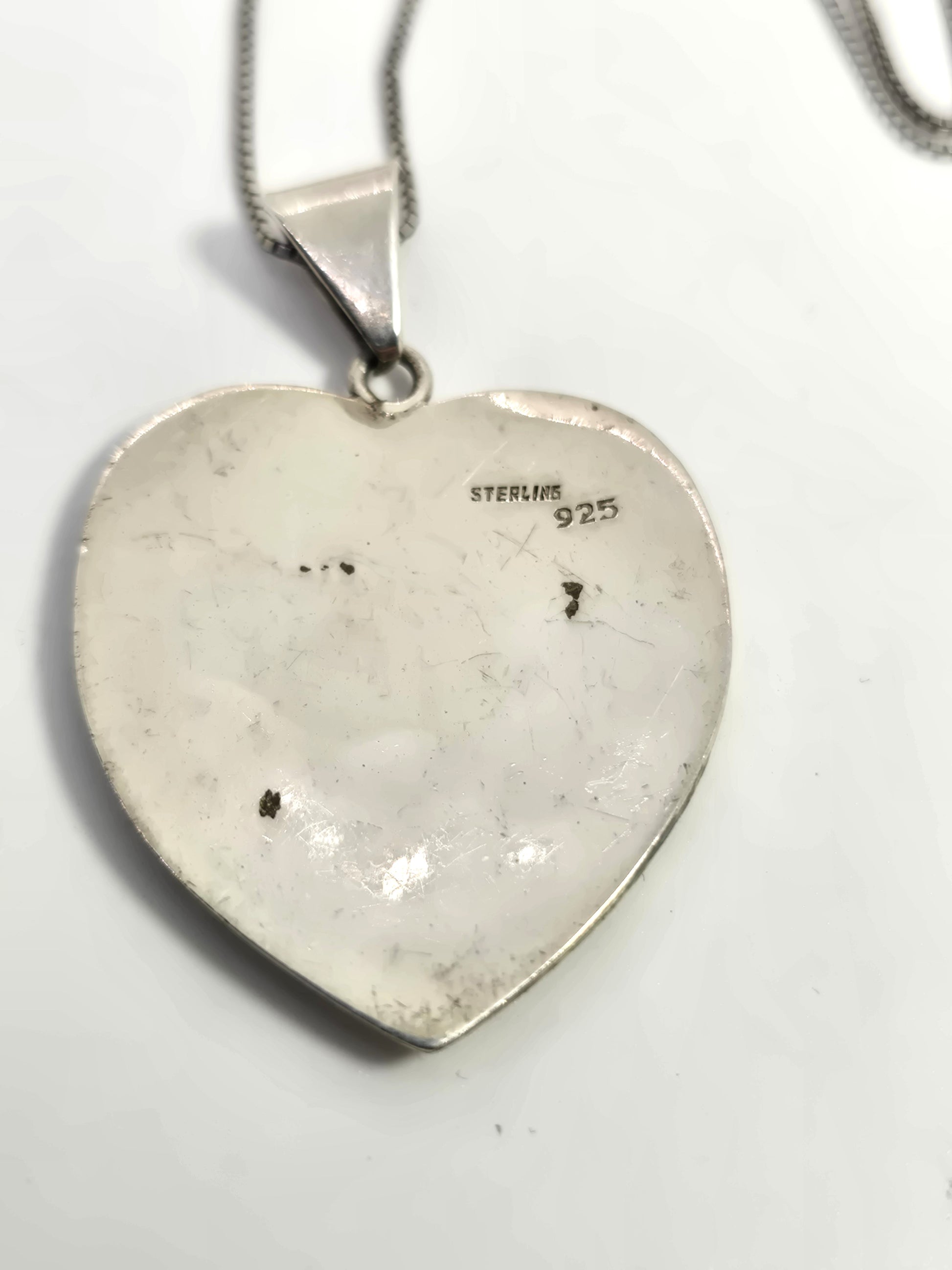 Dancing Kokopelli Vintage Native American Sterling Silver heart pendant necklace. Good vintage condition with little to no signs of normal wear. Great vintage patina present. Pendant is stamped Sterling 925. Comes with sterling silver box chain.