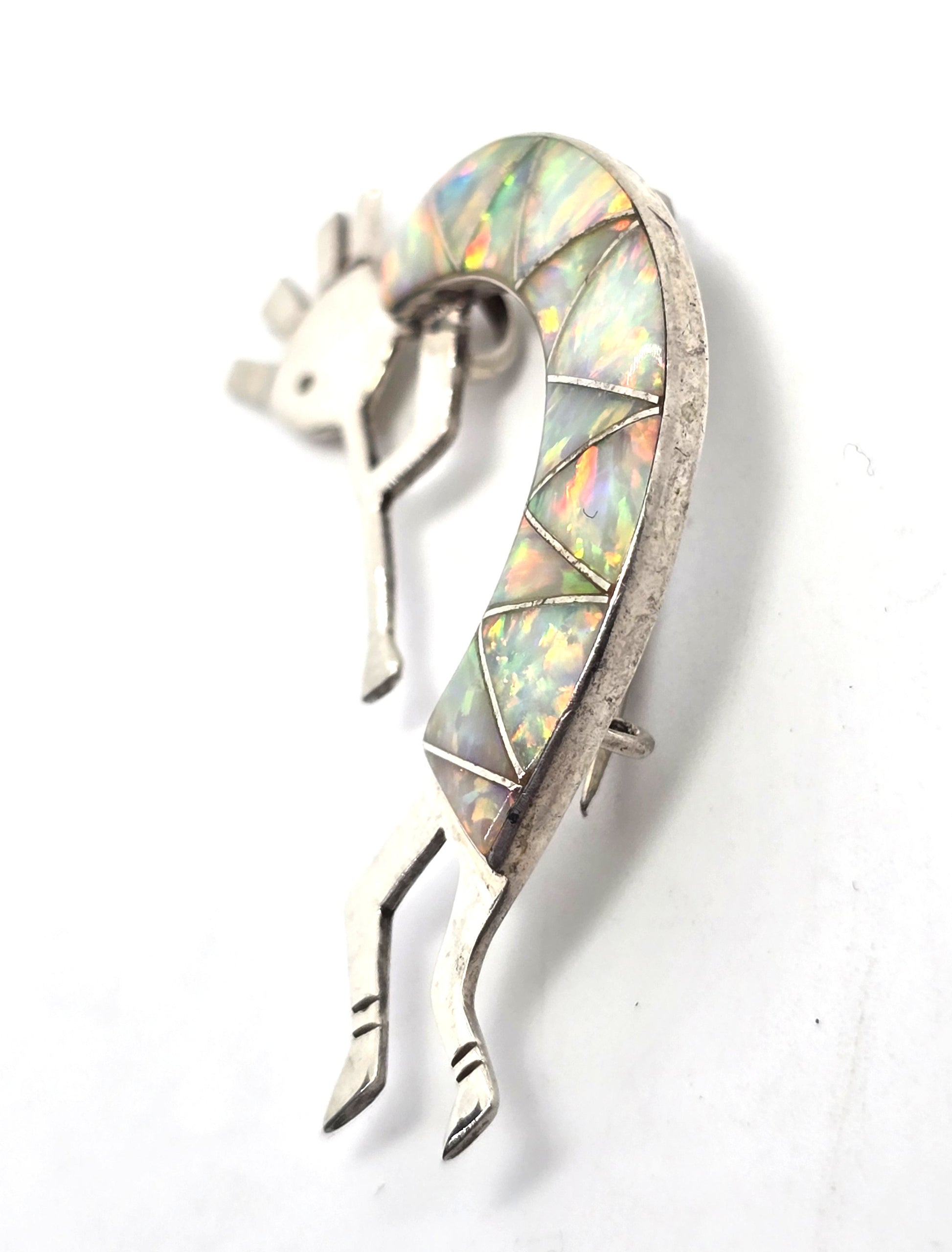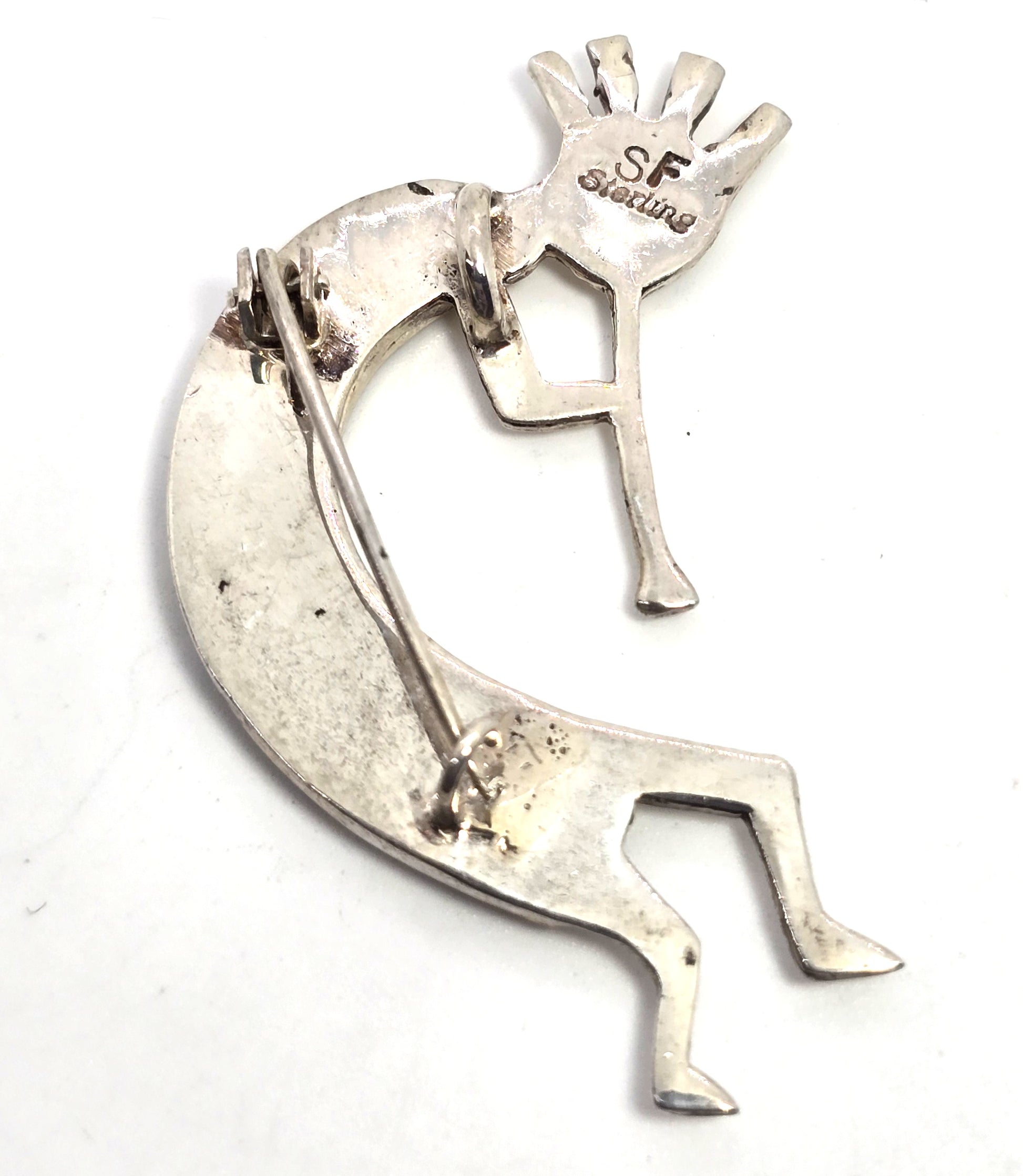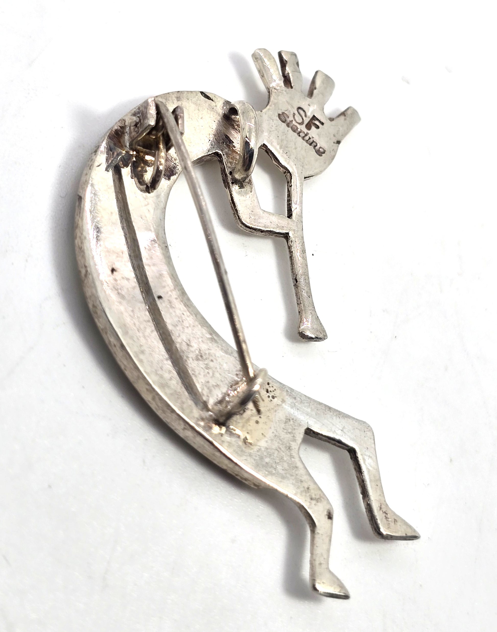 Steve Francisco Navajo Kokopelli Vintage Sterling Silver fire opal pendant brooch