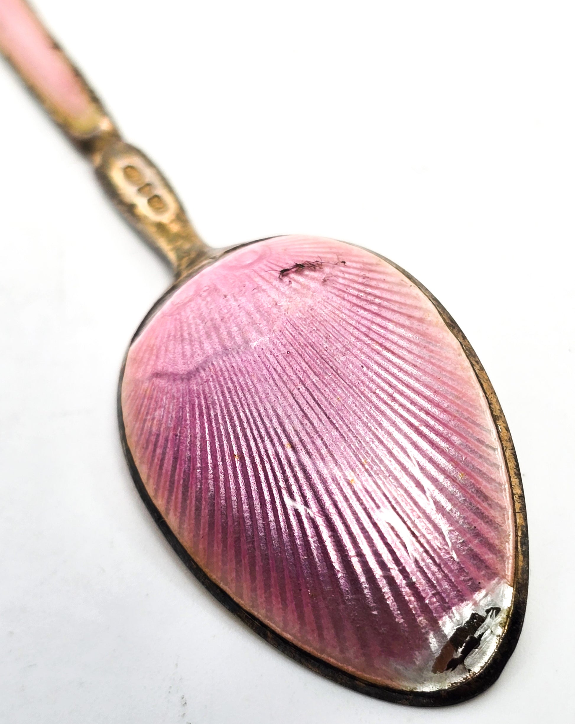 David Andersen Oslo Sterling Silver Norway signed Guilloche Enamel Spoon Pink