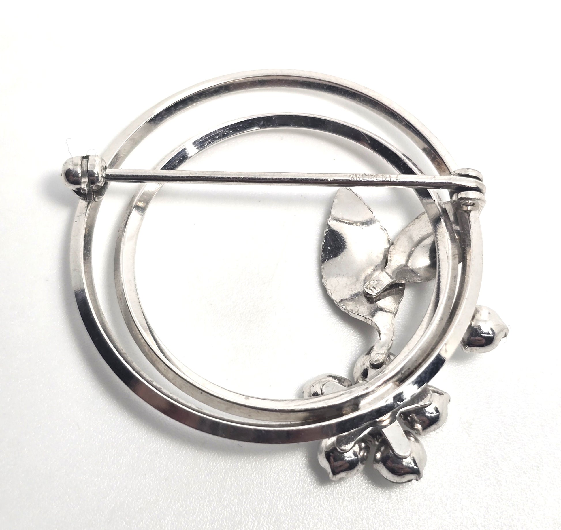 Krementz rhinestone flower silver toned vintage signed brooch. Good used condition with little to no signs of normal wear. Stamped Krementz hallmark on the post.