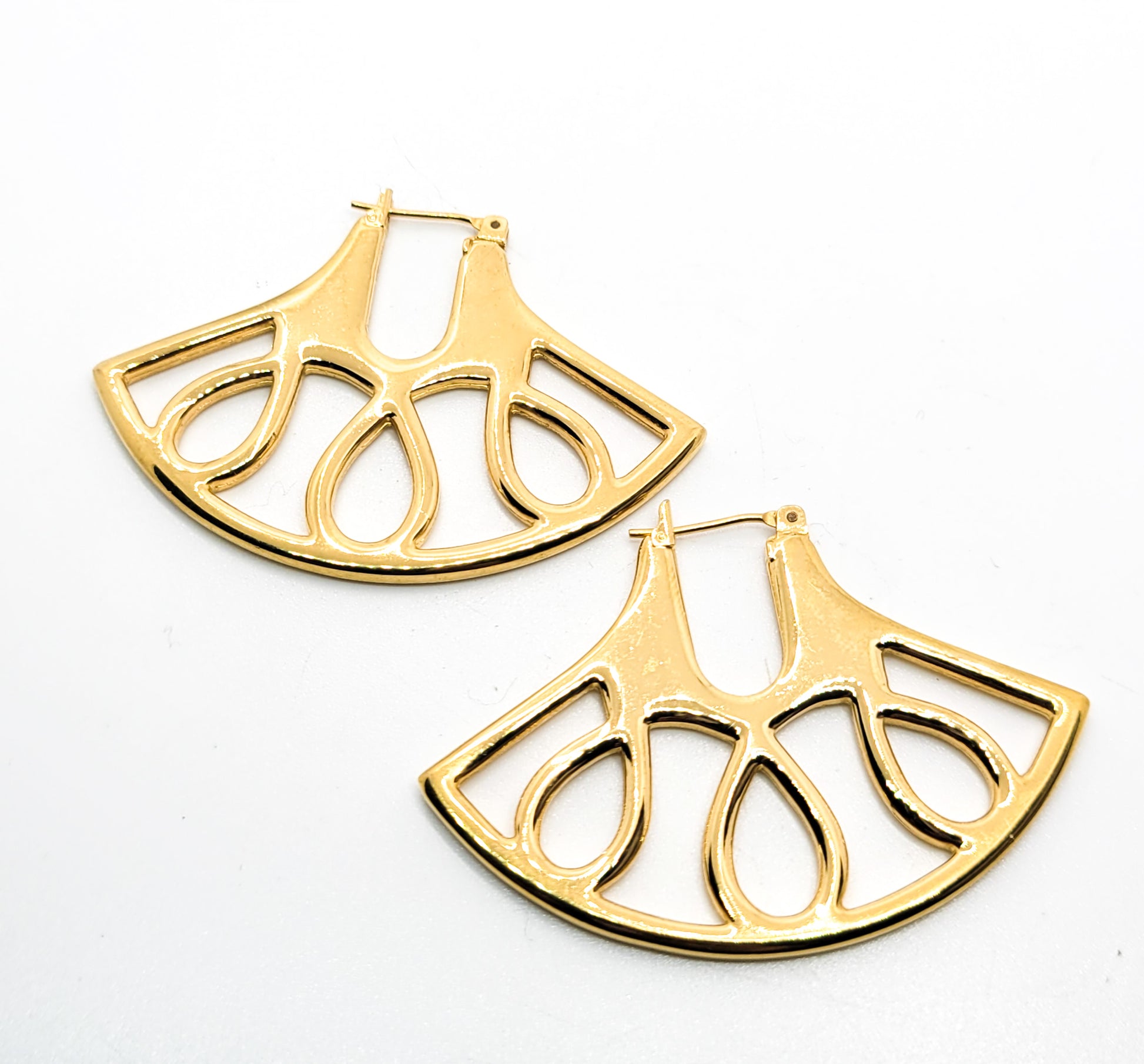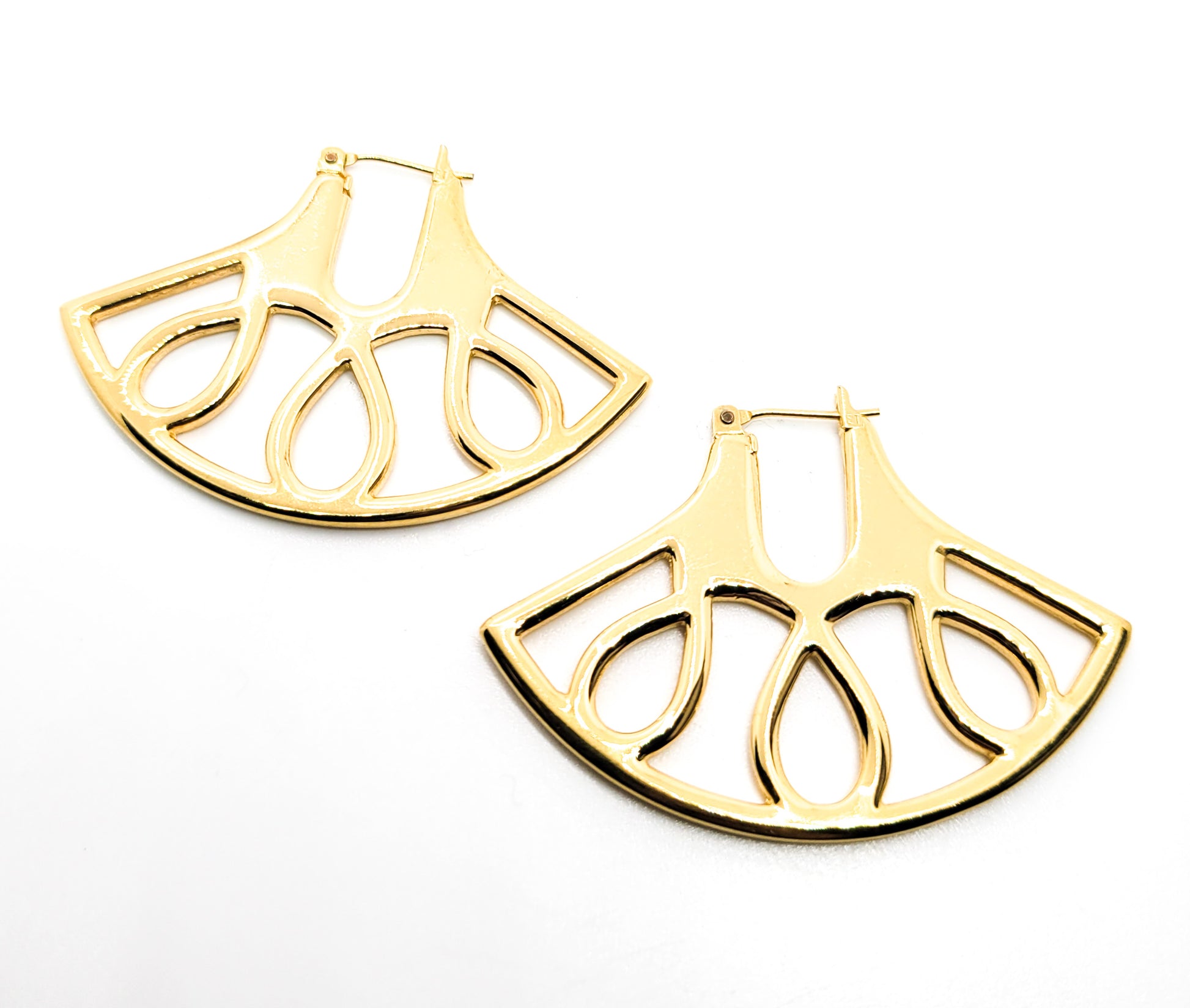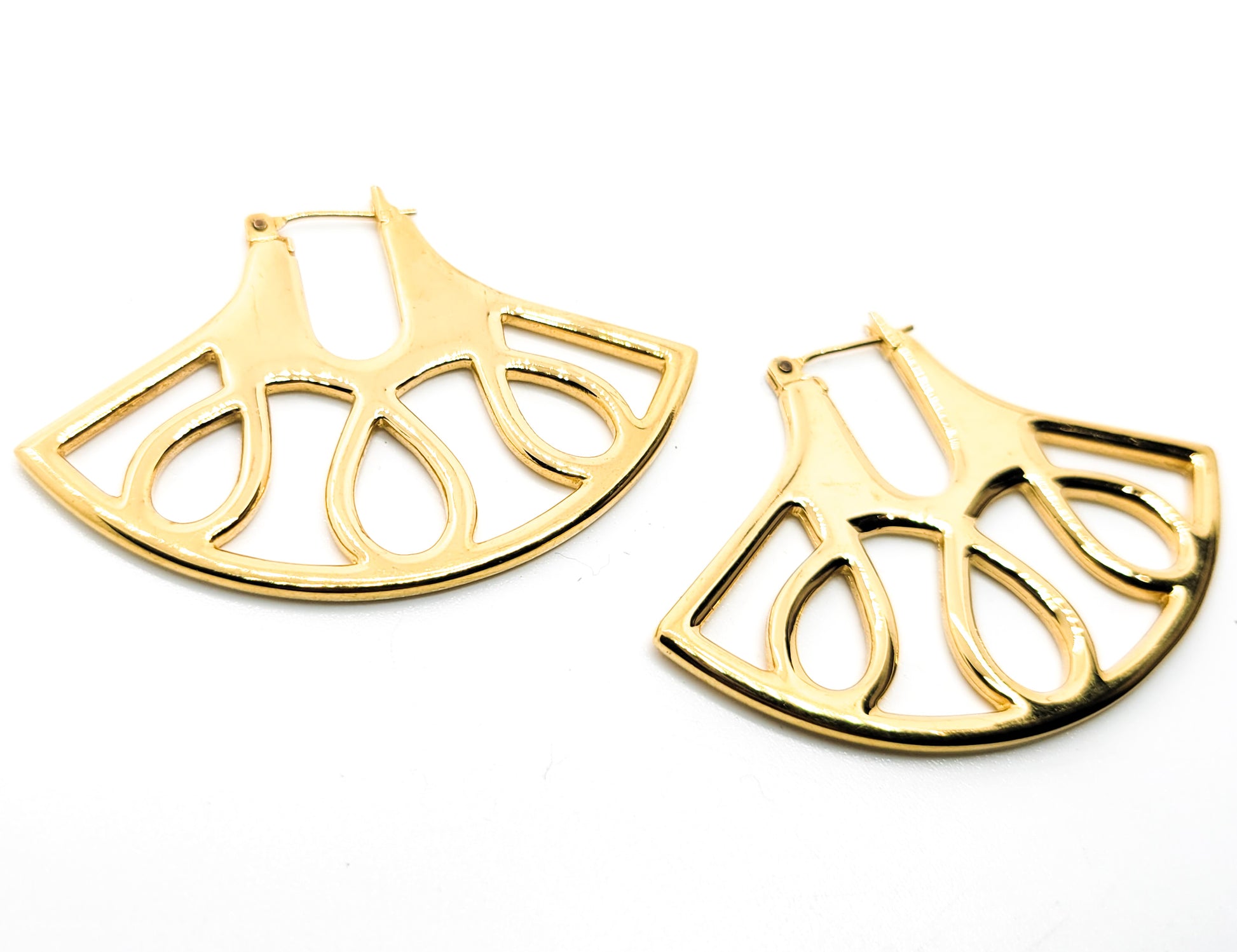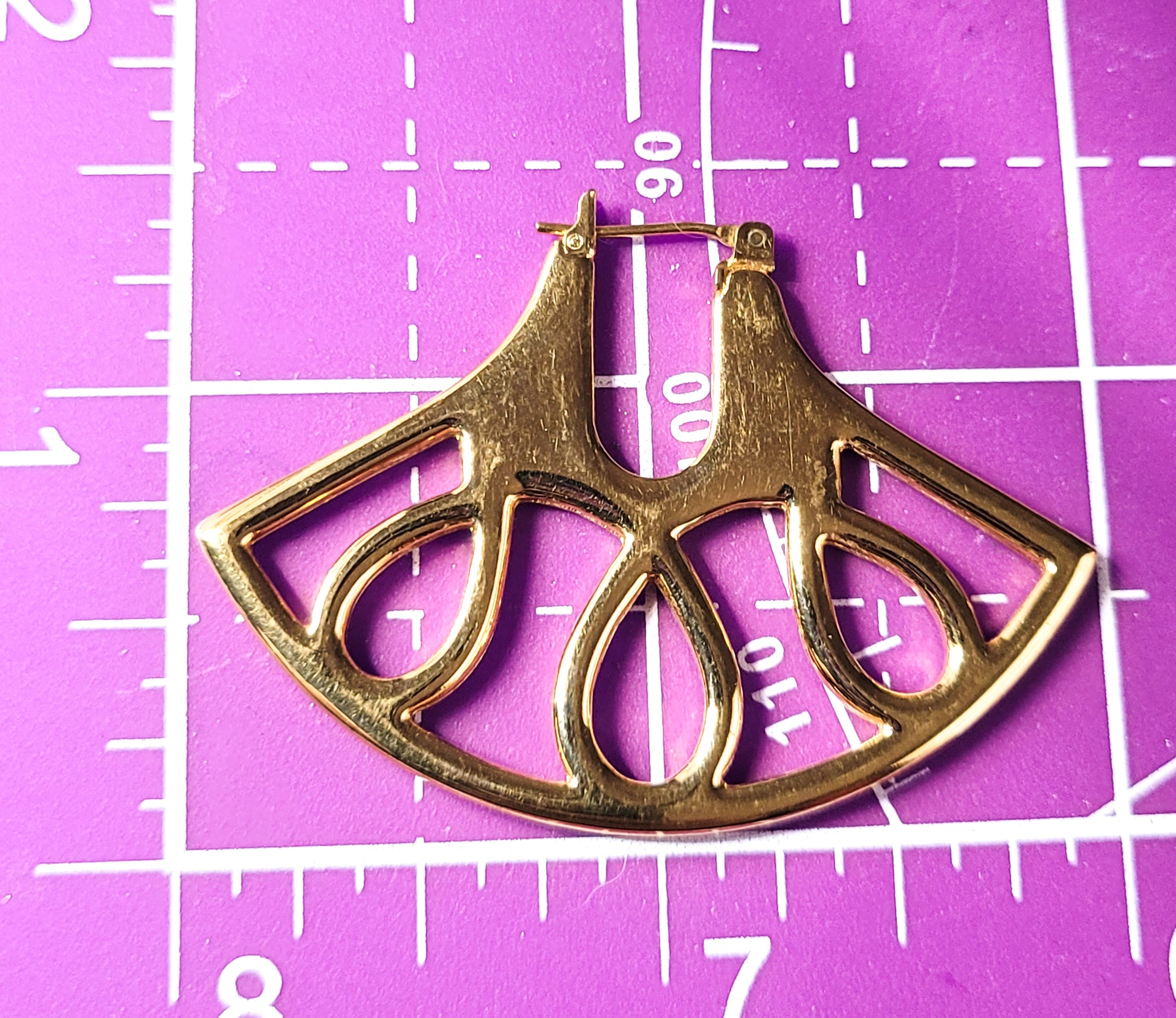 E.T. Etruscan gold toned fan hoop vintage signed earrings