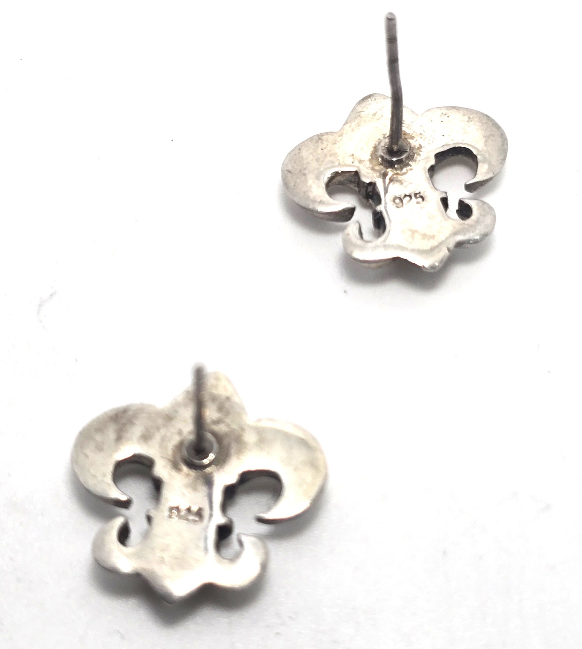 Fleur de Lis French Creole Mardi Gras sterling silver stud earrings . Good used condition with little to no signs of normal vintage wear. Stamped 925 on the back. All post earrings come with new sterling silver earring backings.
