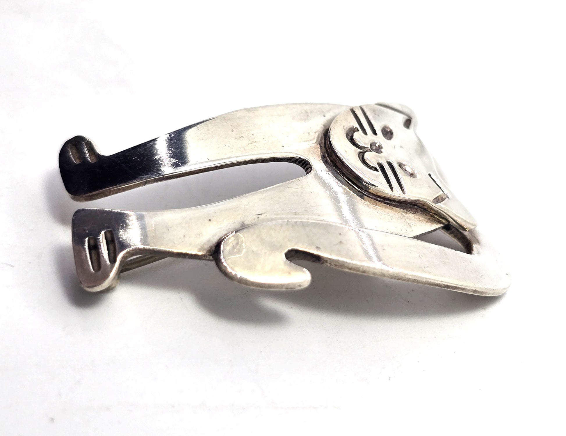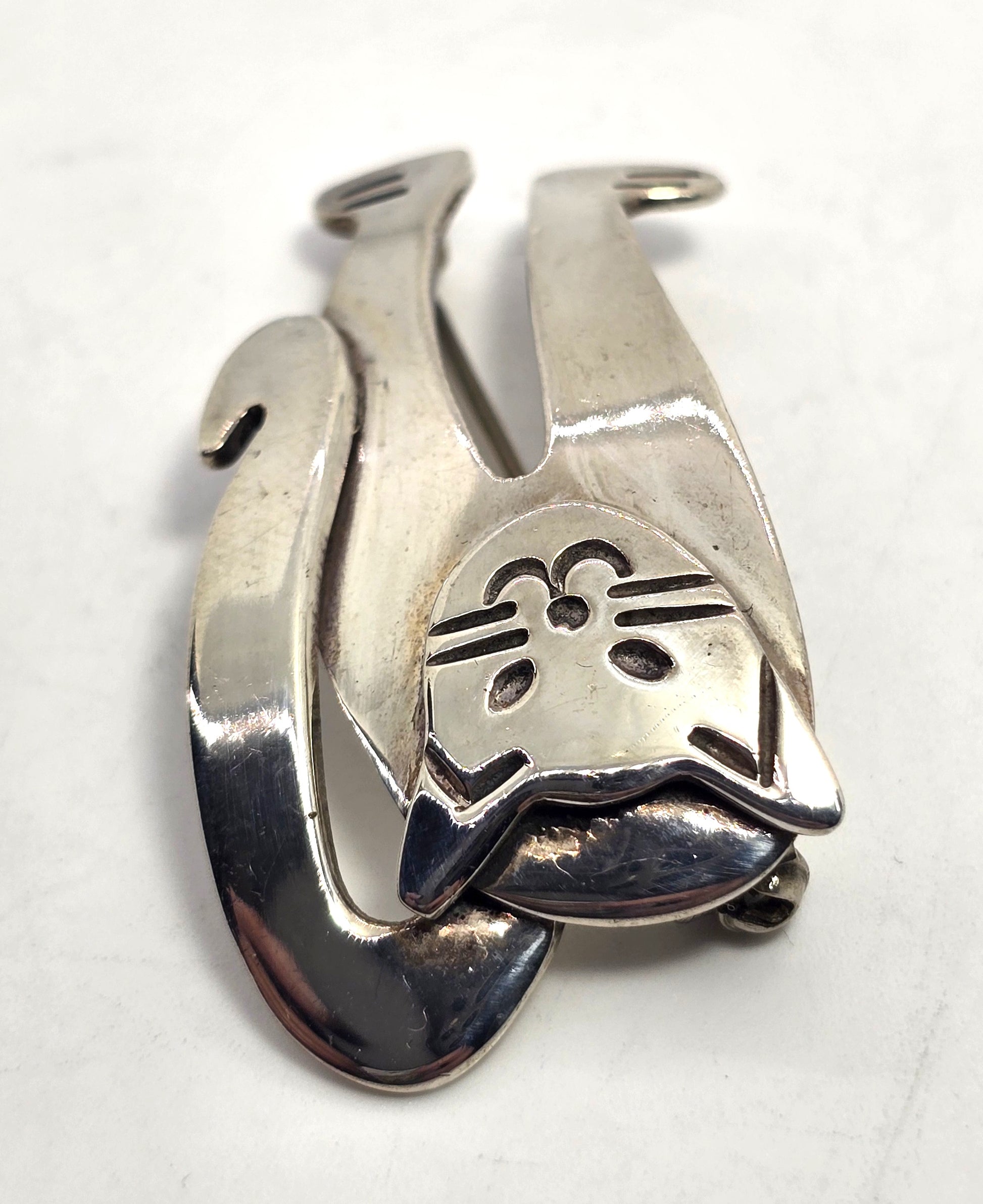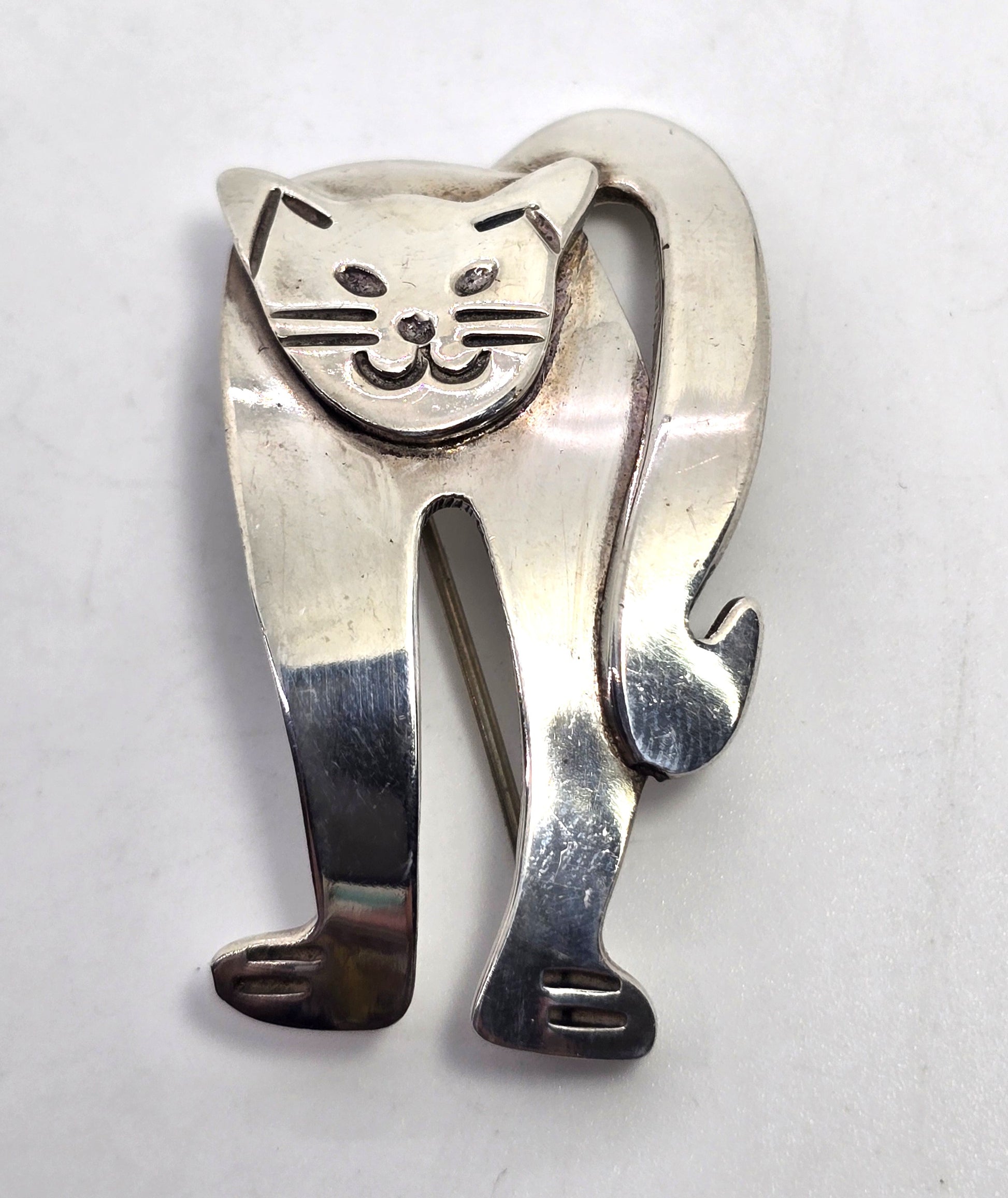 Mexican Kitty Cat vintage signed sterling silver domed layered feline brooch