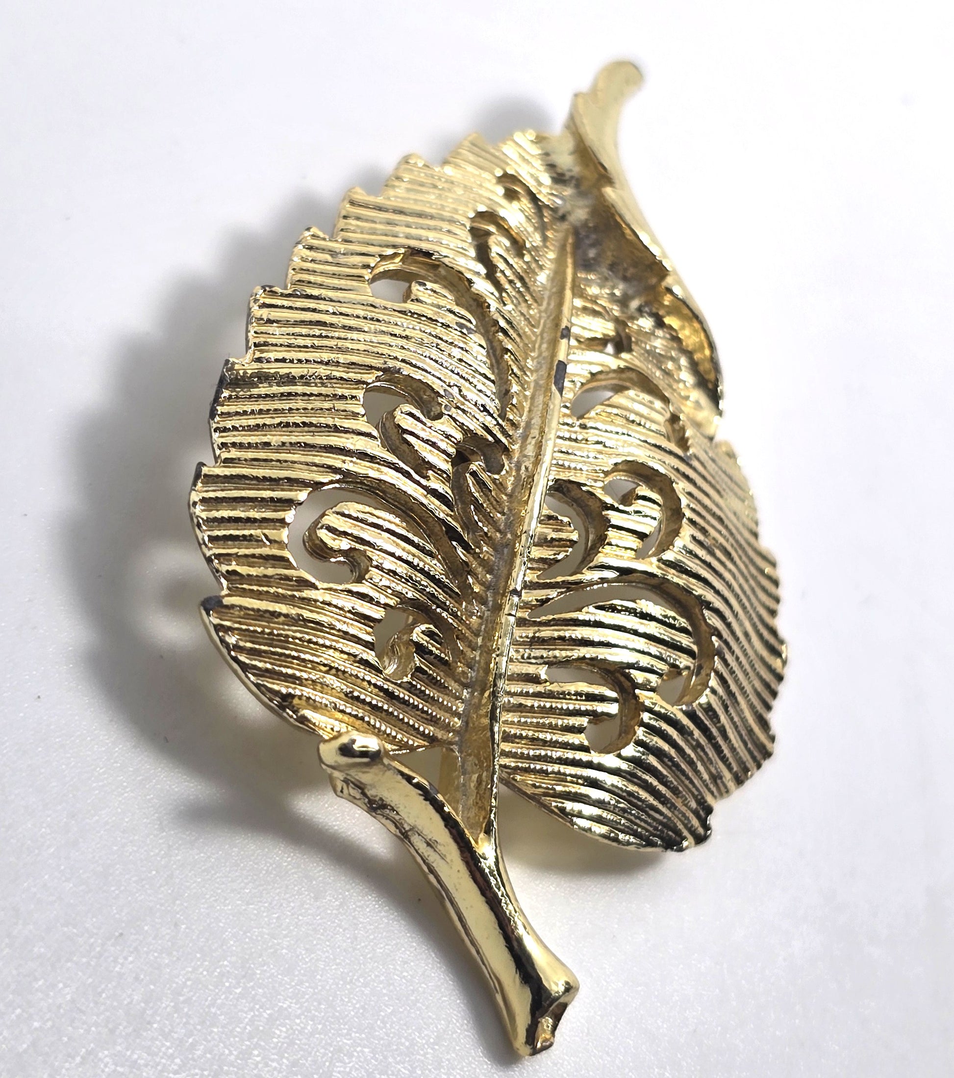 Gerry's filigree scroll leaf gold toned vintage signed brooch fall harvest nature