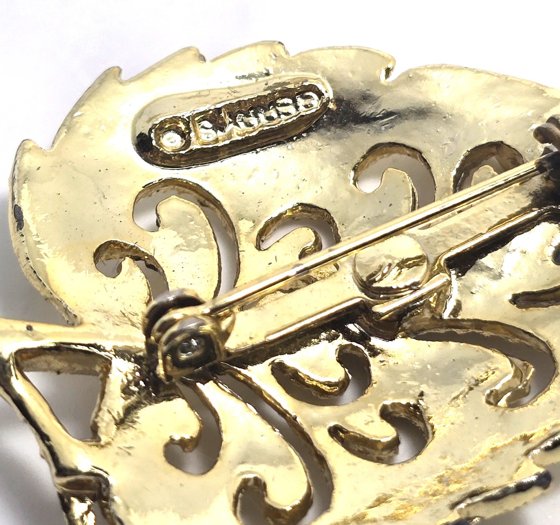 Gerry's filigree scroll leaf gold toned vintage signed brooch. Good vintage condition with little signs of normal vintage wear. Stamped on the back Gerry's