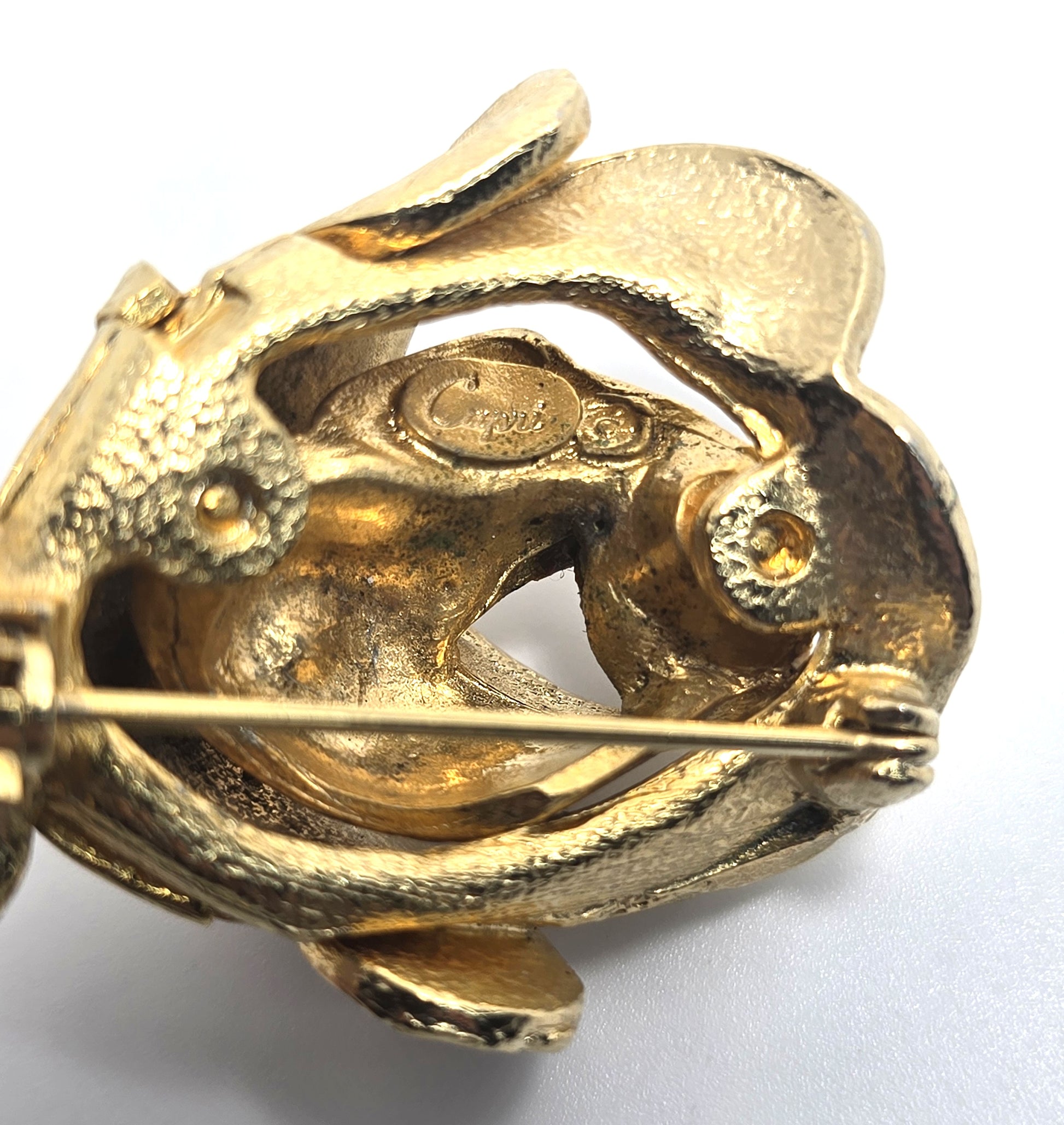 Brooch measures 3 inches tall and 1 and 1/4th of an inch wide.