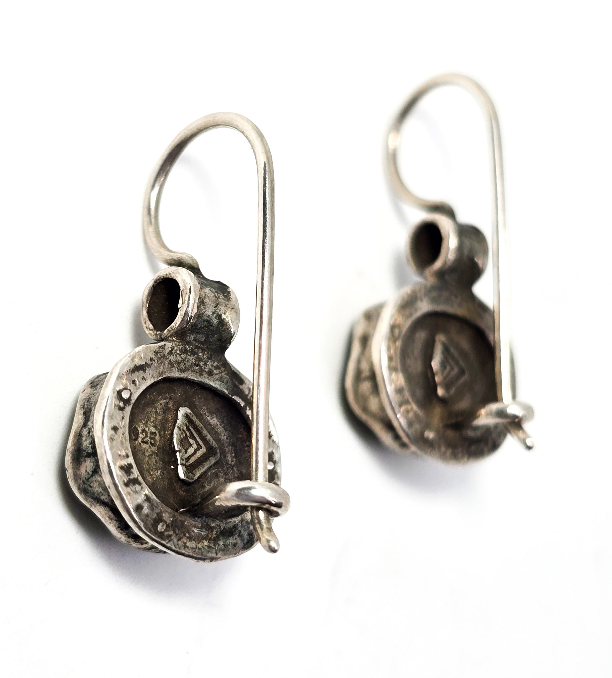 Earrings measure 1 inch tall and 5/8ths of an inch wide.