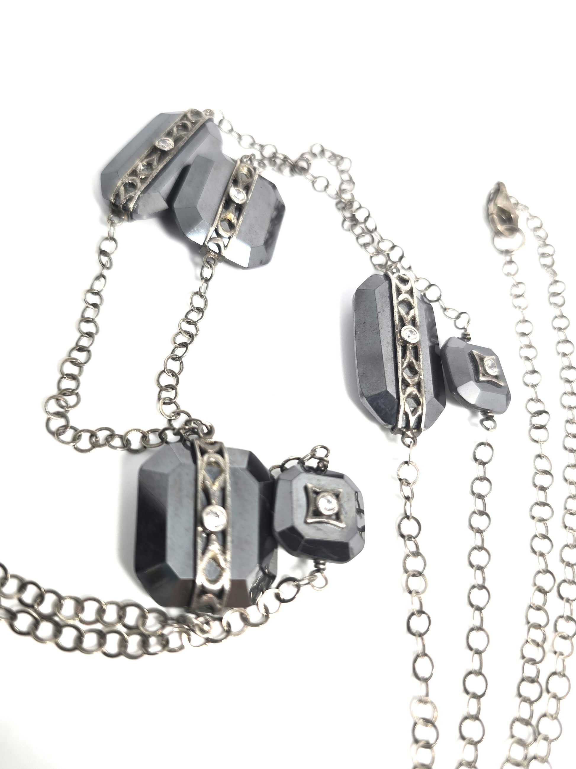 Silpada Sterling Silver Hematite station CZ Vision 40” Necklace N2924 Retired