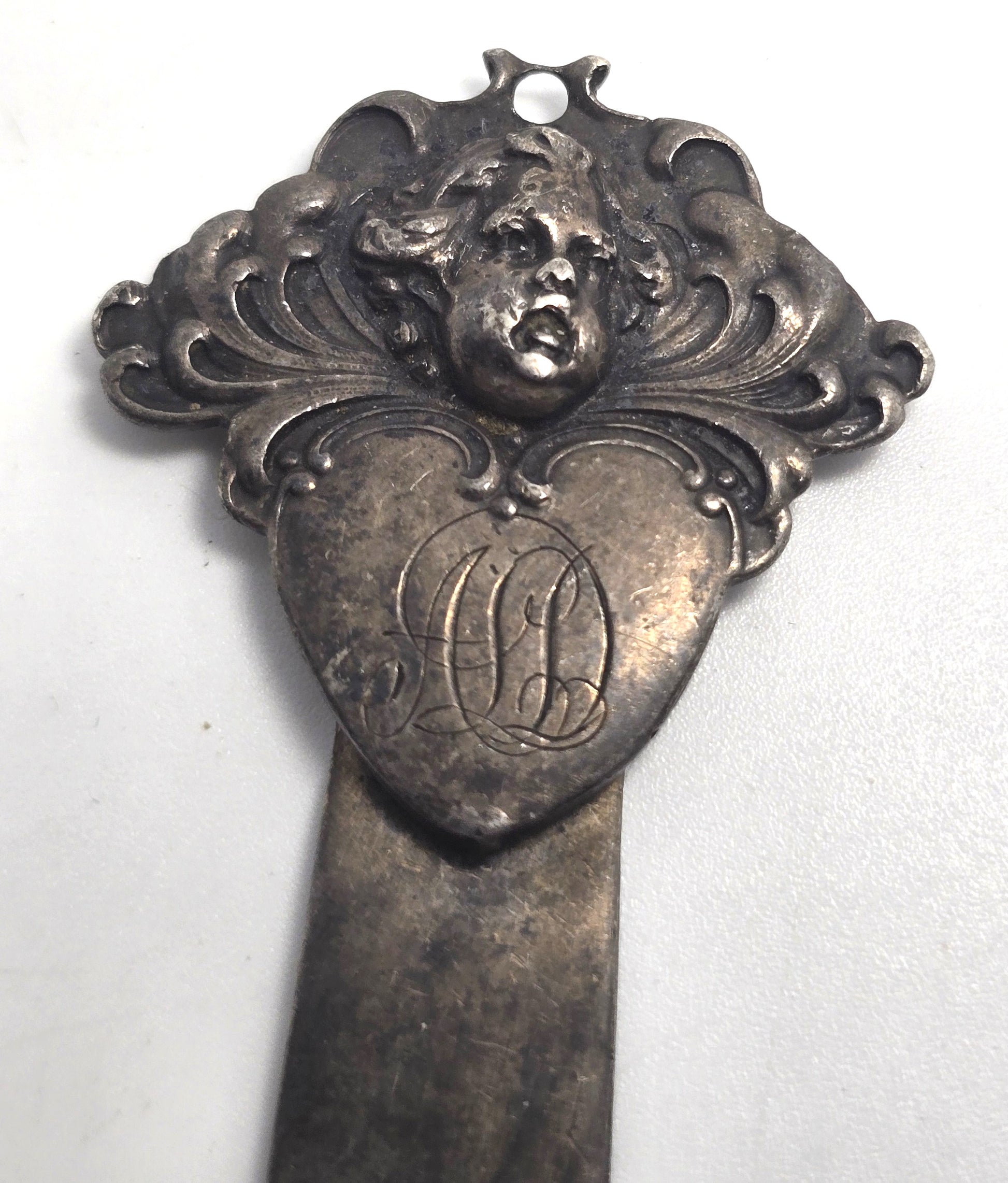 Gorham antique Victorian cupid cherub putti sterling silver 1800's bookmark
