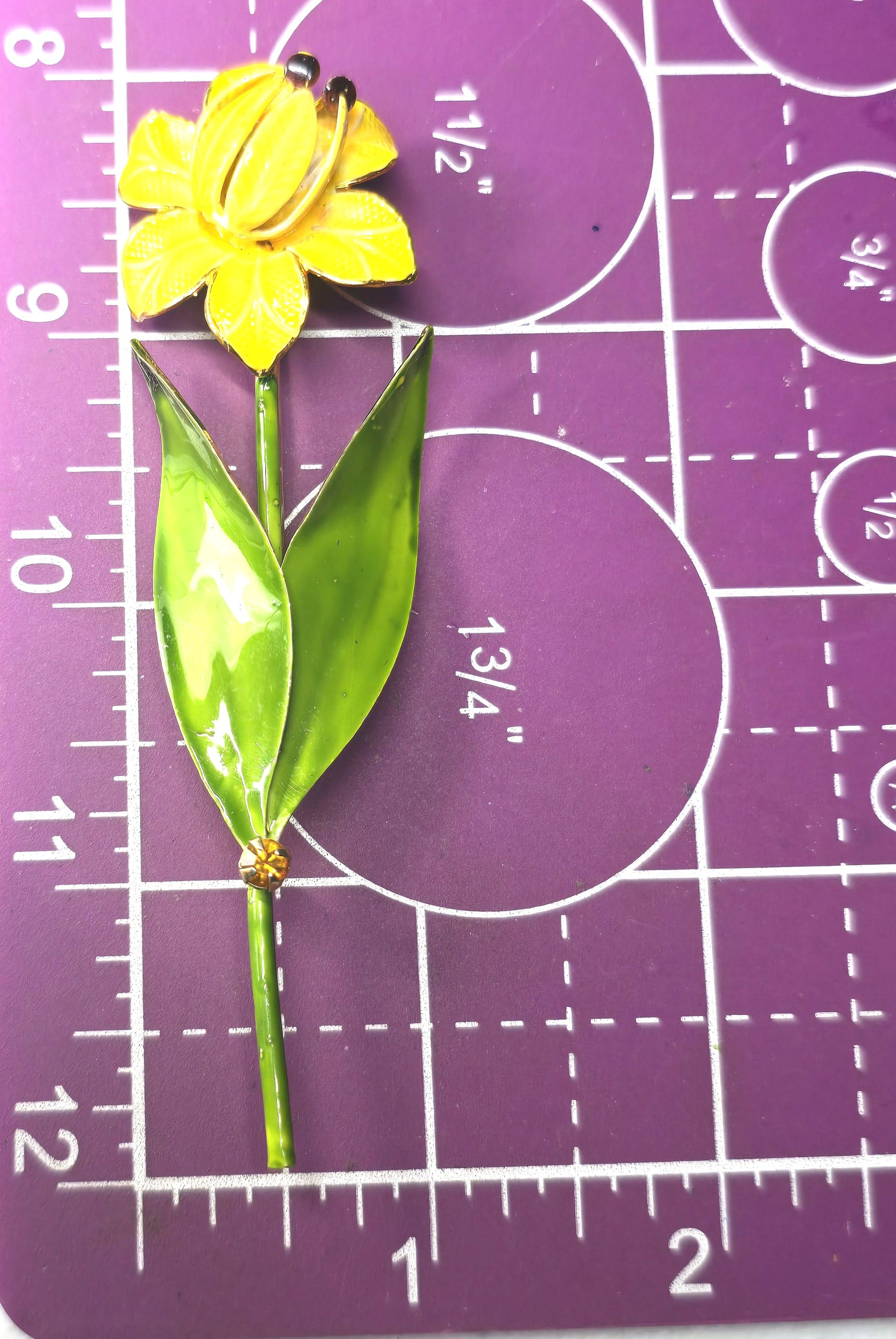 Original by Robert Yellow flower Green vintage enamel flower tin pin brooch