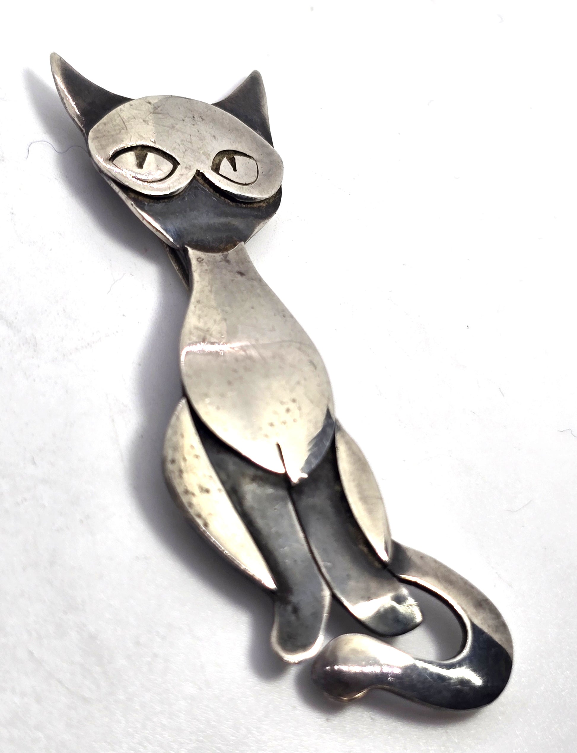 Coco the stalking Siamese sterling silver vintage tall feline brooch