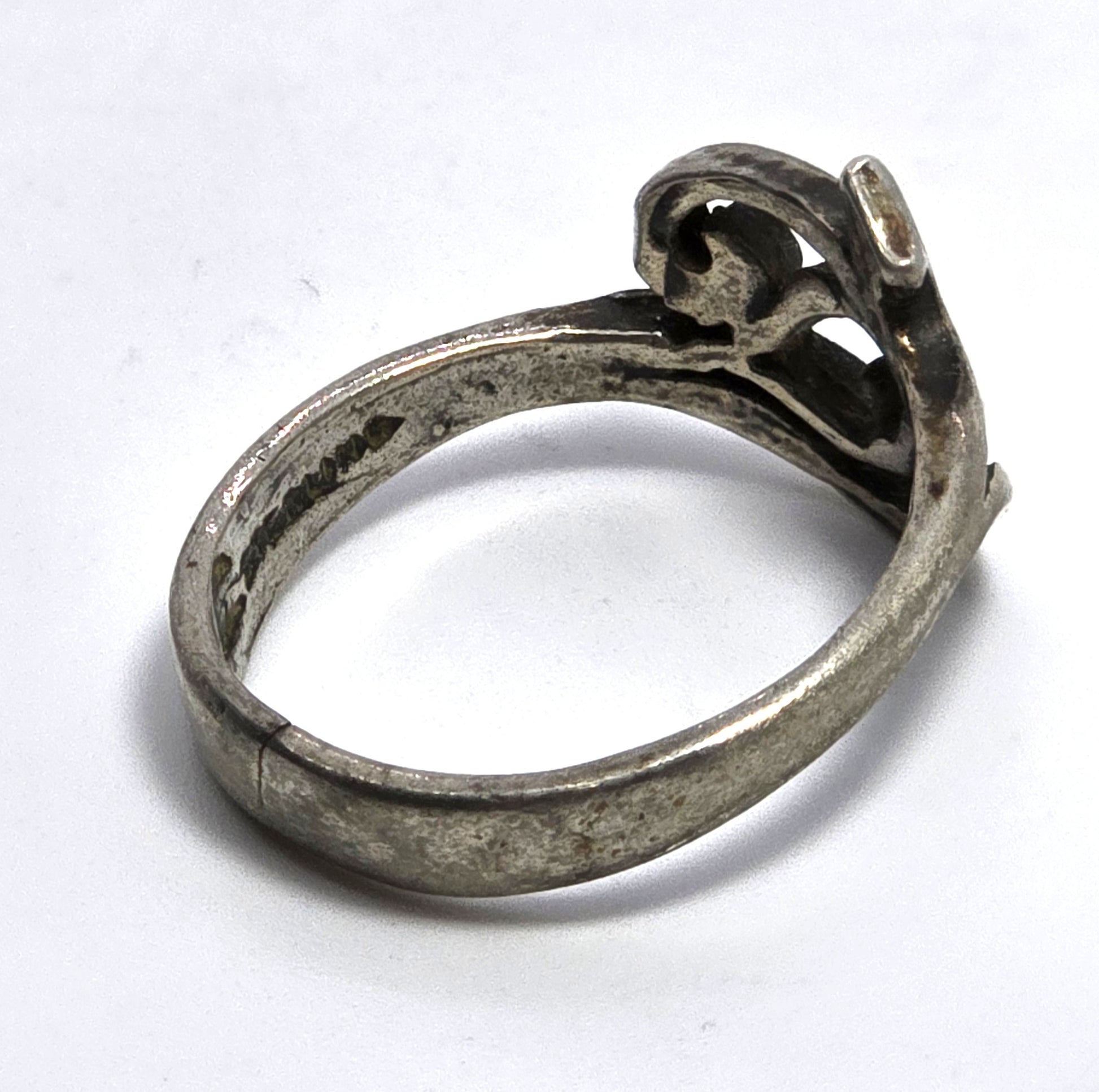 Egyptian Revival Eye of Horus vintage retro sterling silver ring size 7. Fair vintage condition with little signs of normal vintage wear. Stamped with Egyptian hallmarks and sterling on the inside of the band. There is a small hairline fracture on the inside of the band.