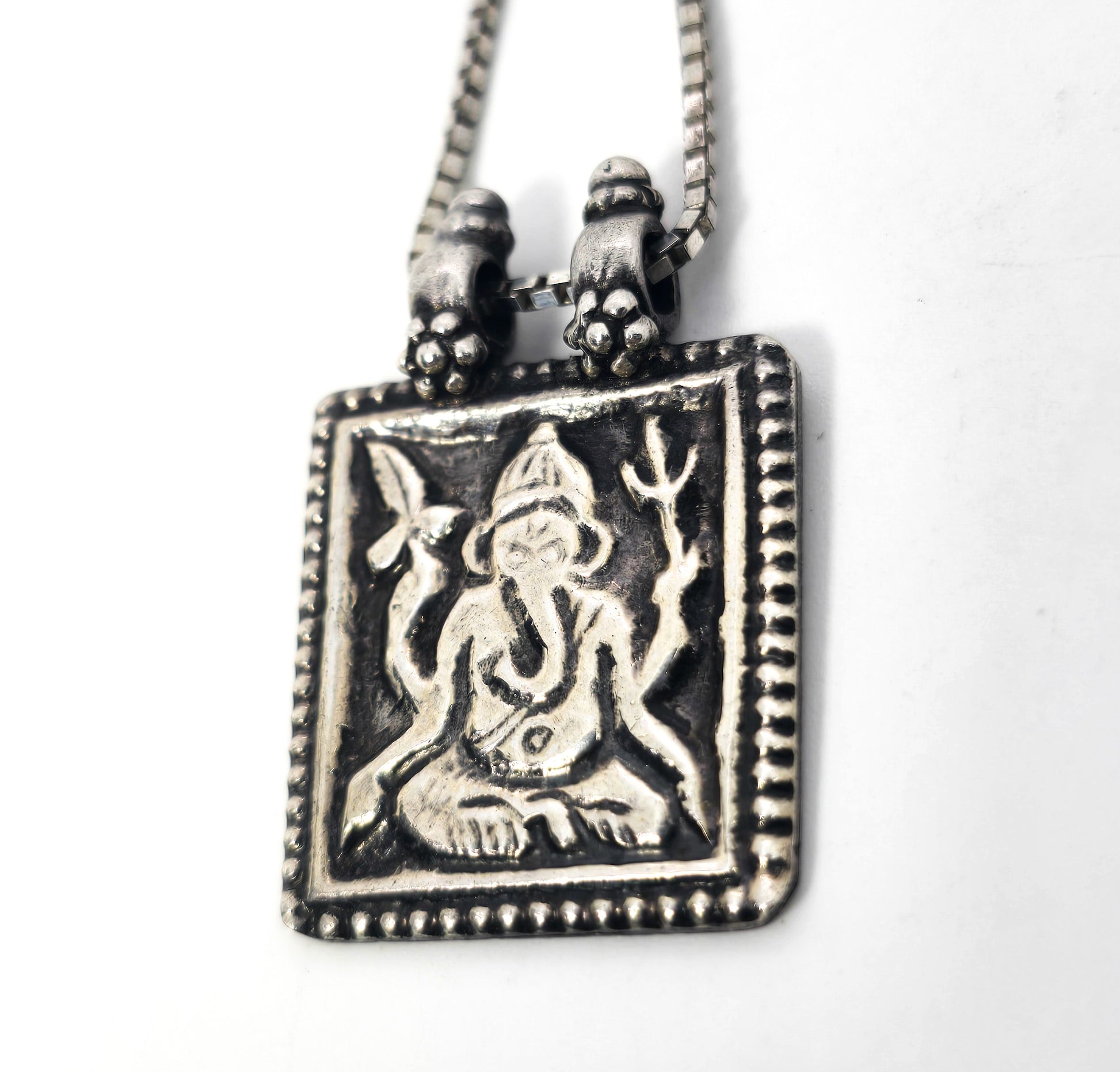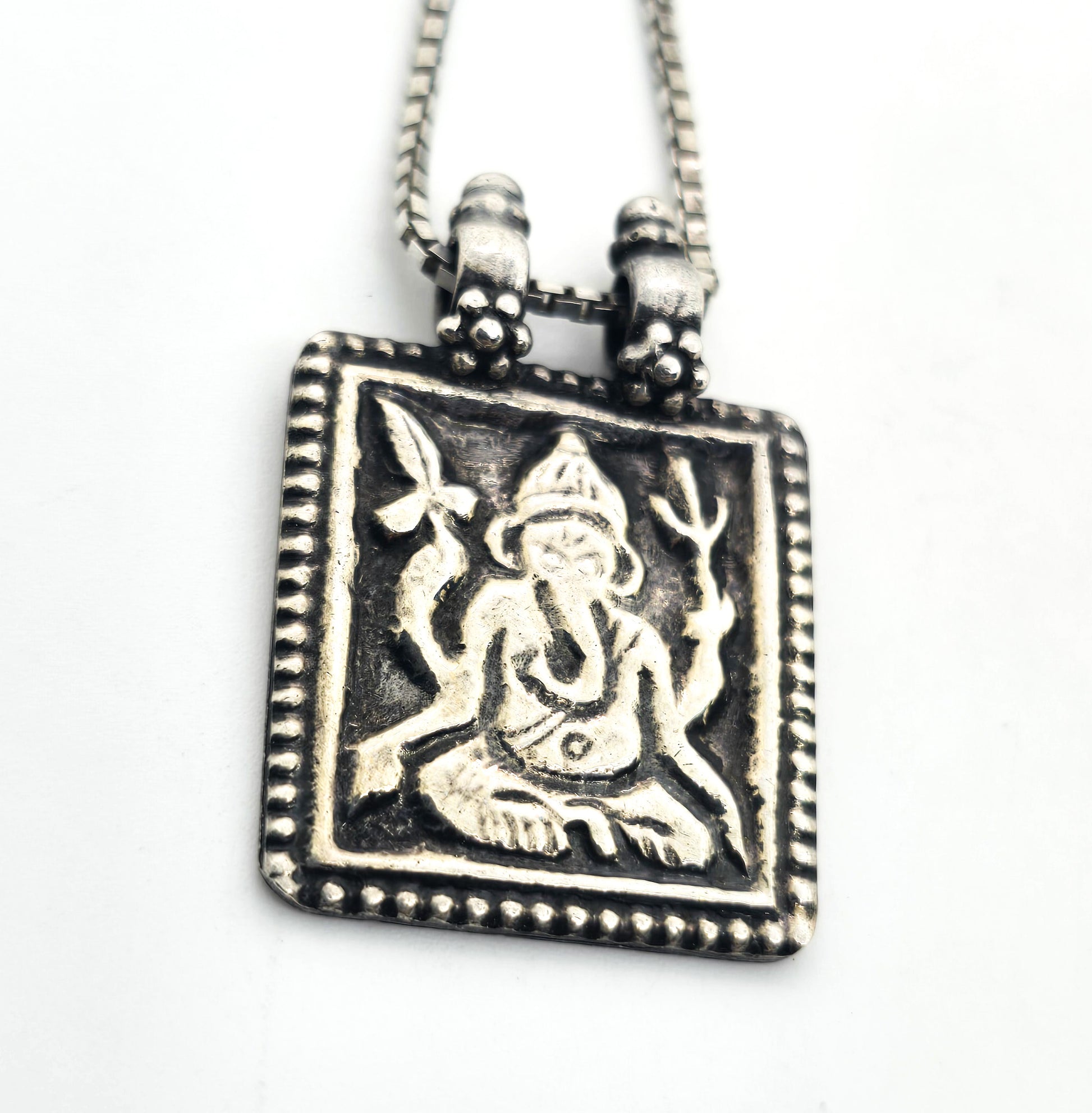 Ganesha Hindu Elephant God Sterling Silver Deity pendant amulet Necklace