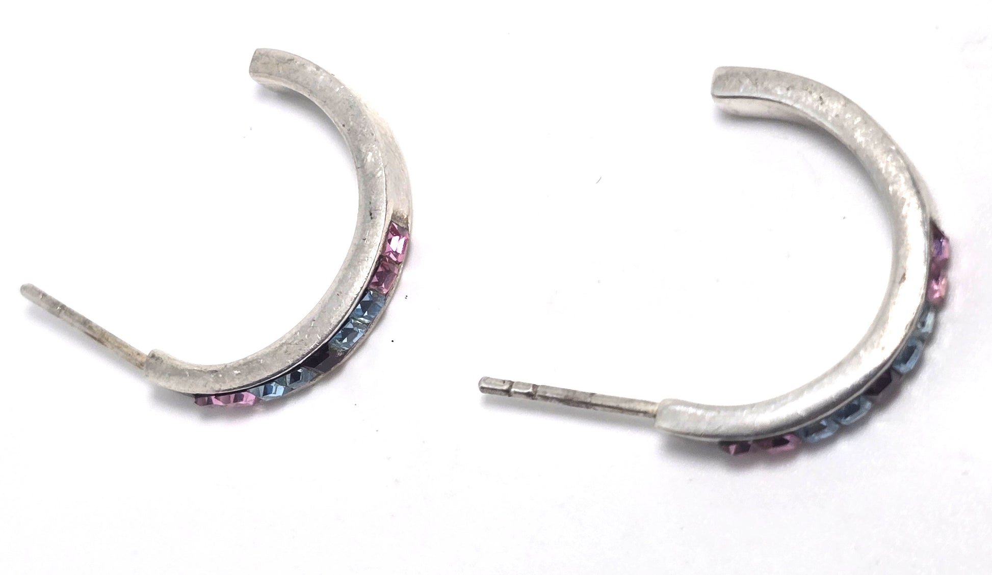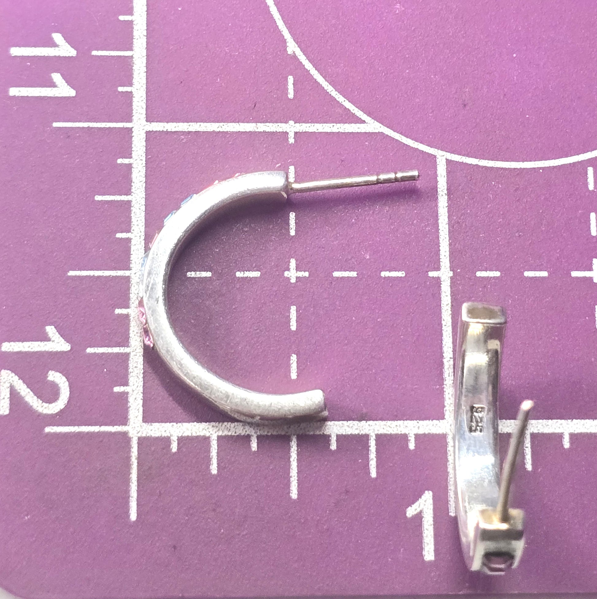 Multi Gemstone rainbow channel set cubic zirconia sterling silver post hoop earrings Good used condition with little to no signs of normal wear. Stamped 925 on the inside of the hoops. All post earrings come with new sterling silver earring backings.