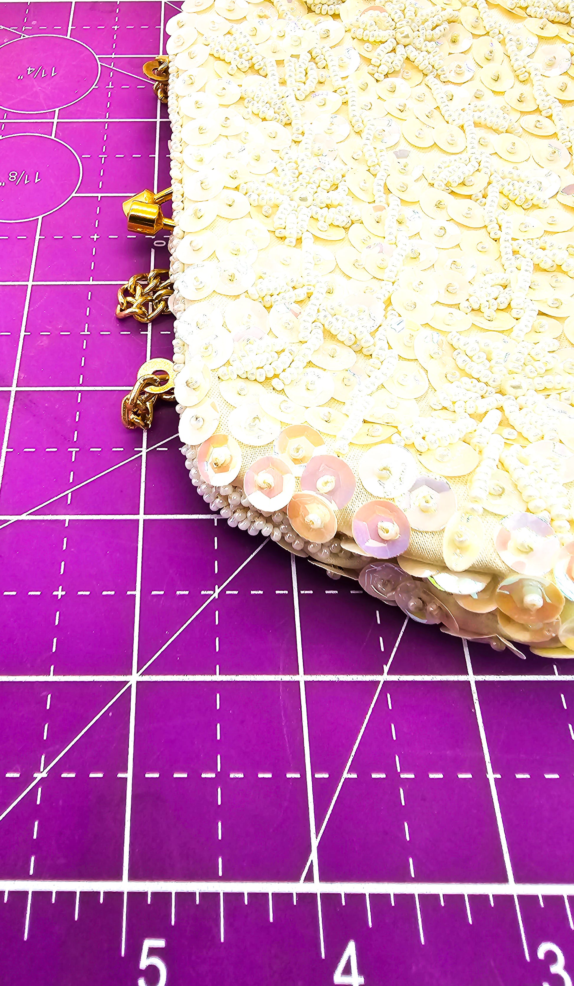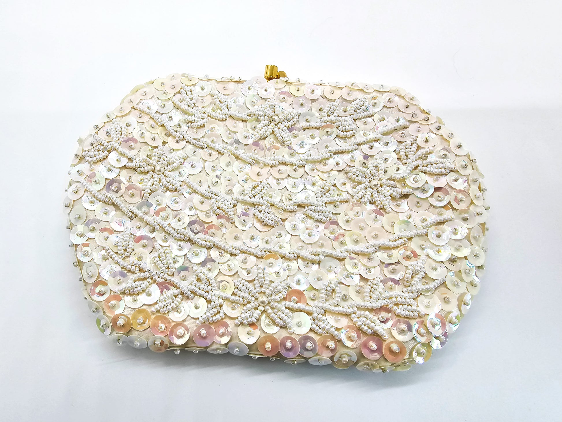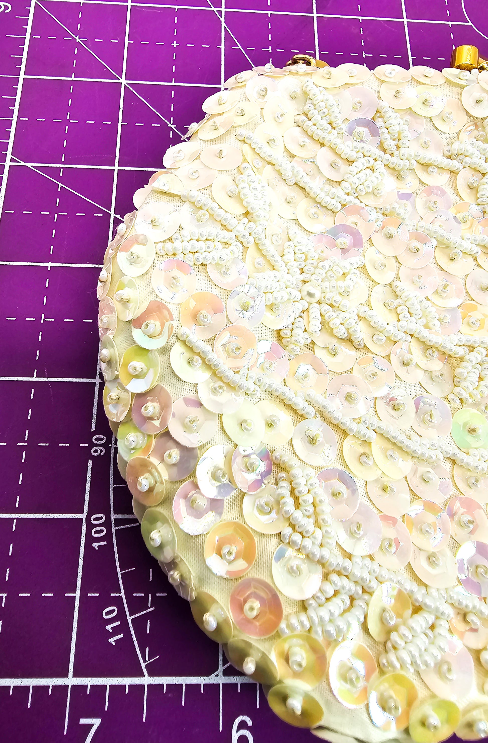 JBM Cream sequin and beaded vintage evening bag and glasses holder set