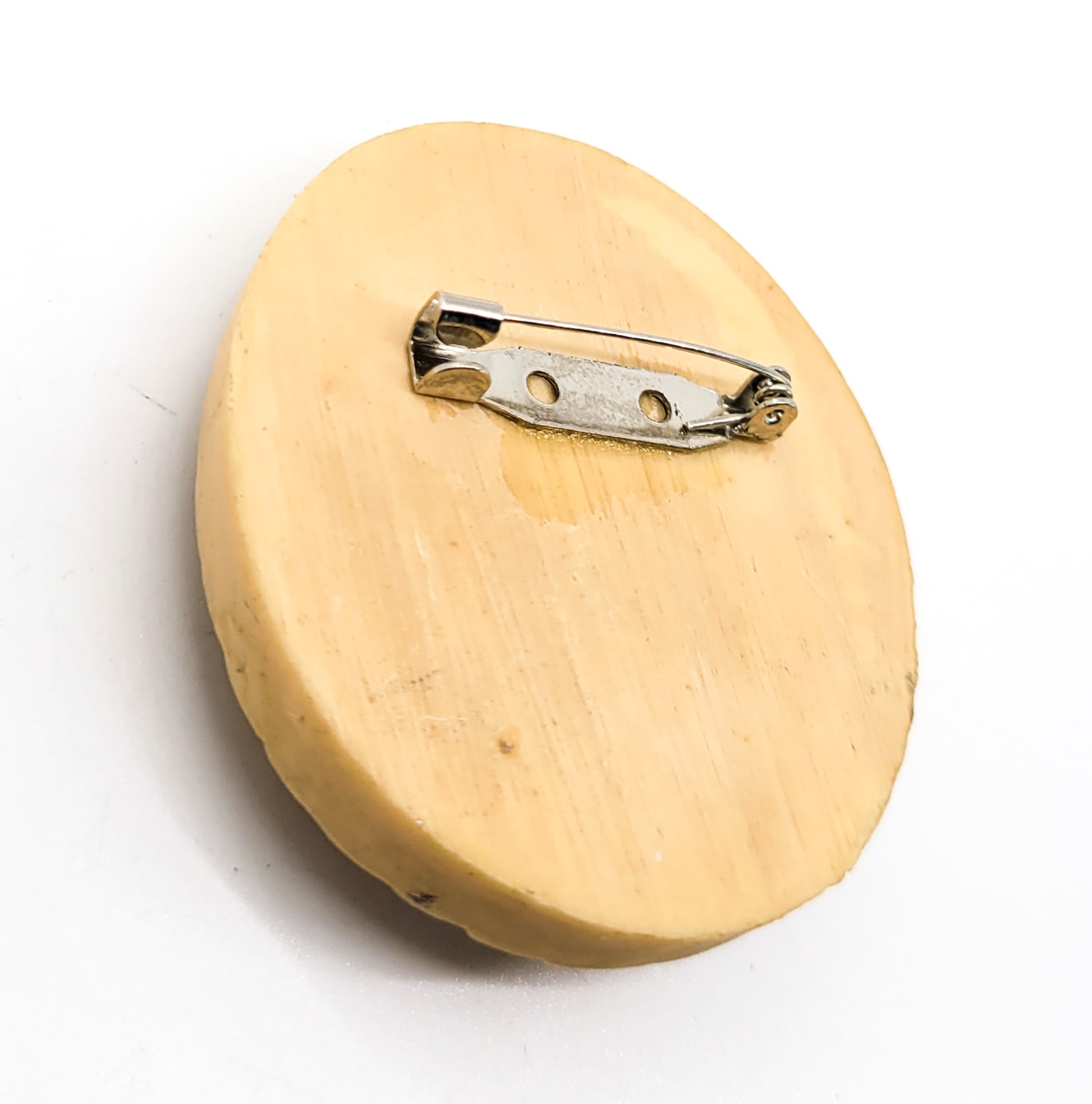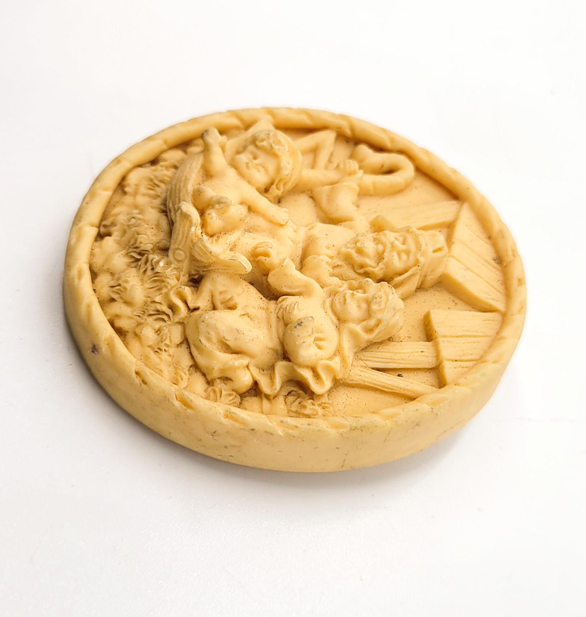 Jesus in the Manger Christmas Nativity vintage carved resin brooch
